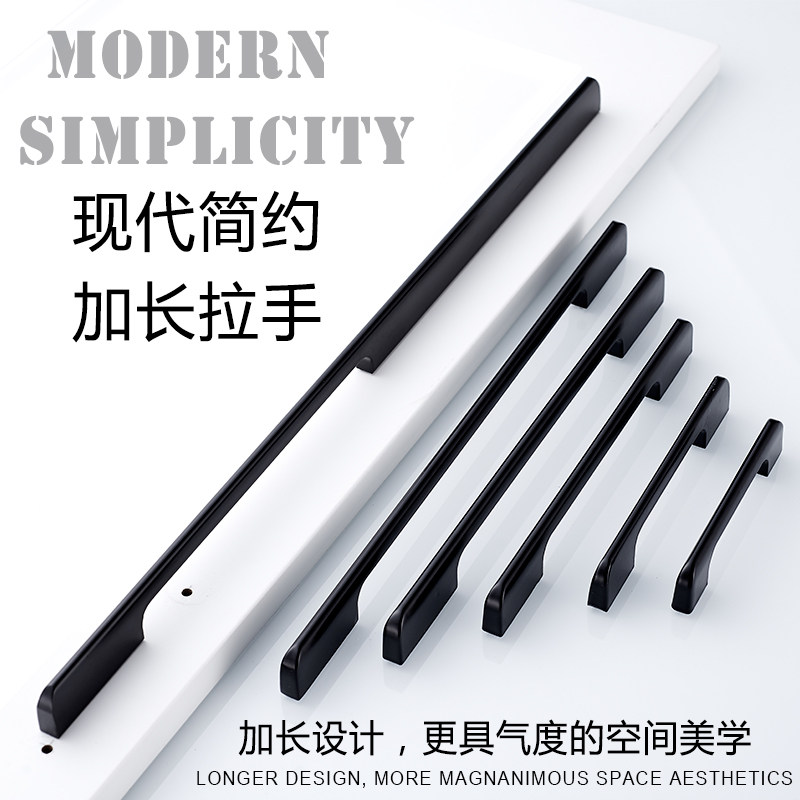 Modern Minimalist Black Cabinet Handle, Aluminum Alloy Extended Wardrobe Door Handle, European Style Cabinet Drawer 1.2024m