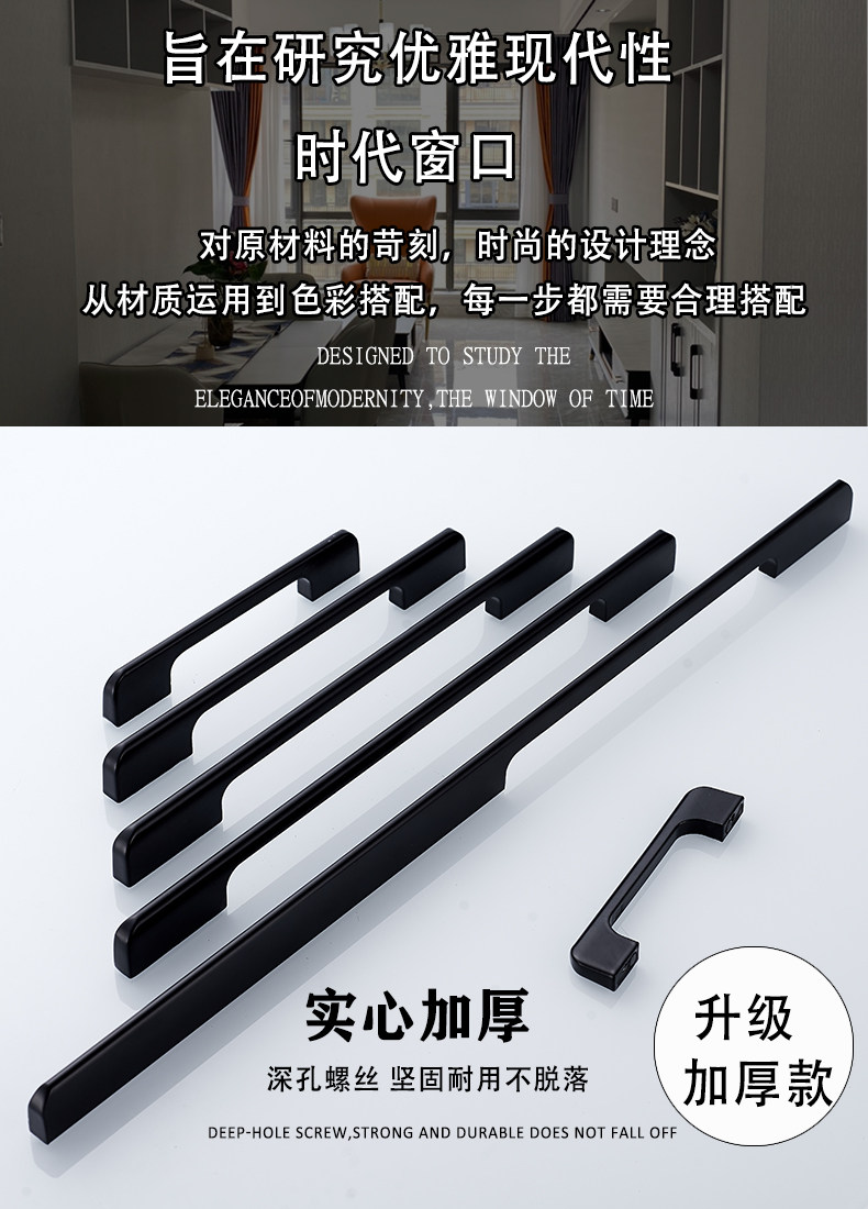 | Color Classification | Solid and Thickened (96 Hole Spacing) Length 115mm Black,Solid and Thickened (128 Hole Spacing) Length 148mm Black,Solid and Thickened (192 Hole Spacing) Length 210mm Black,Solid and Thickened (256 Hole Spacing) Length 275mm Black,Solid and Thickened (320 Hole Spacing) Length 340mm Black,Solid, Thickened, 500mm Total Length, Black.,Solid, Thickened, 600mm Overall Length, Black.,Solid, Thickened, 800mm Total Length, Black.,Solid, Heavy-Duty, Full Length (1m) Black,Solid, Heavy-Duty, Full Length (1.2m) Black,(Aluminum Alloy) 4X8 Drawer Handle,(Aluminum Alloy) Round - Single Hole,(Aluminum Alloy) Gold Single Hole,Solid and Thickened (96 Hole Spacing) Length 115mm Gold,Solid and Thickened (128 Hole Spacing) 148mm Long Gold,Solid and Thickened (160 Hole Spacing) 178mm Long Gold,Solid and Thickened (192 Hole Spacing) Length 210mm Gold,Solid and Thickened (320 Hole Spacing) Length 340mm Gold,Solid, Heavy-Duty, 500mm Gold Finish,Solid, Heavy-Duty, 600mm Gold Finish,Solid, Heavy-Duty, 800mm Gold Finish,Solid, Thickened Overall Length (1m) - Gold Finish |