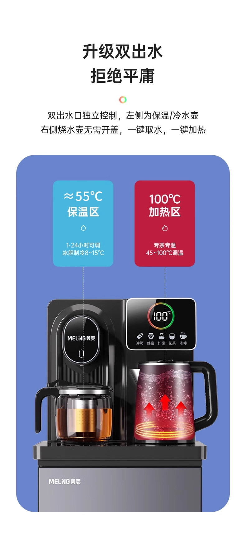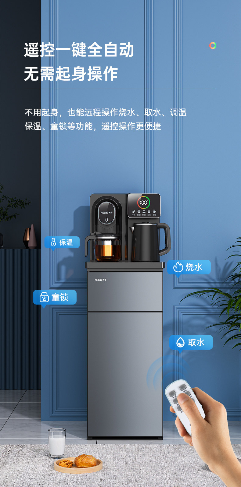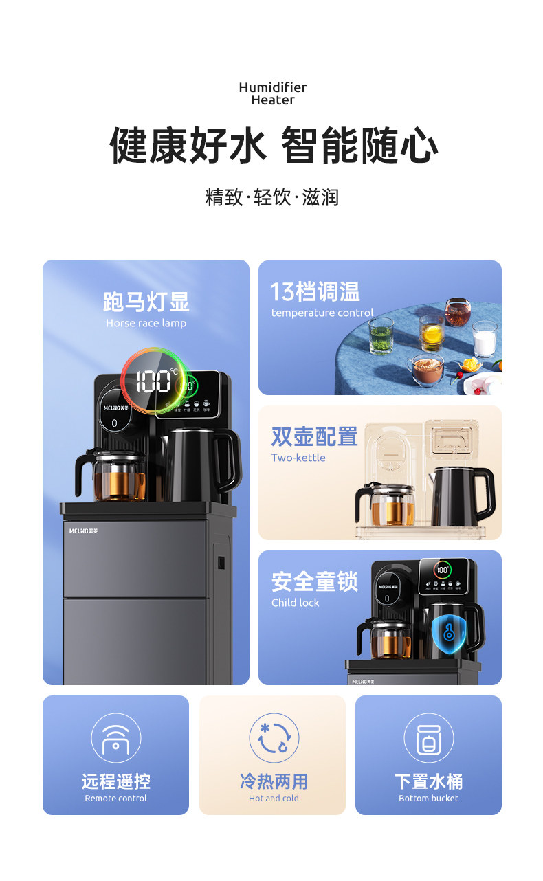 Meiling Smart Vertical Water Dispenser for Home Use with Bottom-Mounted Water Tank, Cooling, Fully Automatic All-In-One Machine, 2025 New Model Tea Bar Machine