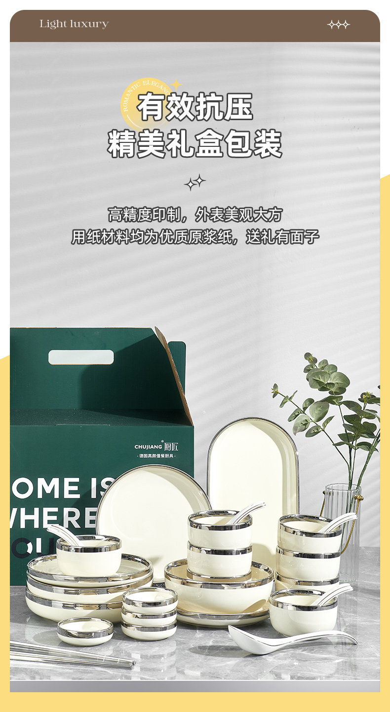| Color Classification | Food for Four - Cream Yellow + White Mix.[28-Piece Set]-Gift Box-With Silver Chopsticks,Six-Person Meal-Cream Yellow + White Mix.[37-Piece Set]-Gift Box-With Silver Chopsticks,Eight-Person Meal - a Mix of Creamy Yellow and Creamy White[43-Piece Set]-Gift Box-With Silver Chopsticks,Food for Ten People - Cream Yellow + White Mix.[52-Piece Set]Gift Box - Free Silver Chopsticks,Food for Four - Creamy Yellow.[28-Piece Set]-Gift Box-With Silver Chopsticks,Six-Person Meal-Cream Yellow[37-Piece Set].-Gift Box-With Silver Chopsticks,Eight-Person Meal-Cream Yellow[43-Piece Set].-Gift Box-With Silver Chopsticks,Food for Ten People - Creamy Yellow[52-Piece Set].Gift Box - Free Silver Chopsticks,Four-Person Dining Set - Premium Silver[28-Piece Set].-Gift Box-With Silver Chopsticks,Six-Person Meal-Light Luxury Silver[37-Piece Set].-Gift Box-With Silver Chopsticks,Eight-Person Meal-Light Luxury Silver[43-Piece Set].-Gift Box-With Silver Chopsticks,Ten-Person Meal-Light Luxury Silver[52-Piece Set].Gift Box - Free Silver Chopsticks,Food for Four - Gray and White Mix[28-Piece Set].-Gift Box-With Silver Chopsticks,Six-Person Meal - Gray and White Mix[37-Piece Set].-Gift Box-With Silver Chopsticks,Eight-Person Meal - Gray and White Mix[43-Piece Set].-Gift Box-With Silver Chopsticks,Food for Ten People - Gray and White Mix.[52-Piece Set]-Gift Box-With Silver Chopsticks,With Casserole - Food for Six People - Cream Yellow + White Mix.[38-Piece Set]-Gift Box-With Silver Chopsticks,With Casserole - Food for Eight People - Cream Yellow + White Mix.[44-Piece Set]-Gift Box-With Silver Chopsticks,With Casserole - Food for Ten People - Cream Yellow + White Mix.[53-Piece Set]-Give Silver Chopsticks,With Casserole - Food for Six - Cream Yellow.[38-Piece Set]-Gift Box-With Silver Chopsticks,With Casserole - Food for Eight People - Cream Yellow.[44-Piece Set]-Gift Box-With Silver Chopsticks,With Casserole - Food for Ten People - Cream Yellow.[53-Piece Set]-Give Silver Chopsticks,With Casserole - Six People Eat Silver[38-Piece Set]-Gift Box-With Silver Chopsticks,With Casserole - Food for Eight People - Silver.[44-Piece Set]-Gift Box-With Silver Chopsticks.,With Casserole - Food for Ten People - Silver -[53-Piece Set]-Gift Box-With Silver Chopsticks |