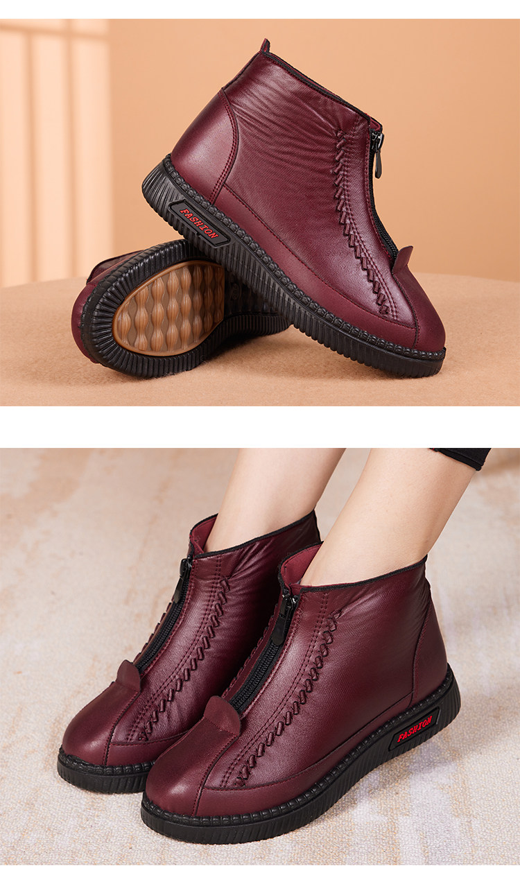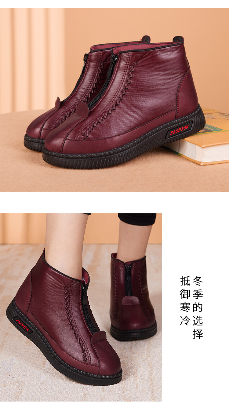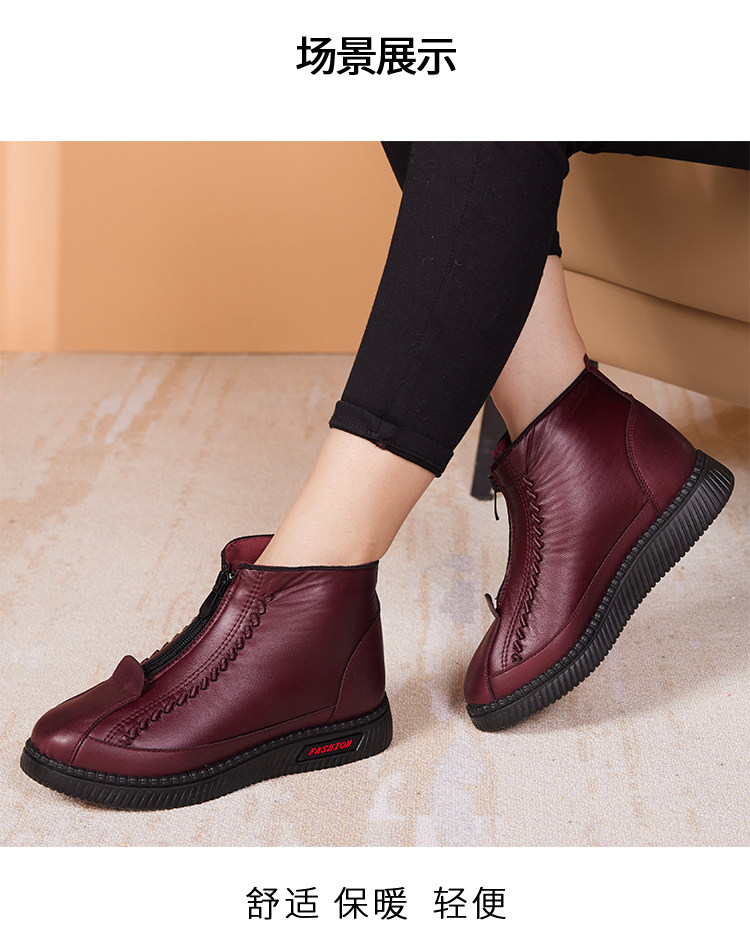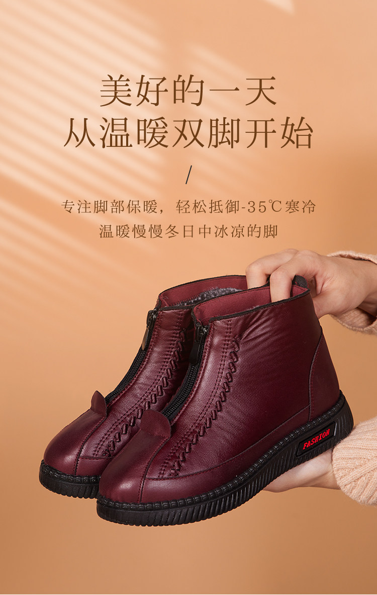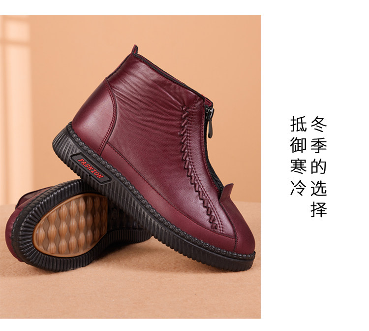 Old Beijing Cotton Shoes for Women, Winter Fleece-Lined and Thickened, Suitable for Middle-Aged and Elderly Mothers and Seniors, Warm, Non-Slip, Soft Leather Fabric Shoes, Grandma's Cotton Boots