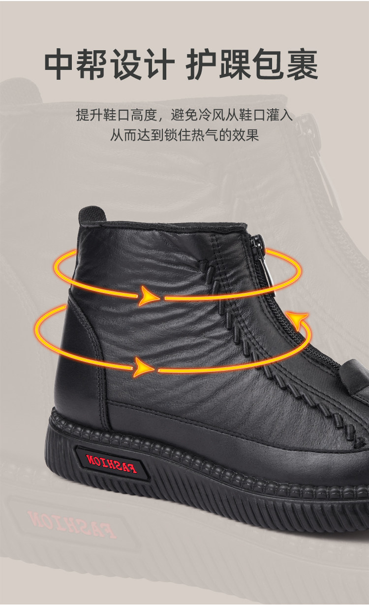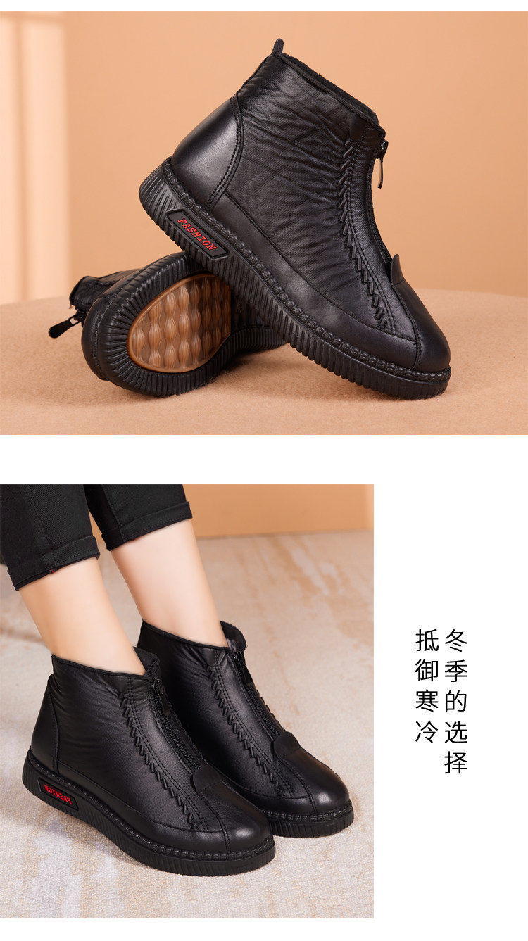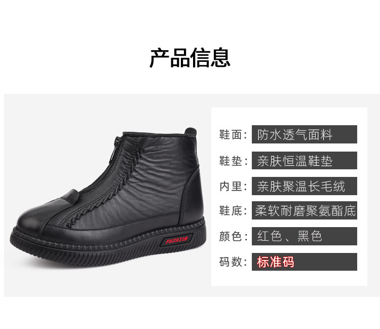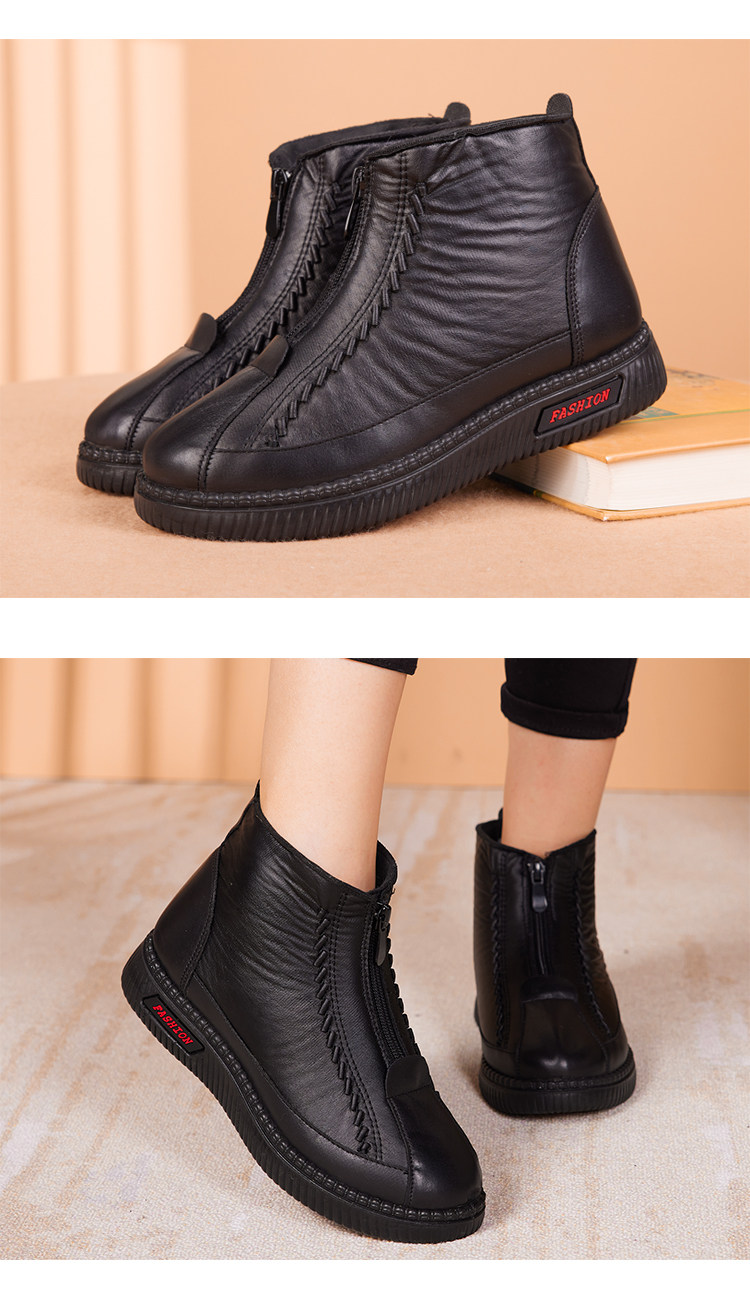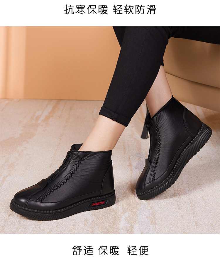 Old Beijing Cotton Shoes for Women, Winter Fleece-Lined and Thickened, Suitable for Middle-Aged and Elderly Mothers and Seniors, Warm, Non-Slip, Soft Leather Fabric Shoes, Grandma's Cotton Boots