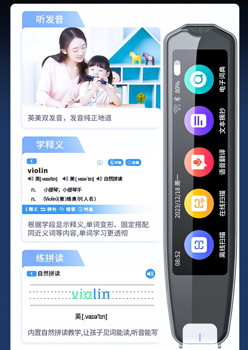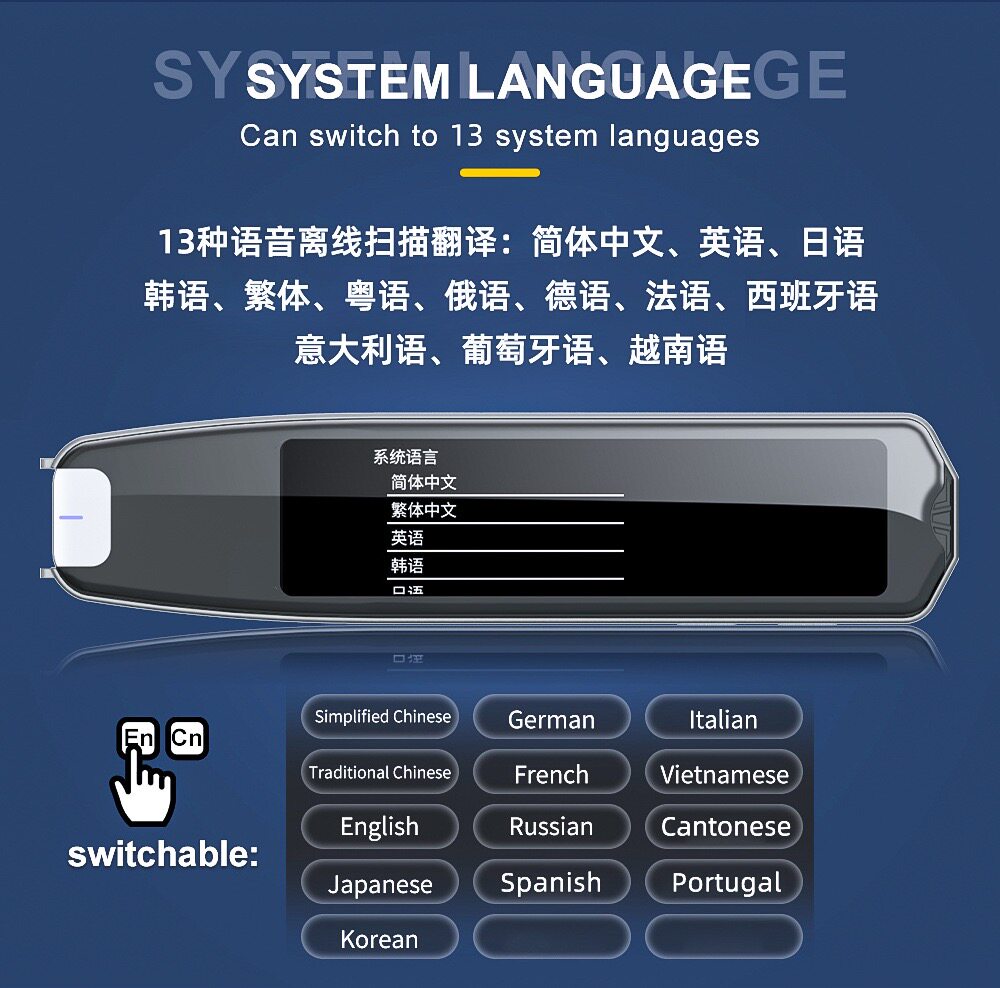 Foreign Language Scanning Pen Russian Reading Pen Dictionary Pen Offline Chinese-English-Japanese-Korean-German-Vietnamese-Malay-French
