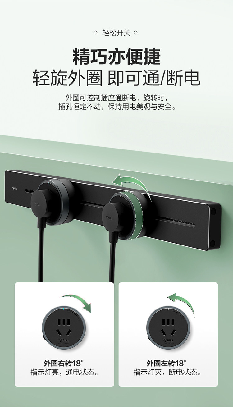 Bull Movable Track Socket Kitchen Living Room Sideboard Mini Power Strip