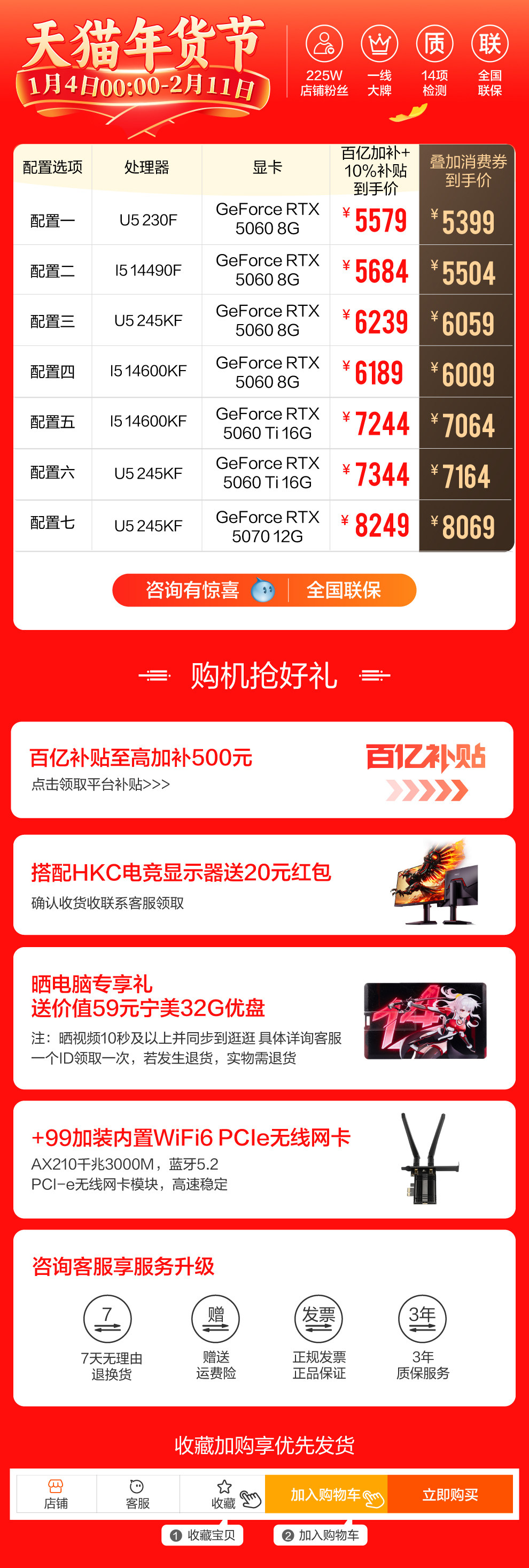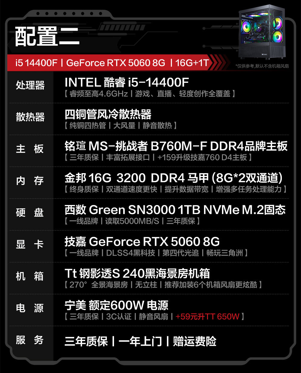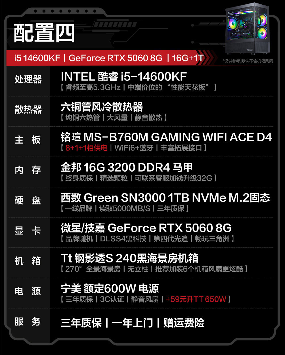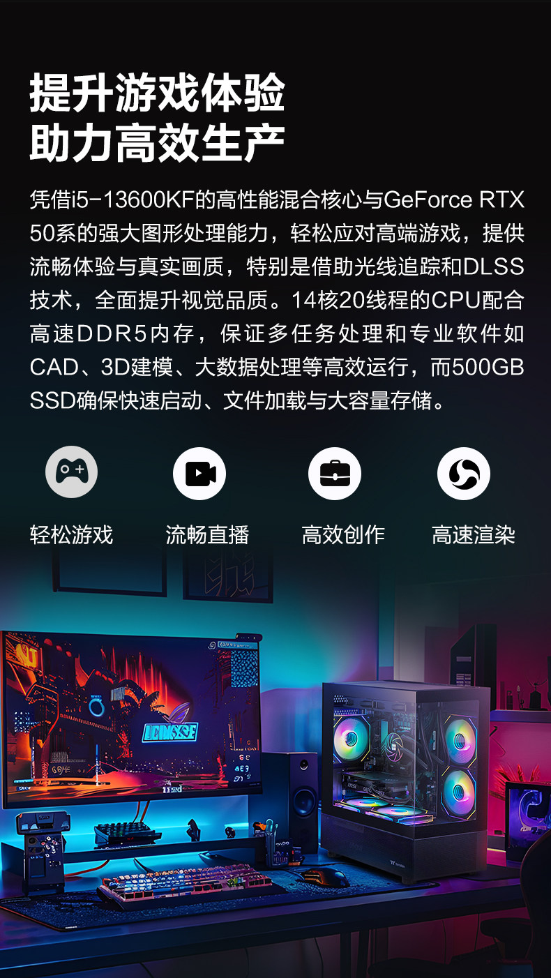 [National Subsidy 10% + Additional Tens of Billions of Subsidies] Ningguomei Computer I5 14600K/230F/245Kf/Rtx5060Ti/5070 Sea View Room Gaming Delta Design Desktop Computer