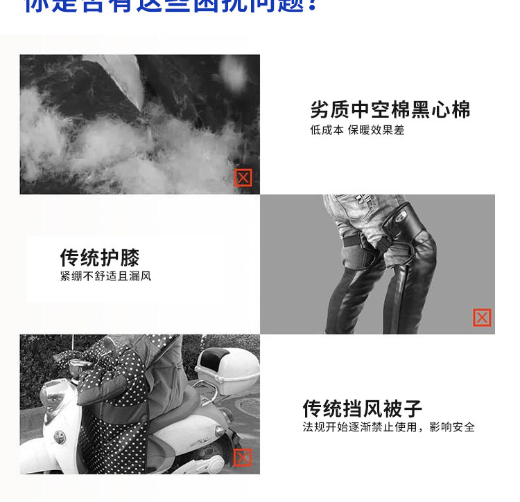 Electric Vehicle Knee Pads for Winter Riding, Fleece-Lined and Thickened for Warmth, Cold-Resistant, Men's Cycling Cotton Windproof Leg Protectors for Motorcycles