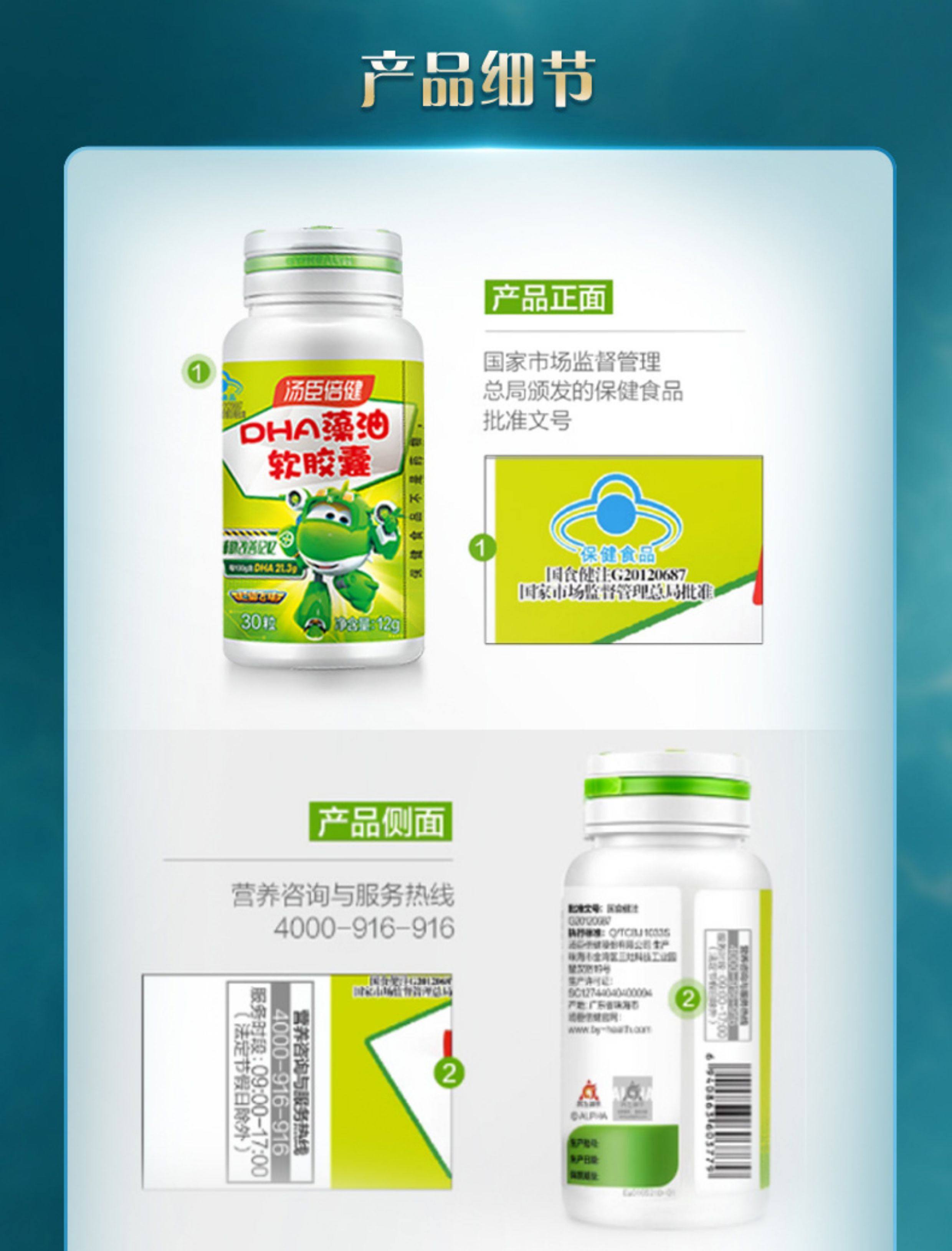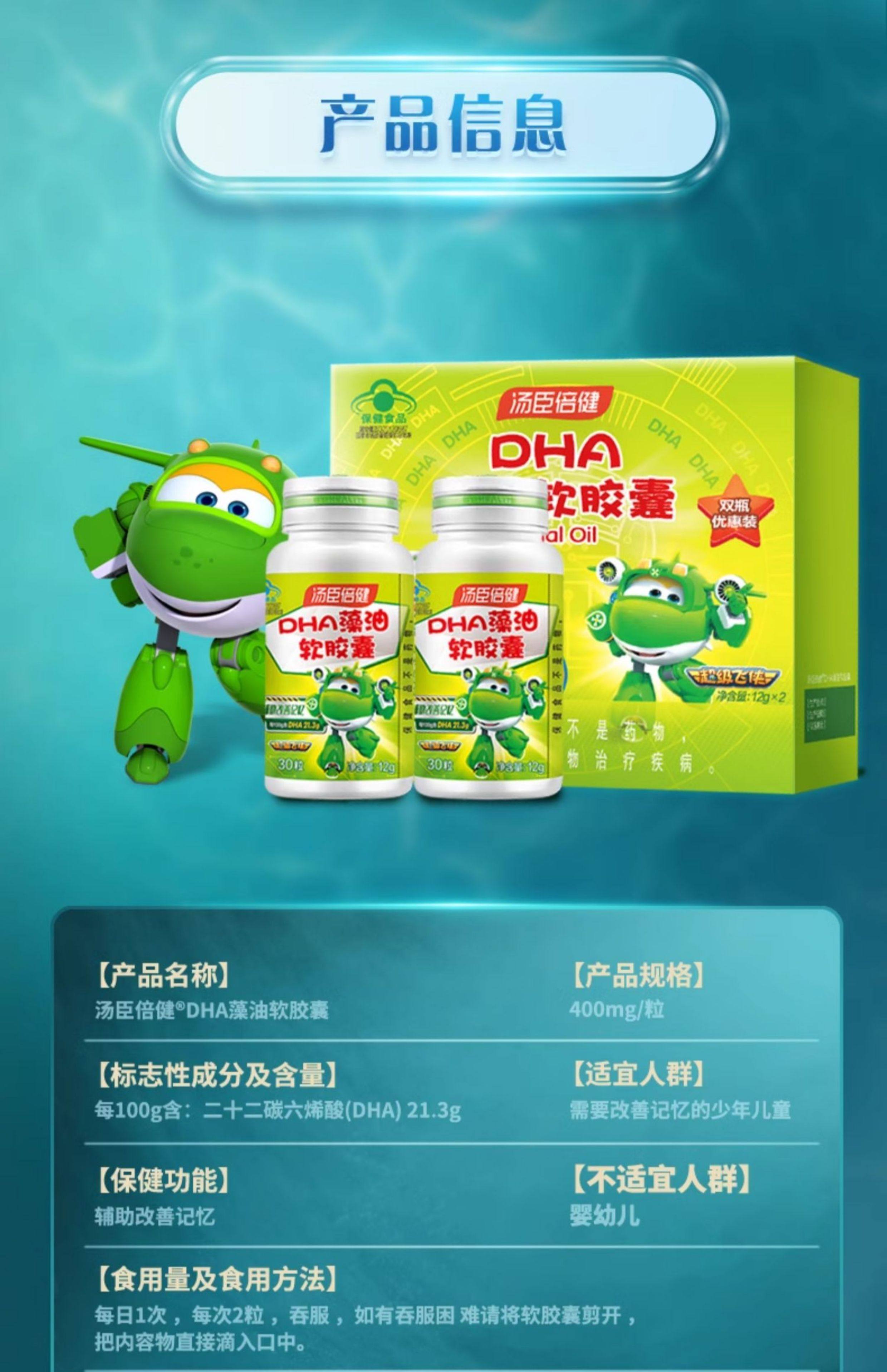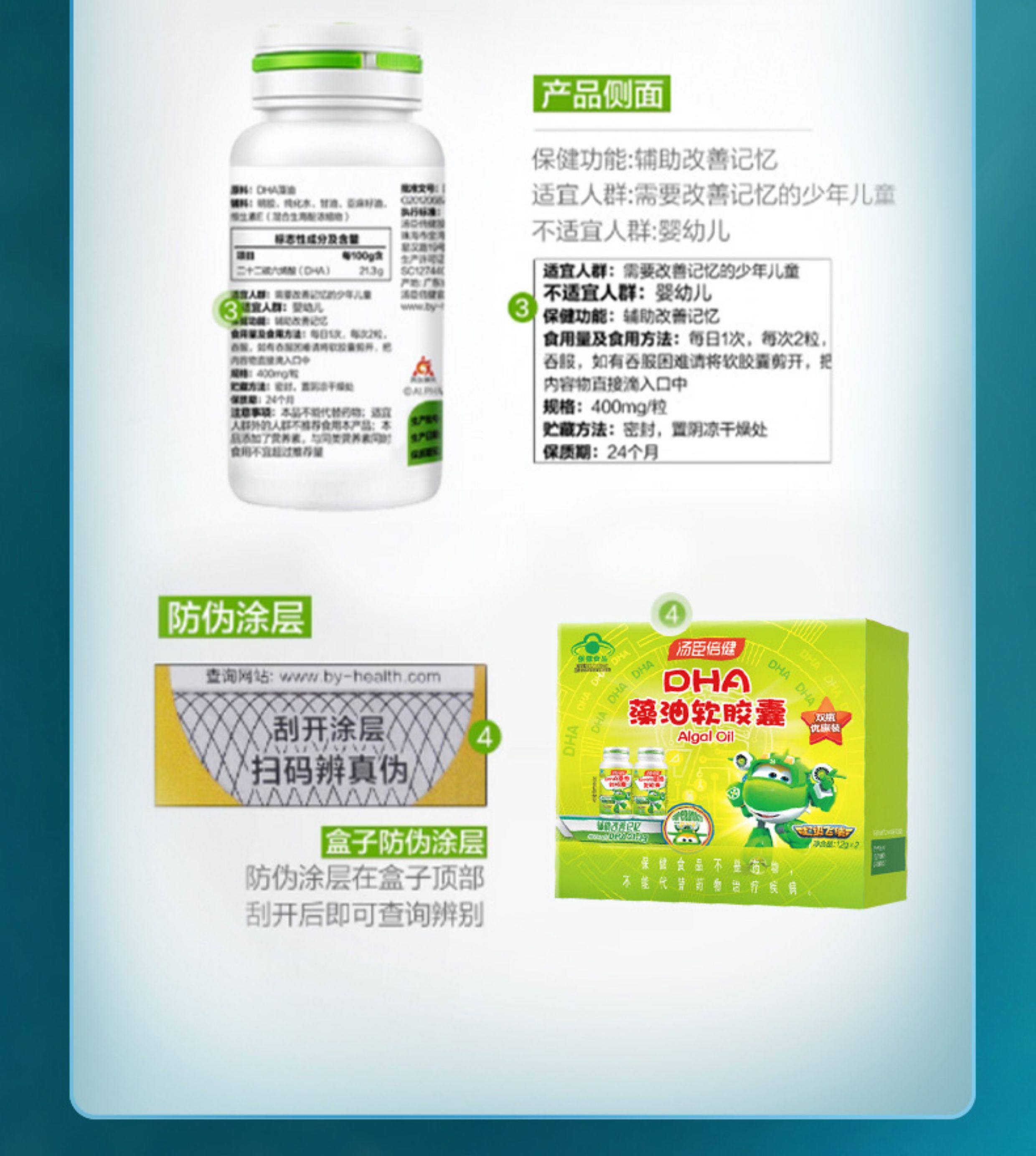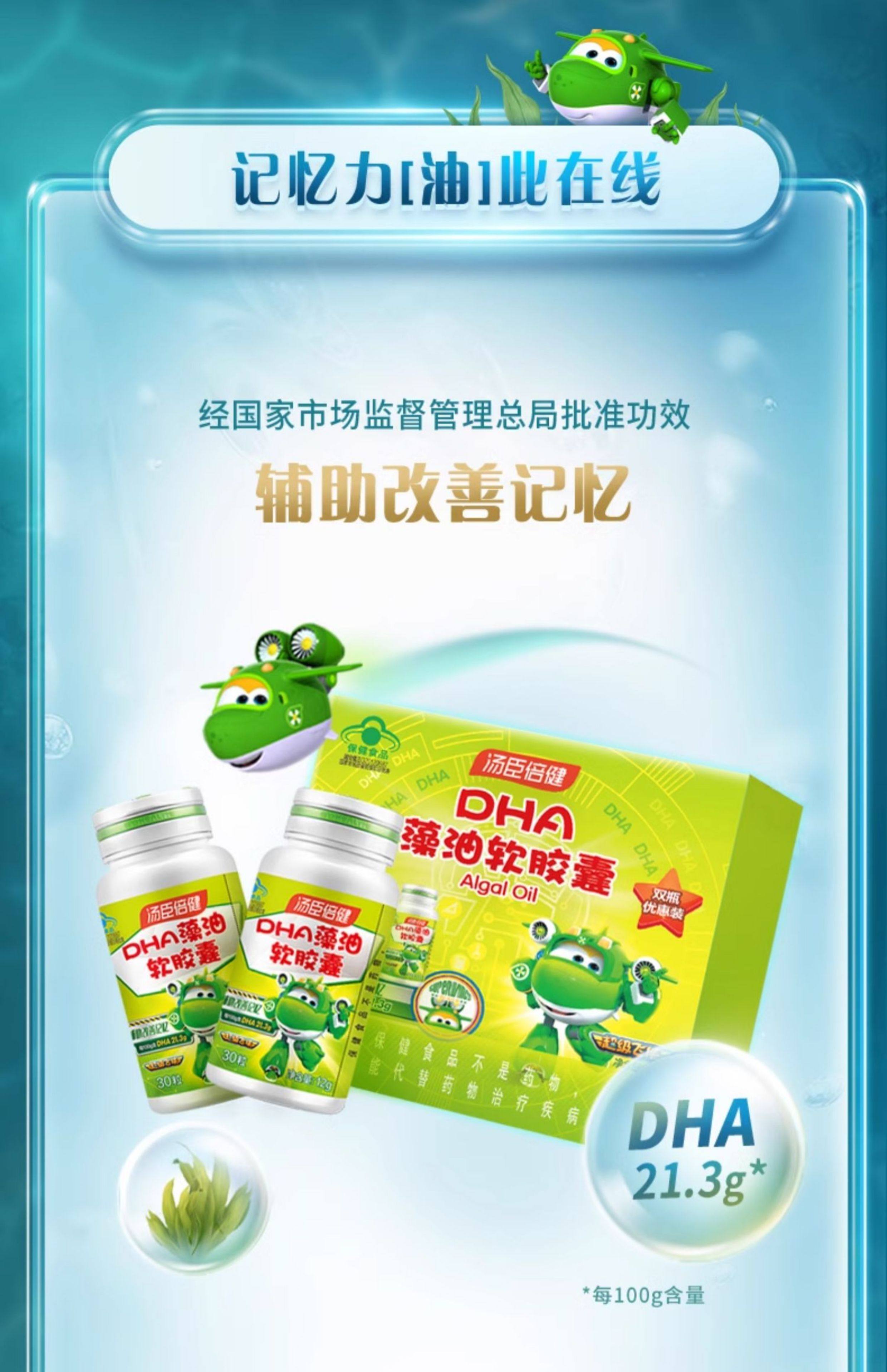 Tomson By-Health Algae Oil Dha Soft Capsules for Students, Non-Fish Oil Dha for Children and Teenagers, 60 Capsules