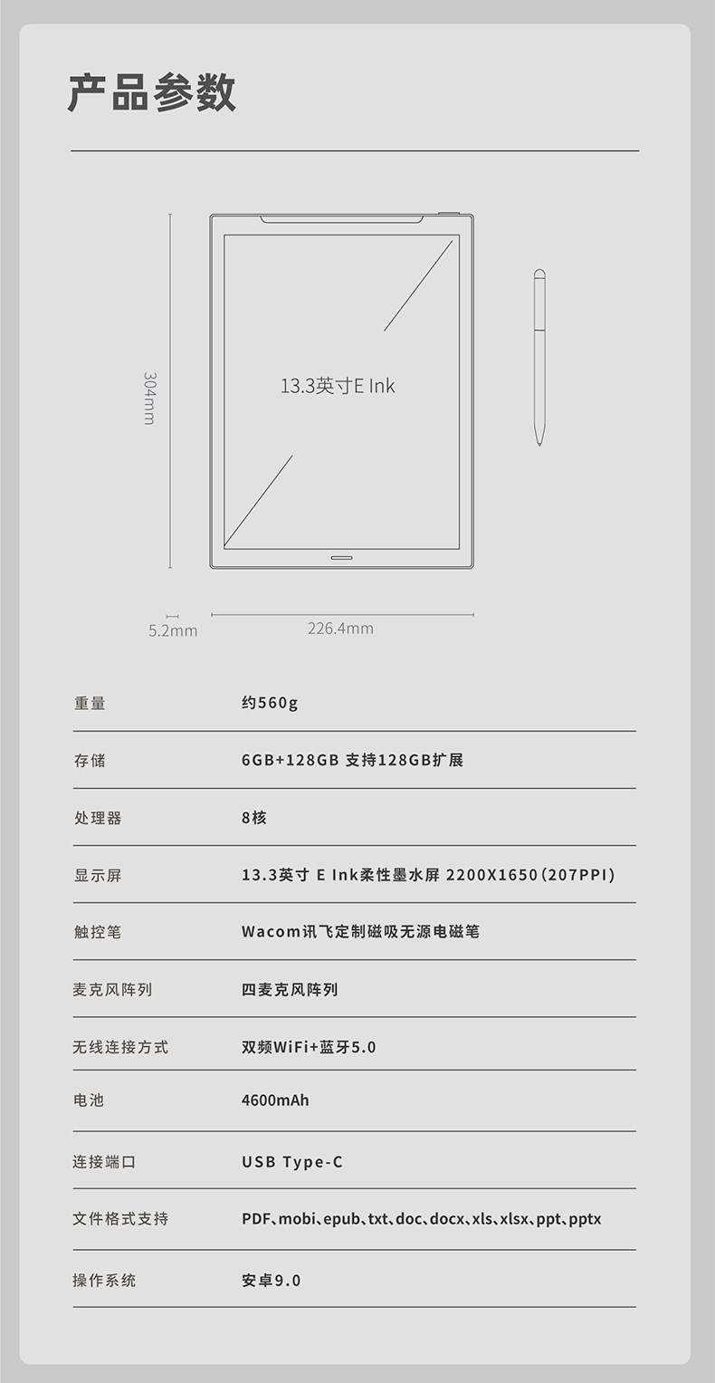 Iflytek Smart Office Notebook Max E-Book Reader E-Paper Book Ink Screen Ink Screen Reader E-Paper Ink Screen Electronic Notebook