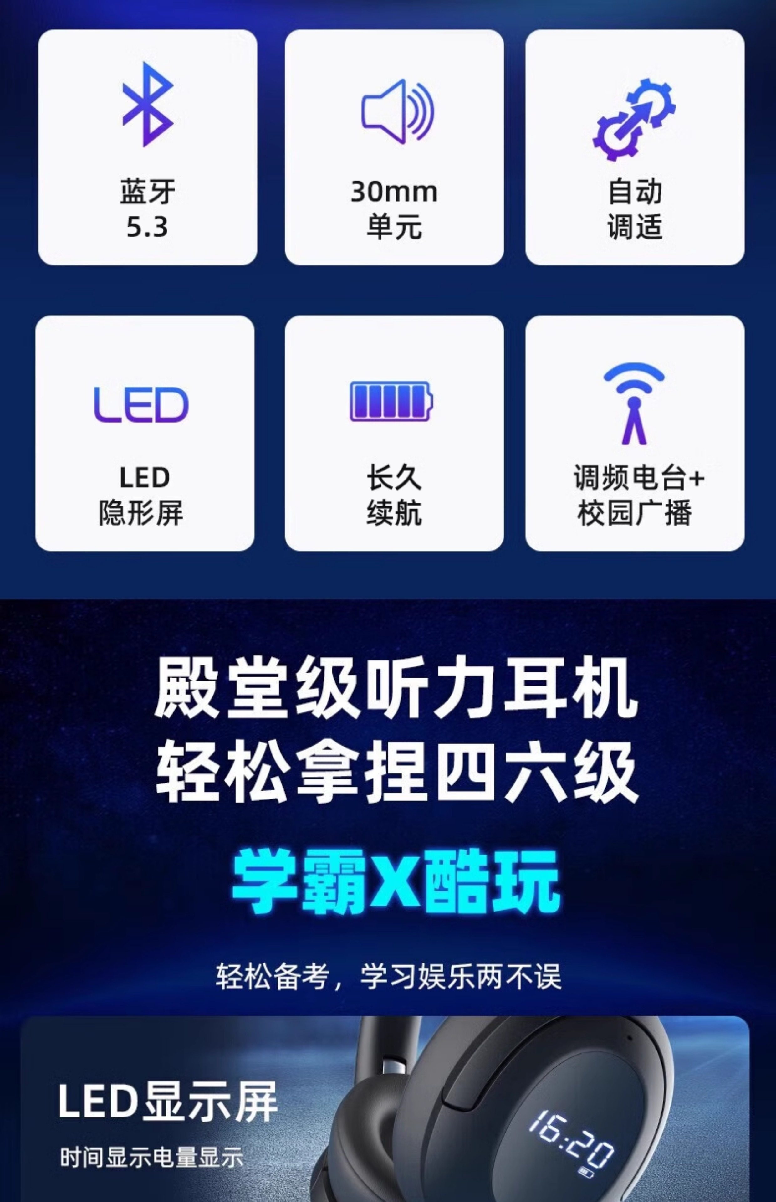 Sobena English Listening Headphones for Cet-4 and Cet-6, Fm Radio, Level 4 and 6, Bluetooth, Head-Mounted, Special for University Exams
