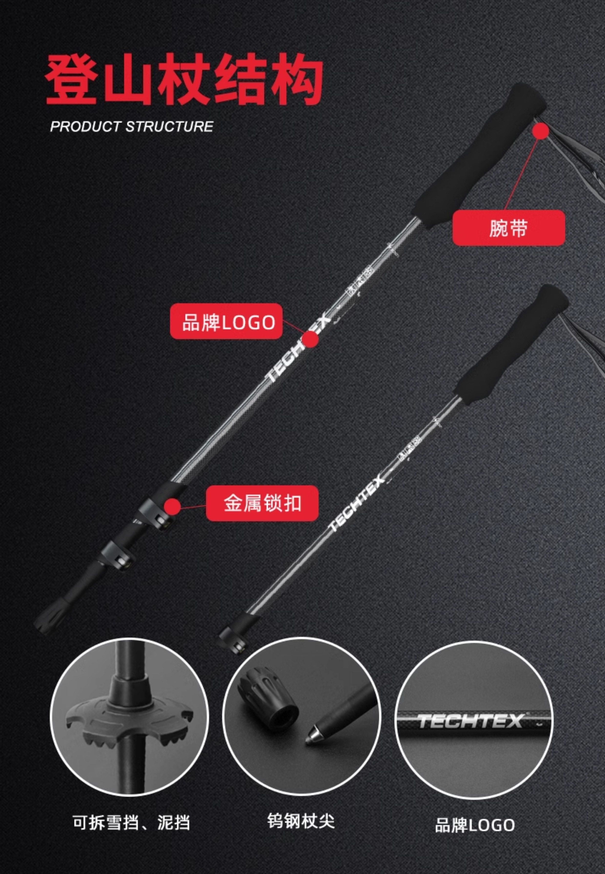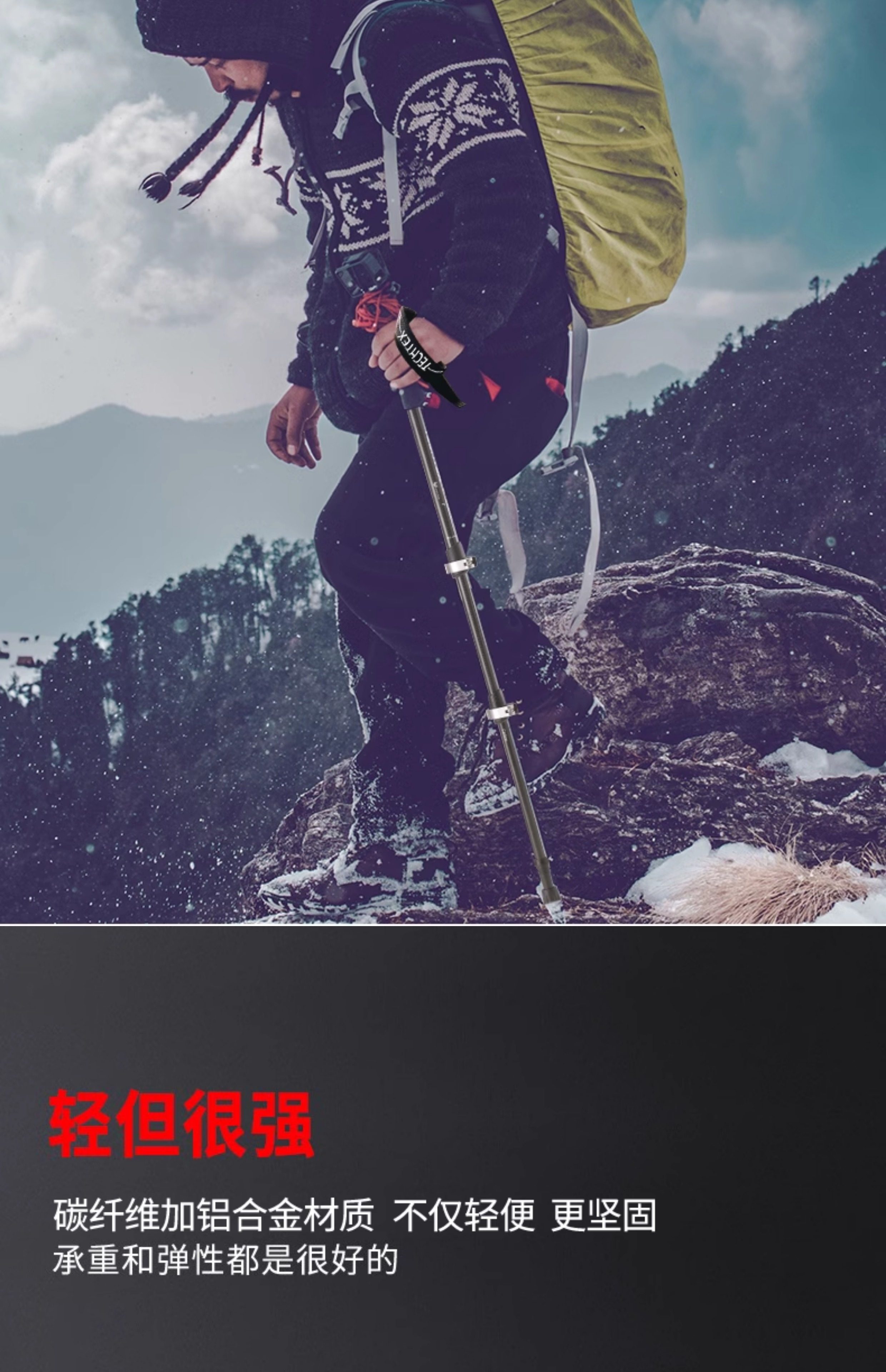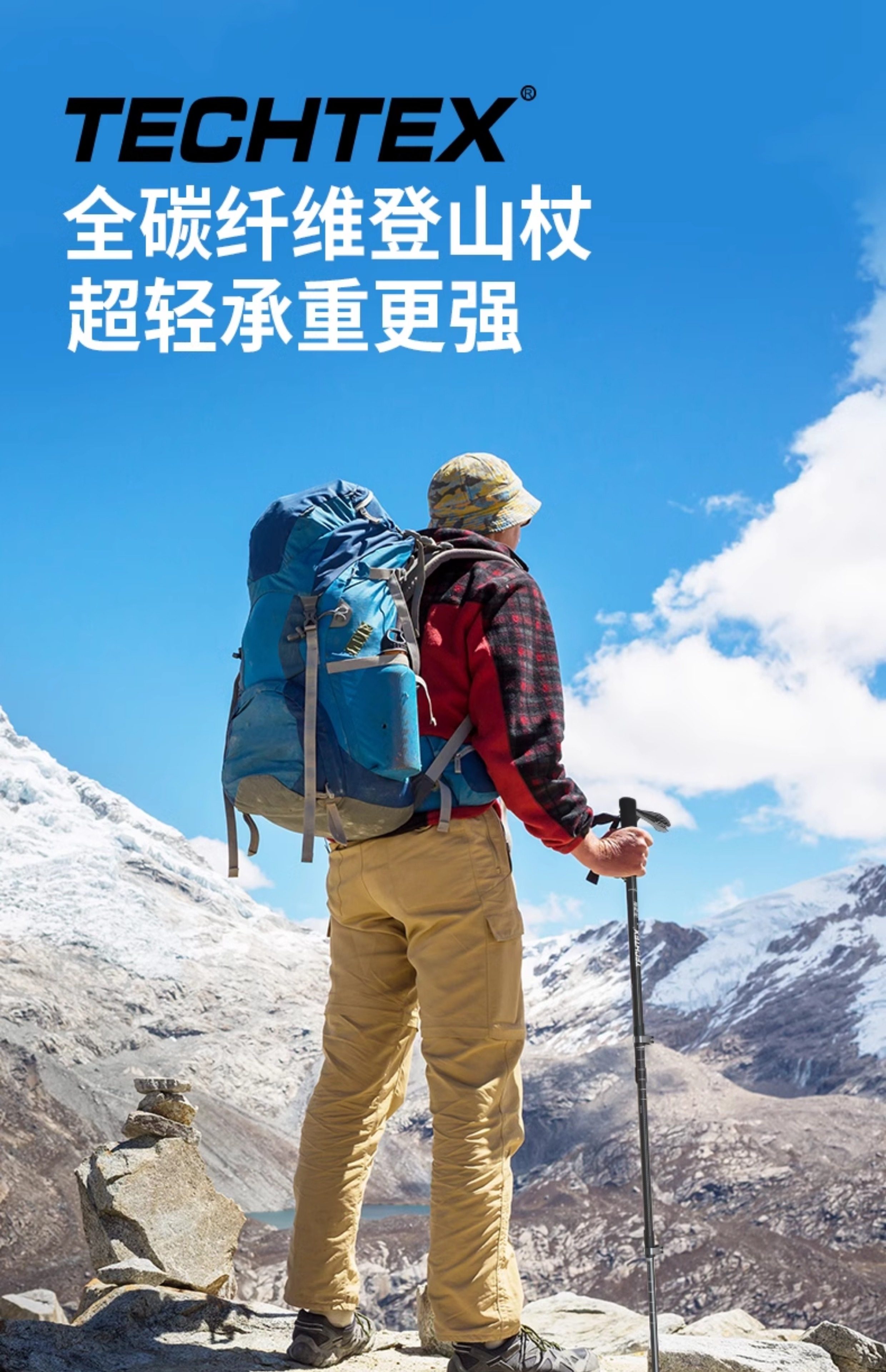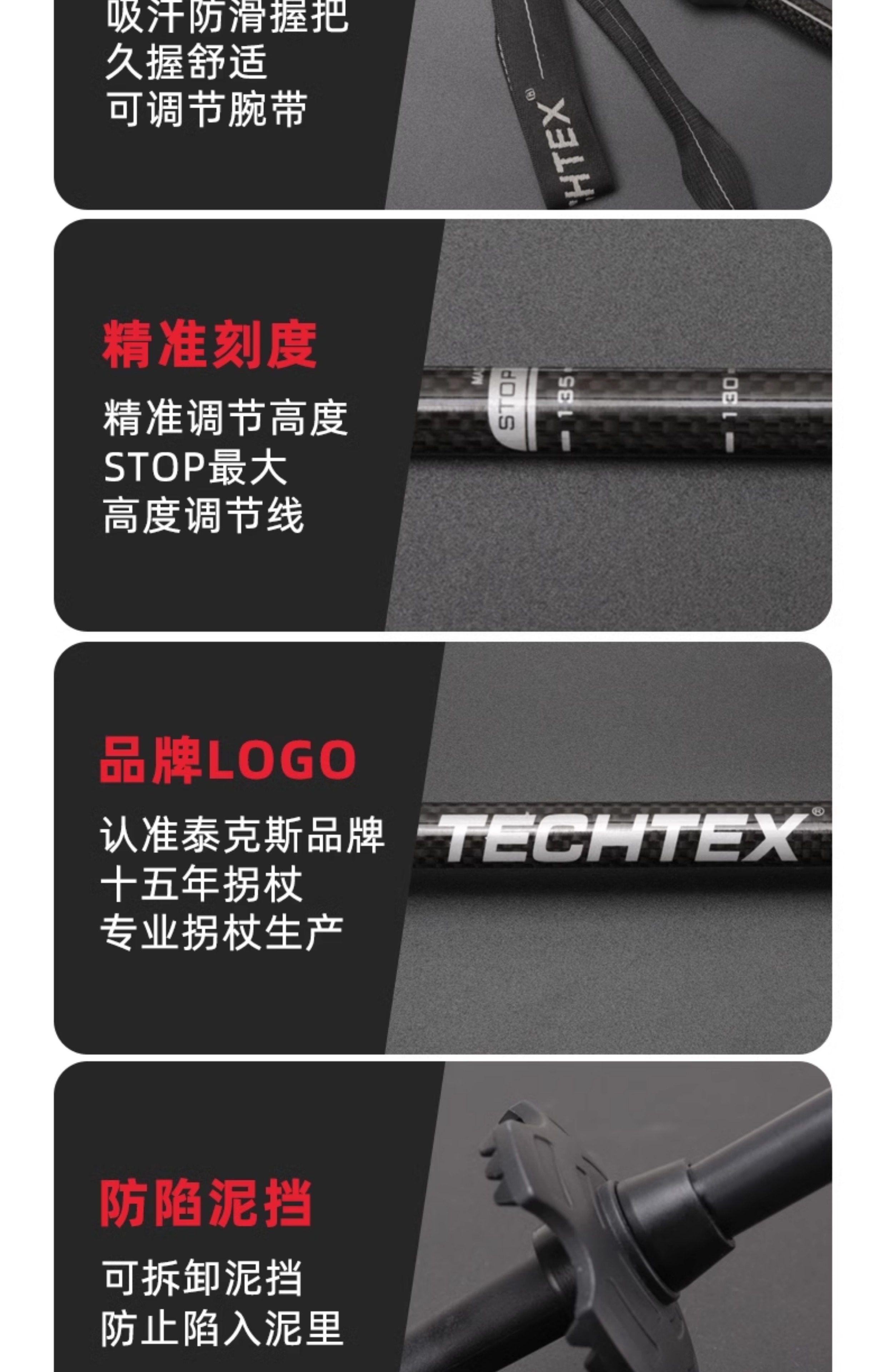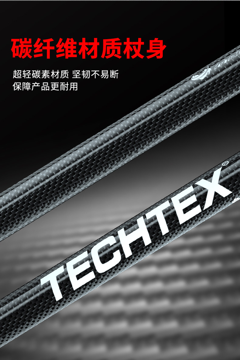 Techtex Carbon Fiber Trekking Poles Ultra-Light Telescopic Non-Slip Walking Sticks Foldable Outdoor Hiking Climbing Equipment Crutches