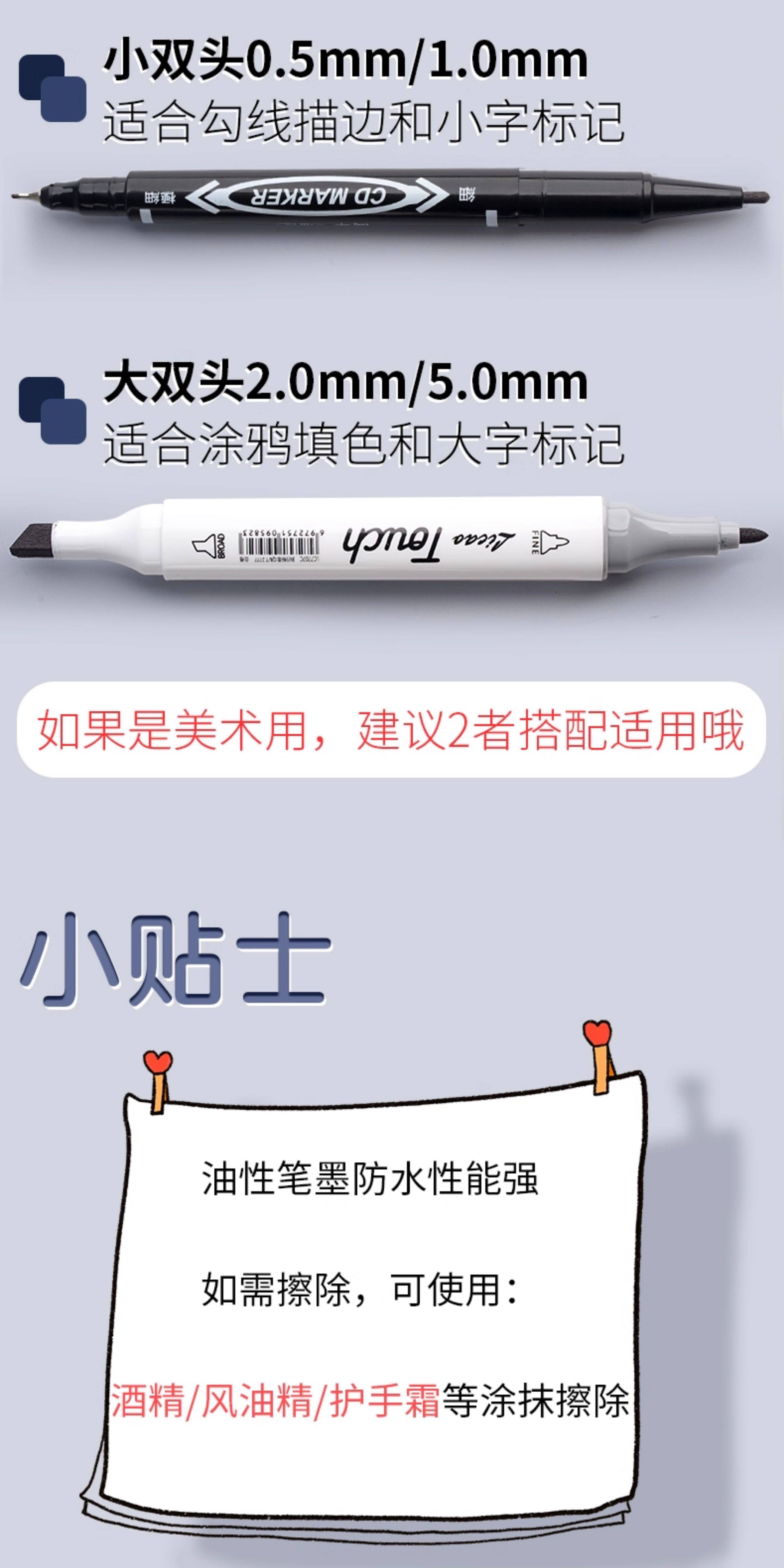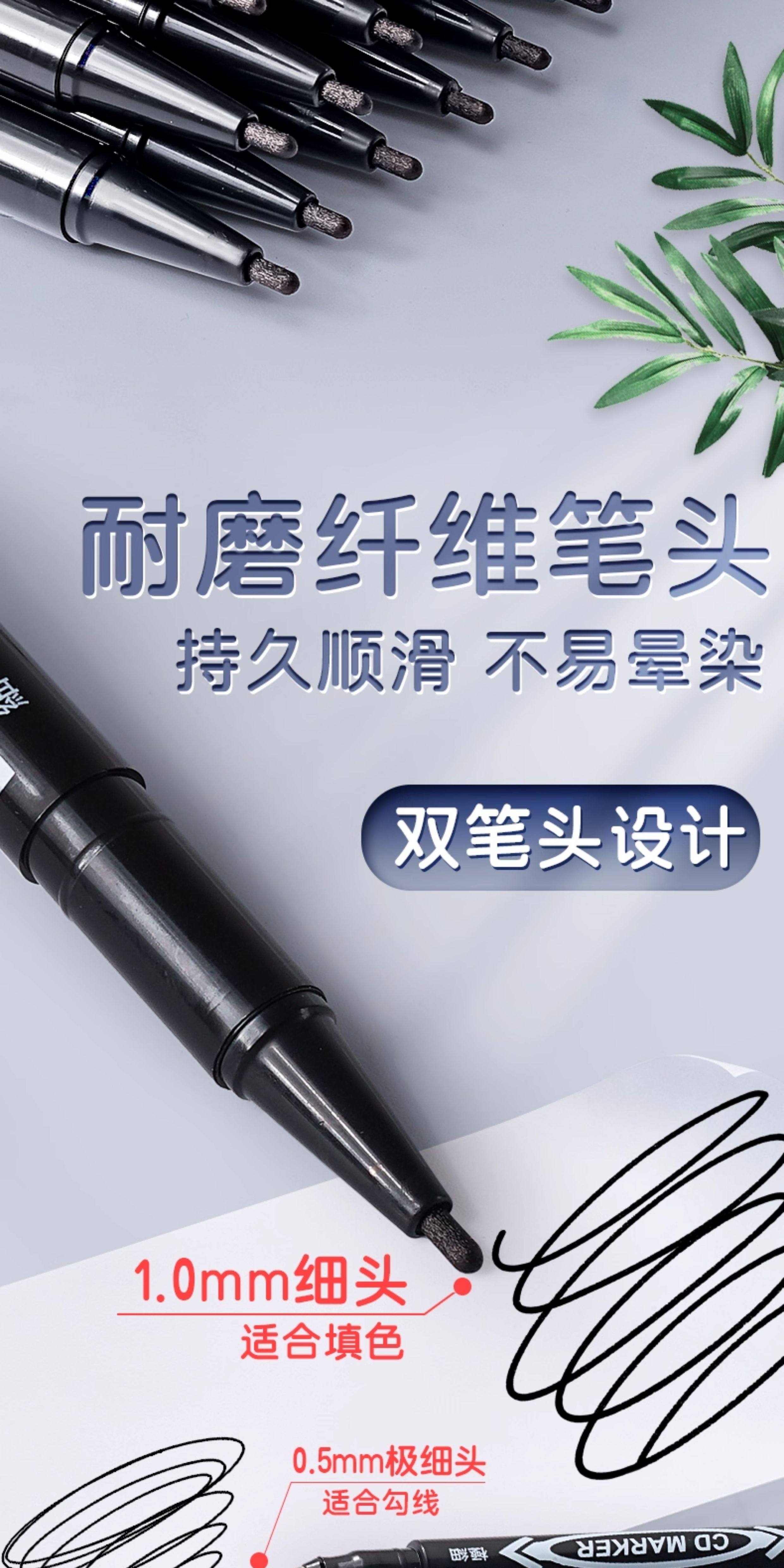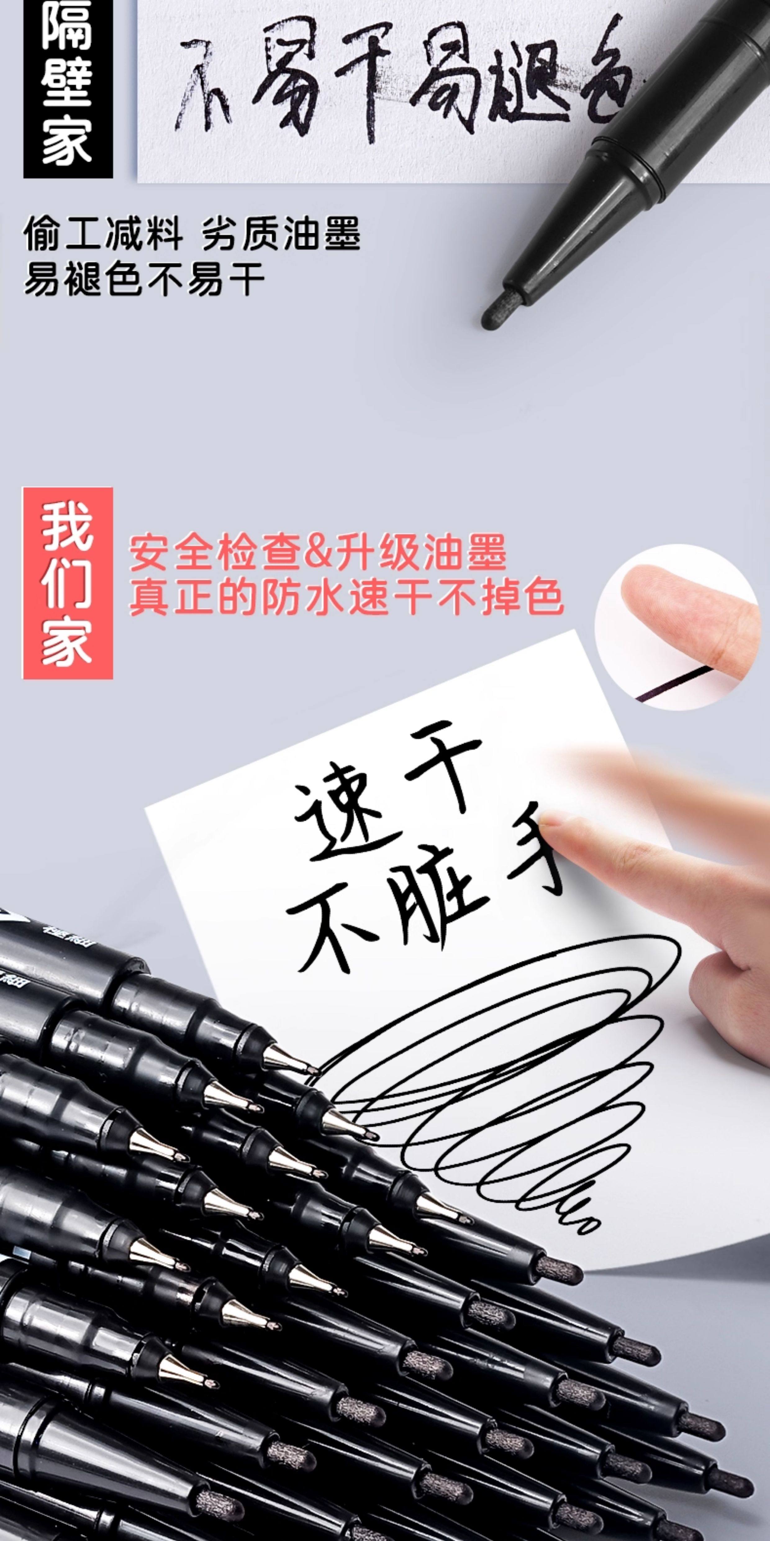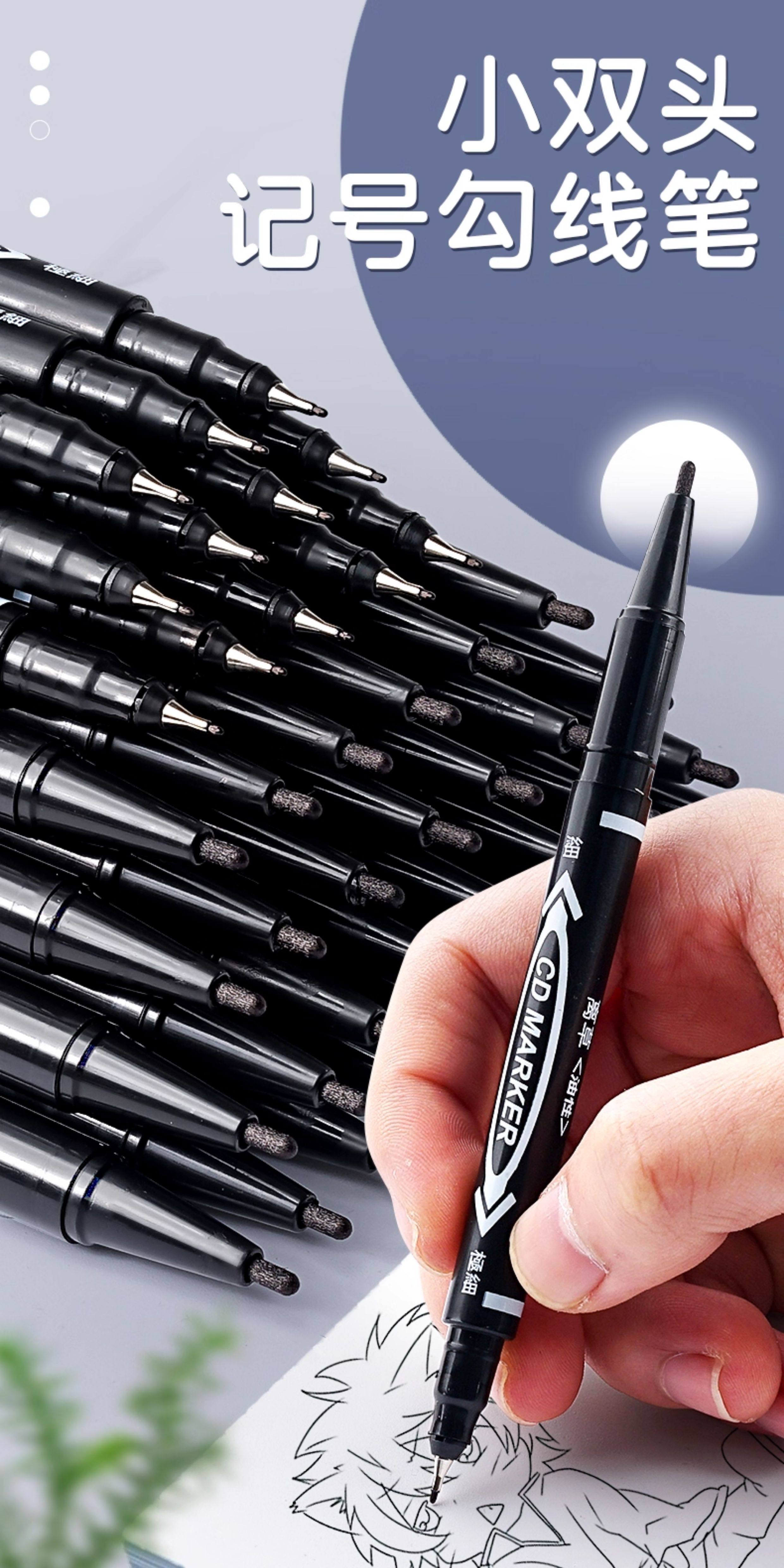 Double-Ended Marker Pen, Waterproof, Oil-Proof, Non-Fading, Outlining Pen, Art-Specific, Black Pen for Elementary Students, Ink Pen, Oil-Based Pen, Signature Pen, Tracing Pen, Outlining Pen, Edge Tracing Pen, Special for Construction Sites, Industrial Use, and Woodworking