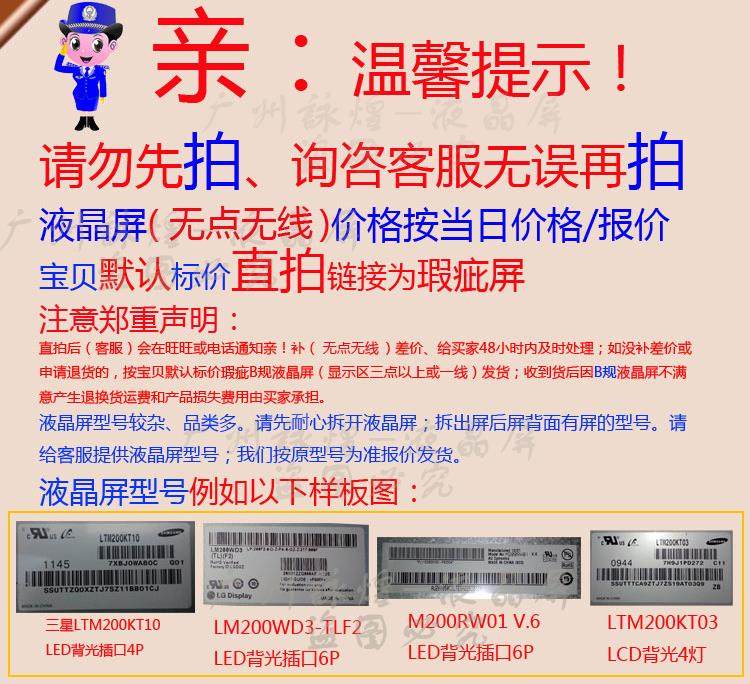 Original Ltm200Kt03/200Kt12/M200O1-02/03/07/Lm200Wd1 Lcd Display Screen
