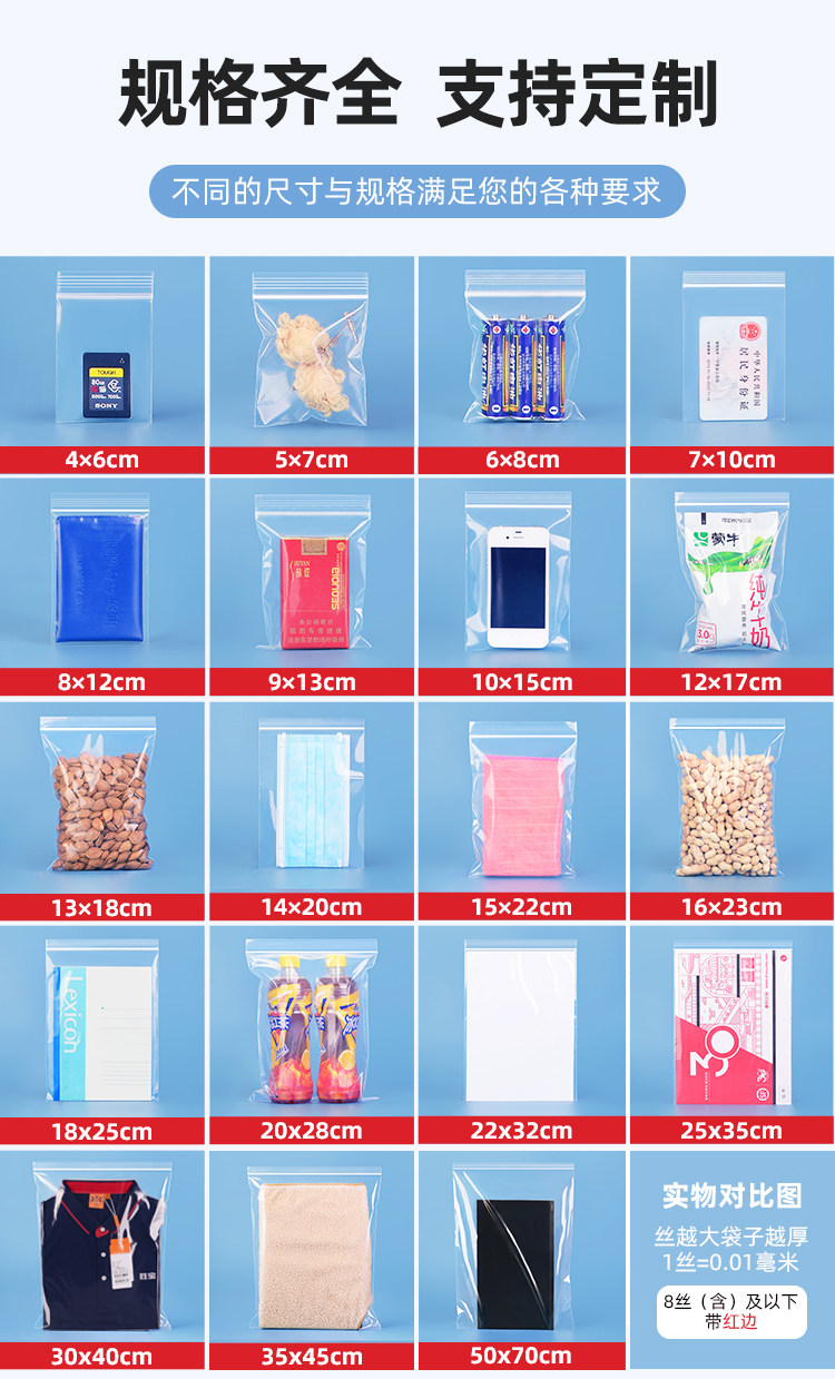 Transparent Self-Sealing Plastic Pe Food Packaging Bags, Thickened Disposable Sealing Bags for Storage, Small and Large Sizes