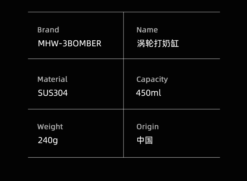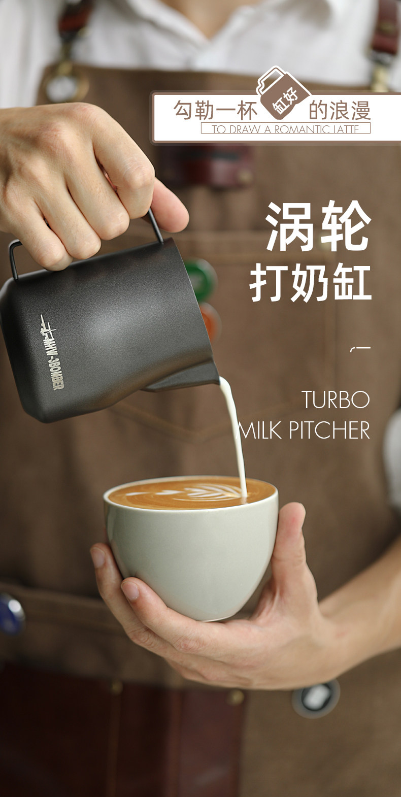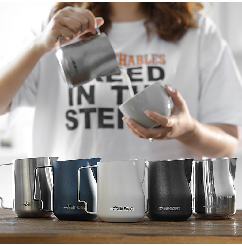 Mhw-3Bomber Bomber-Style Milk Frothing Pitcher with Turbine, 304 Stainless Steel, Spout for Latte Art, Italian Coffee Milk Frother