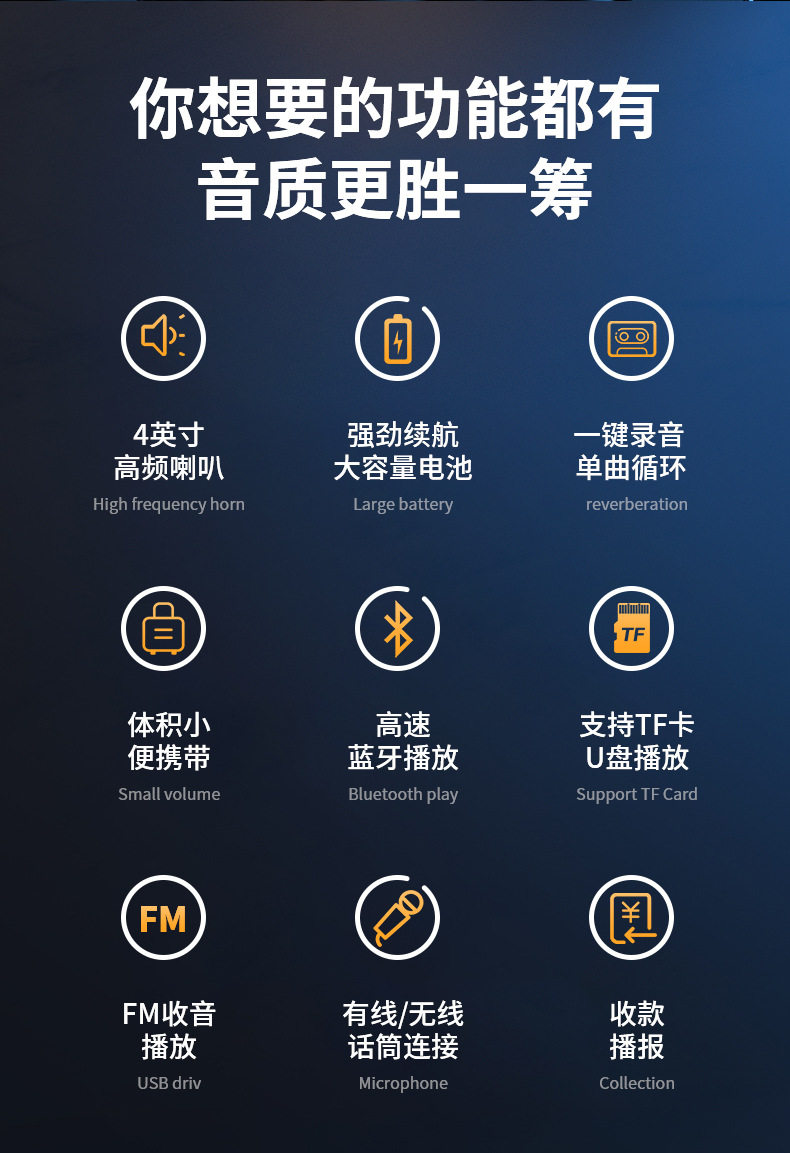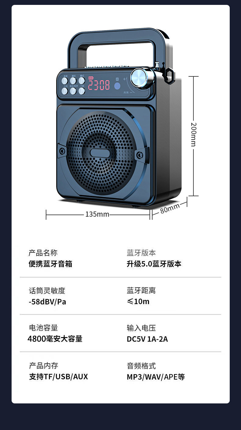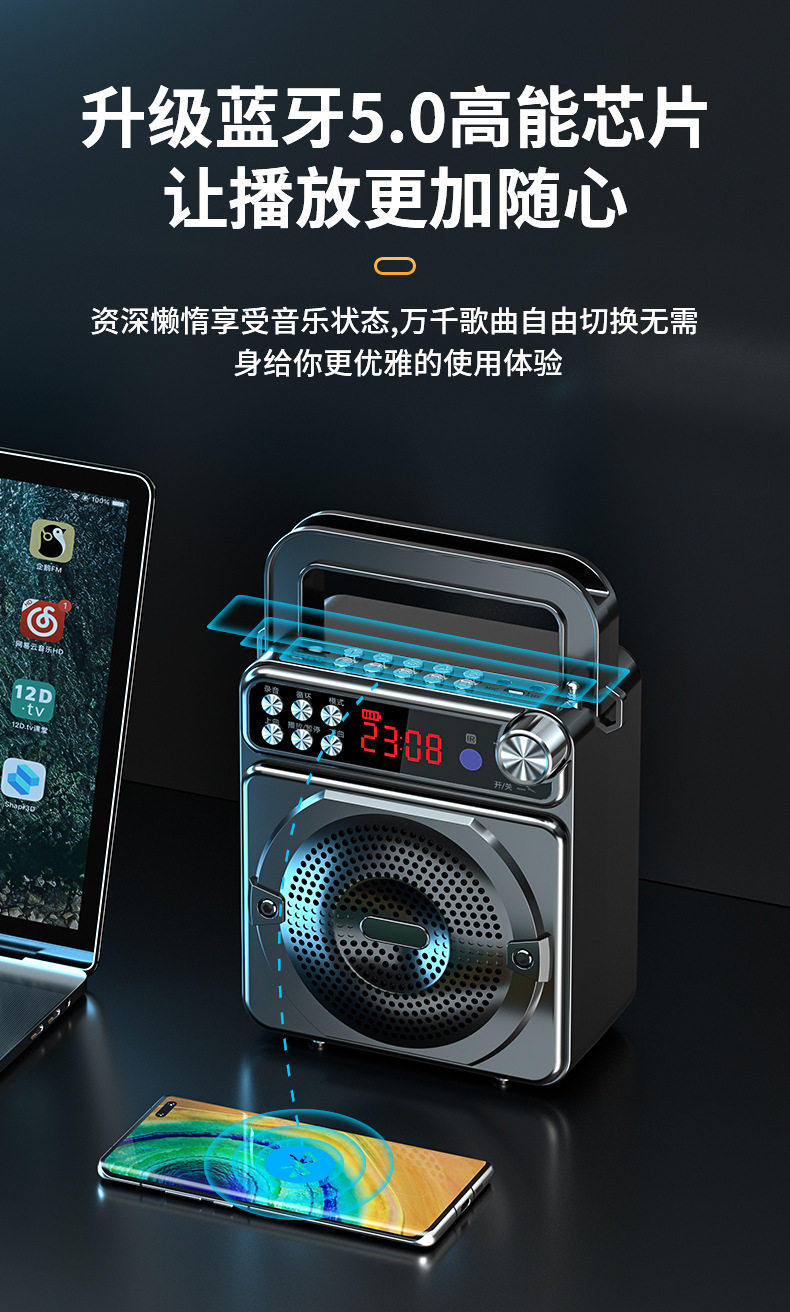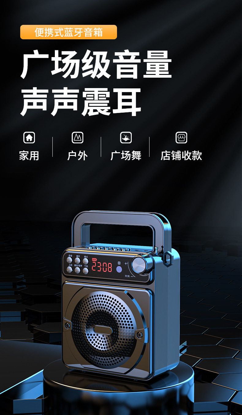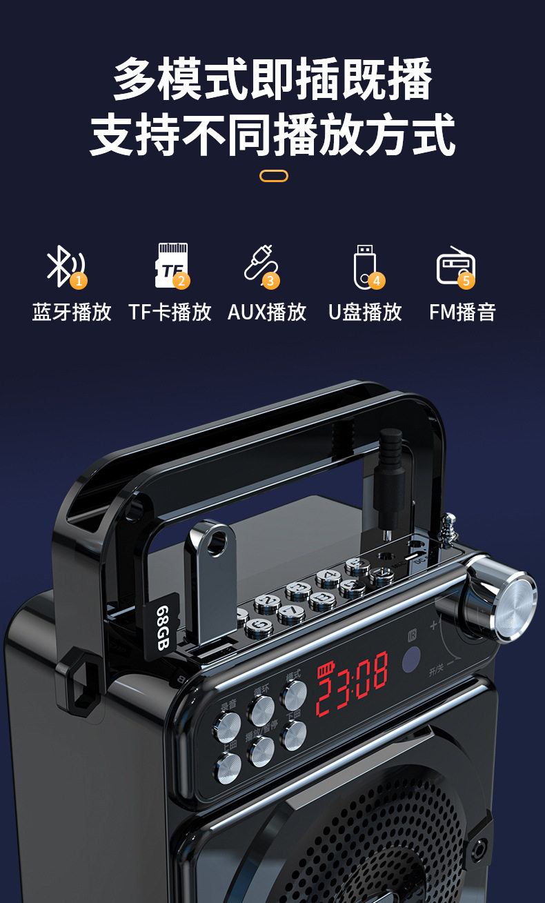 Bluetooth Speaker Portable Outdoor Square Dance Sound System Karaoke Recording Street Stall High Volume Subwoofer Shopping Assistant Player