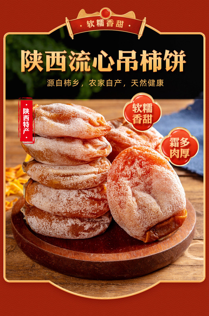 Shaanxi Persimmon Cakes, Fuping Premium Hanging Persimmon Cakes, Official Flagship Store, Liquid Cream Persimmon Cakes, Xi'An Specialty, Individually Packaged Bags
