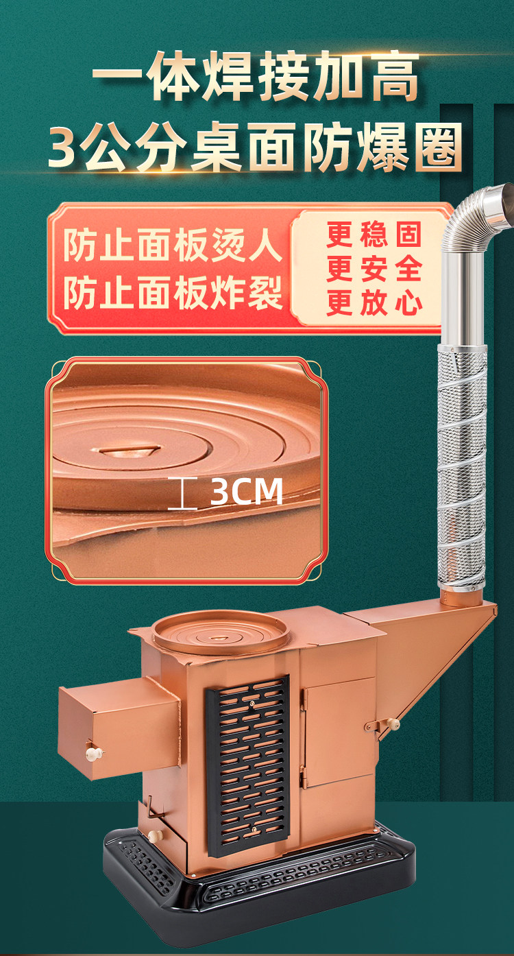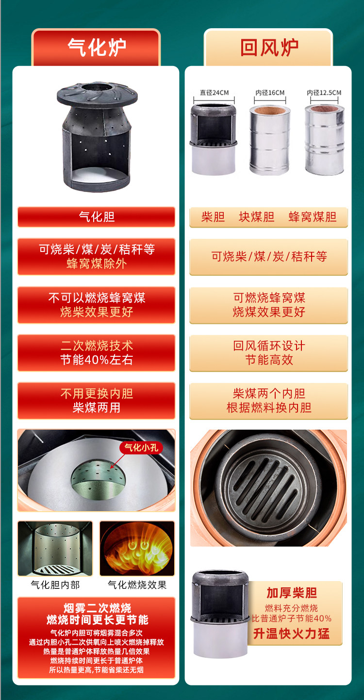 Dual-Purpose Heating Stove for Wood and Coal, Indoor Smokeless Wood-Burning Stove, Household Coal Return-Flue Stove, Rural Gasification Wood Stove