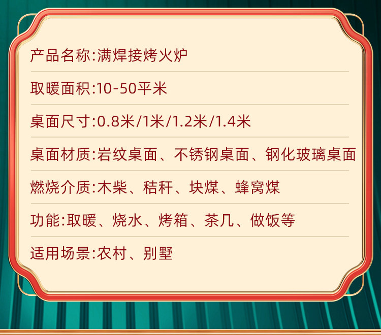 | Color Classification | Free Upgrade to Desktop Colors, Contact Customer Service for Remarks,[0.8m Explosion-Proof Glass Panel] (2-3 People) Wood Stove,[0.8m Explosion-Proof Glass Panel] (2-3 People) Dual-Use for Firewood and Coal,[Explosion-Proof Glass Panel] [Thickened Vaporization] Wood & Coal Compatible,[0.8m Stainless Steel Panel] (2-3 People) Wood Stove,[0.8m Stainless Steel Panel] (2-3 People) Dual Use for Firewood and Coal,[0.8m Stainless Steel Panel] [Thickened Vaporizer] Universal for Wood and Coal,[1m Explosion-Proof Tempered Glass Panel] (4-5 People) Wood Stove,[1m Explosion-Proof Tempered Glass Panel] (4-5 People) Dual-Use for Firewood and Coal,[Explosion-Proof Glass Panel] [Heavy-Duty Vaporizer] Wood & Coal Compatible,[1m Stainless Steel Thickened Panel] (4-5 People) Wood Stove,[1m Stainless Steel Thickened Panel] (4-5 Person Capacity) Wood & Charcoal Dual Fuel,[1m Stainless Steel Panel] [Thickened Vaporizer] Universal for Wood and Coal,[Extra Thick Carbon Steel Panel] (4-5 Person Capacity) - Wood & Charcoal Compatible,[Extra Thick Carbon Steel Panel] [Heavy-Duty Vaporizer] Wood & Charcoal Compatible,[Black Titanium Stainless Steel Panel] Wood & Charcoal Dual Fuel,[Black Titanium Stainless Steel Panel] [Heavy-Duty Vaporizer] Wood & Charcoal Compatible,[1m Thickened Rock Pattern Panel] (4-5 People) Dual-Use for Firewood and Coal,[1m Thickened Rock Pattern Panel] [Thickened Gasifier] Universal for Wood and Coal,[1m Explosion-Proof Glass Flat Swing] (4-5 People) Wood Stove,[Explosion-Proof Glass, Flat Rotating] (4-5 Person) Wood & Coal Dual-Fuel,[1m Explosion-Proof Glass Pan] [Thickened Vaporizer] Universal for Wood and Coal,[1m Thickened Stainless Steel Flat Turn] (4-5 People) Wood Stove,[Heavy-Duty Stainless Steel, Swivel] (4-5 Person Capacity) Wood & Charcoal Compatible,[1m Thickened Stainless Steel Flat Rotation] [Thickened Gasifier] Universal for Wood and Coal,[Black Titanium Stainless Steel Rotary] Wood & Charcoal Compatible,[Black Titanium Stainless Steel Swivel] [Heavy-Duty Vaporizer] Wood & Charcoal Compatible,[1m Thickened Rock Pattern Flat Rotation] (4-5 People) Dual Use of Firewood and Coal,[1m Thickened Rock Pattern Flat Rotation] [Thickened Gasifier] Universal for Wood and Coal,[1.2m Explosion-Proof Glass Panel] (6-8 People) Wood Stove,[1.2m Explosion-Proof Glass Panel] (6-8 People) Dual-Use for Firewood and Coal,[Explosion-Proof Glass Panel] [Heavy-Duty Vaporizer] Wood & Coal Compatible,[1.2m Stainless Steel Thickened Panel] (6-8 People) Wood Stove,[1.2m Stainless Steel Thickened Panel] (6-8 People) Dual-Use for Firewood and Coal,[1.2m Stainless Steel Panel] [Thickened Vaporizer] Universal for Wood and Coal,[Extra Thick Carbon Steel Panel] (4-5 Person Capacity) - Wood & Charcoal Compatible,[Extra Thick Carbon Steel Panel] [Heavy-Duty Vaporizer] Wood & Coal Compatible,[Black Titanium Stainless Steel Panel] Wood & Charcoal Dual Fuel,[Black Titanium Stainless Steel Panel] [Heavy-Duty Vaporizer] Wood & Charcoal Compatible,[1.2m Thickened Rock Pattern Panel] (6-8 People) Dual-Use for Firewood and Coal,[1.2m Thickened Rock Pattern Panel] [Thickened Gasifier] Universal for Wood and Coal,[1.2m Explosion-Proof Glass Flat Turn] (6-8 People) Wood Stove,[1.2m Explosion-Proof Glass Pan] (6-8 People) Dual-Use for Firewood and Coal,[1.2m Explosion-Proof Glass Pan [Thickened Vaporizer] Universal for Wood and Coal,[1.2m Thickened Rock Pattern Flat Rotation] (6-8 People) Dual Use of Firewood and Coal,[1.2m Thickened Rock Pattern Flat Rotation] [Thickened Gasifier] Universal for Wood and Coal,[1.2m Thickened Stainless Steel Flat Turn] (6-8 People) Wood Stove,[Heavy-Duty Stainless Steel, Swivel] (6-8 Person Capacity) Wood & Charcoal Compatible,[1.2m Thickened Stainless Steel Flat Rotation] [Thickened Gasifier] Universal for Wood and Coal,[Extra Thick Carbon Steel Flat Turn] Dual-Purpose for Wood and Coal,[Extra Thick Carbon Steel Flat Turn] [Heavy-Duty Gasifier] Wood & Coal Compatible,[Black Titanium Stainless Steel Rotary] Wood & Charcoal Compatible,[Black Titanium Stainless Steel Swivel] [Heavy-Duty Vaporizer] Wood & Charcoal Compatible,[1.2m Explosion-Proof Glass Top] (6-8 People) Wood Stove,[1.2m Explosion-Proof Glass Top] (6-8 People) Dual-Use for Firewood and Coal,[Explosion-Proof Glass Top] [Heavy-Duty Vaporizer] Wood & Charcoal Compatible,[1.2m Stainless Steel Top-Loading] (6-8 People) Dual-Use for Firewood and Coal,[1.2m Stainless Steel Top Rotation] [Thickened Gasifier] Universal for Wood and Coal,[1.2m Thickened Rock Pattern Upper Turn] (6-8 People) Dual Use of Firewood and Coal,[1.2m Thickened Rock Pattern Upper Rotation] [Thickened Gasifier] Universal for Wood and Coal,[Explosion-Proof Glass Flat Top] (8-10 Person Capacity) Wood & Charcoal Dual Fuel,[1.4m Explosion-Proof Glass Pan] [Thickened Vaporizer] Universal for Wood and Coal,[1.4m Thickened Stainless Steel Flat Grill] (8-10 Person Capacity) Wood & Charcoal Dual Fuel,[1.4m Thickened Stainless Steel Flat Rotation] [Thickened Gasifier] Universal for Wood and Coal,[1.4m Thickened Rock Pattern Flat Rotation] (8-10 People) Dual Use of Firewood and Coal,[Extra Thick Rock Pattern Flat Turn][Thickened Vaporizer]Universal for Wood and Coal,[1.4m Explosion-Proof Tempered Glass Top] Dual Use for Wood and Coal,[Upgraded Tempered Glass Lid] [Thickened Vaporizer] Wood & Charcoal Compatible,[Black Titanium Stainless Steel Rotary] Wood & Charcoal Compatible,[Black Titanium Stainless Steel Swivel] [Heavy-Duty Vaporizer] Wood & Charcoal Compatible,[1.6m Explosion-Proof Glass Pan] (10-13 People) Dual-Use for Firewood and Coal,[1.6m Explosion-Proof Glass Pan] [Thickened Vaporizer] Universal for Wood and Coal,[Rectangular Glass or Stainless Steel] [Thickened Vaporizer] Universal for Wood and Coal,[Square Glass or Stainless Steel] [Heavy-Duty Vaporizer] Wood & Charcoal Compatible,[Rectangular Glass or Stainless Steel] (4-5 People) Dual-Use for Firewood and Coal,Single Furnace Body |