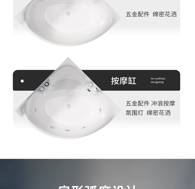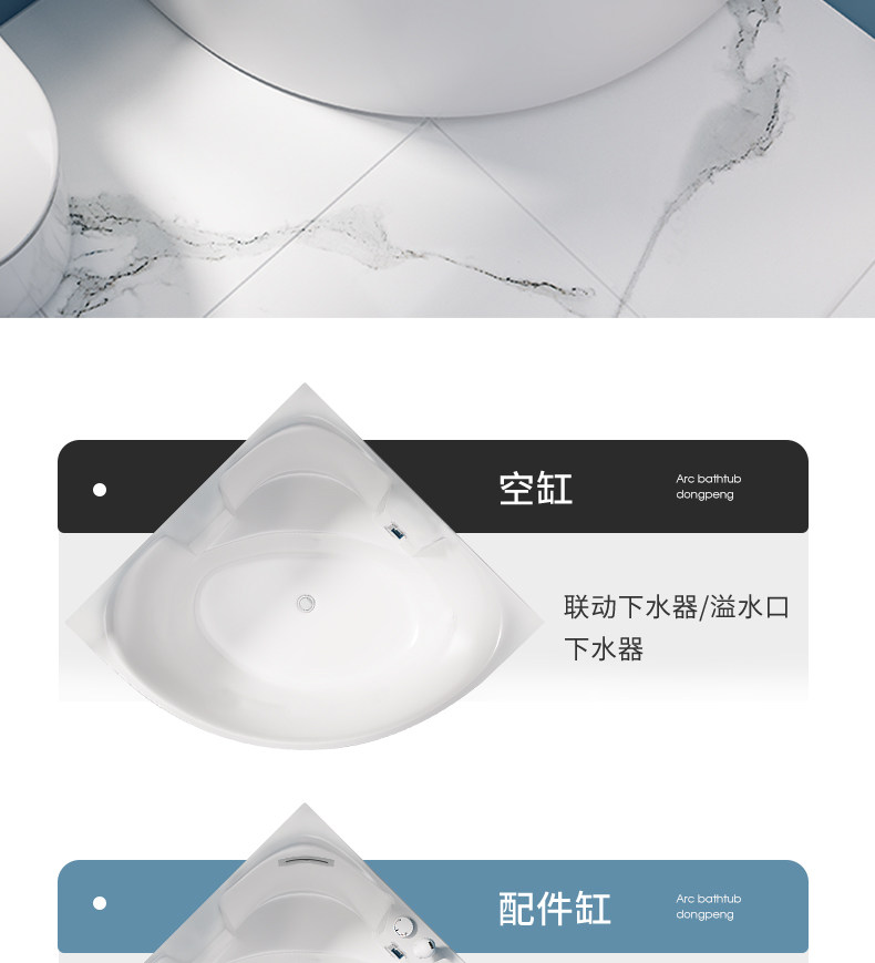 Dongpeng Triangular Fan-Shaped Small Apartment Bathtub Sitting-Type Bathroom Acrylic Couple's Home Soaking Bathtub Finished Product