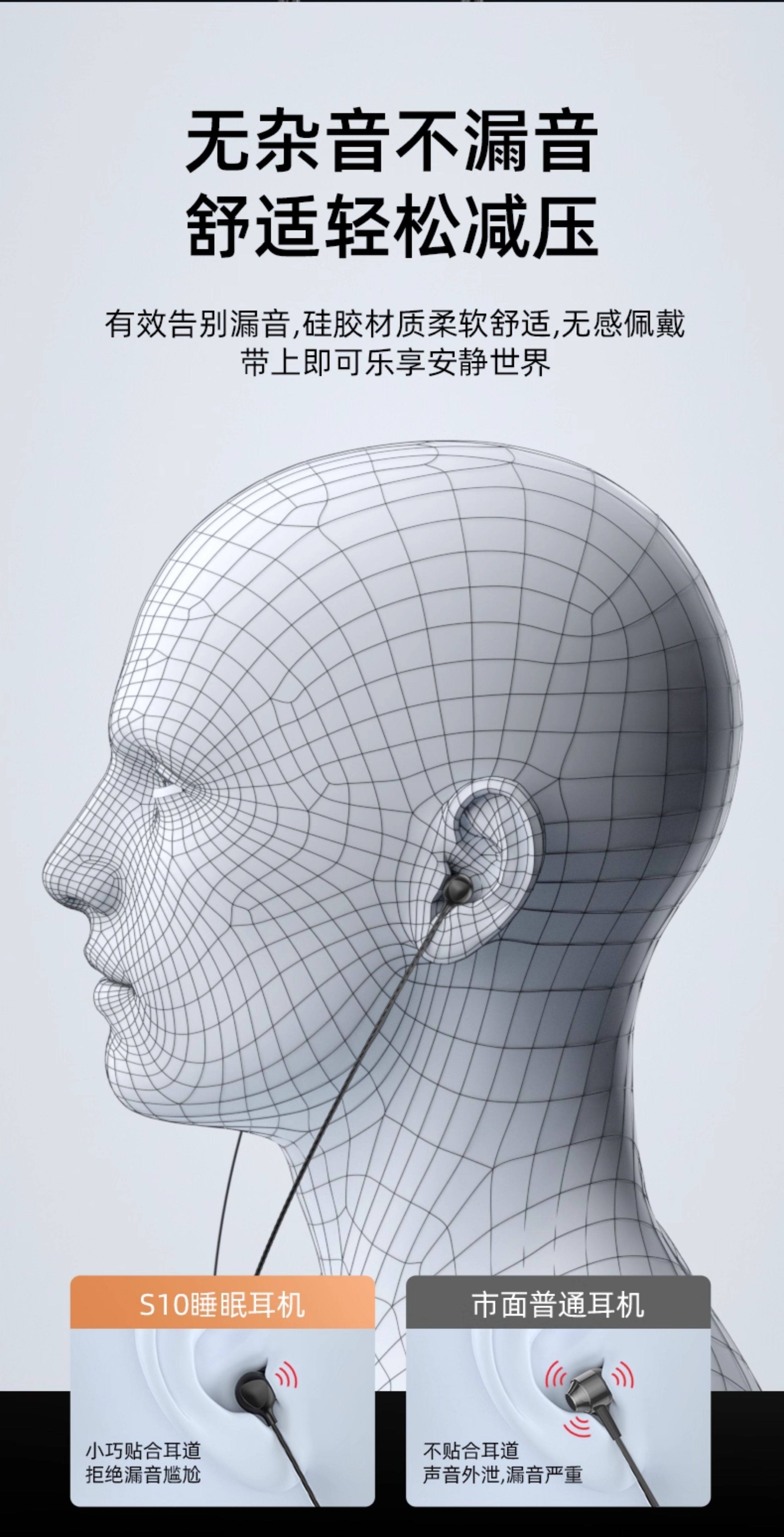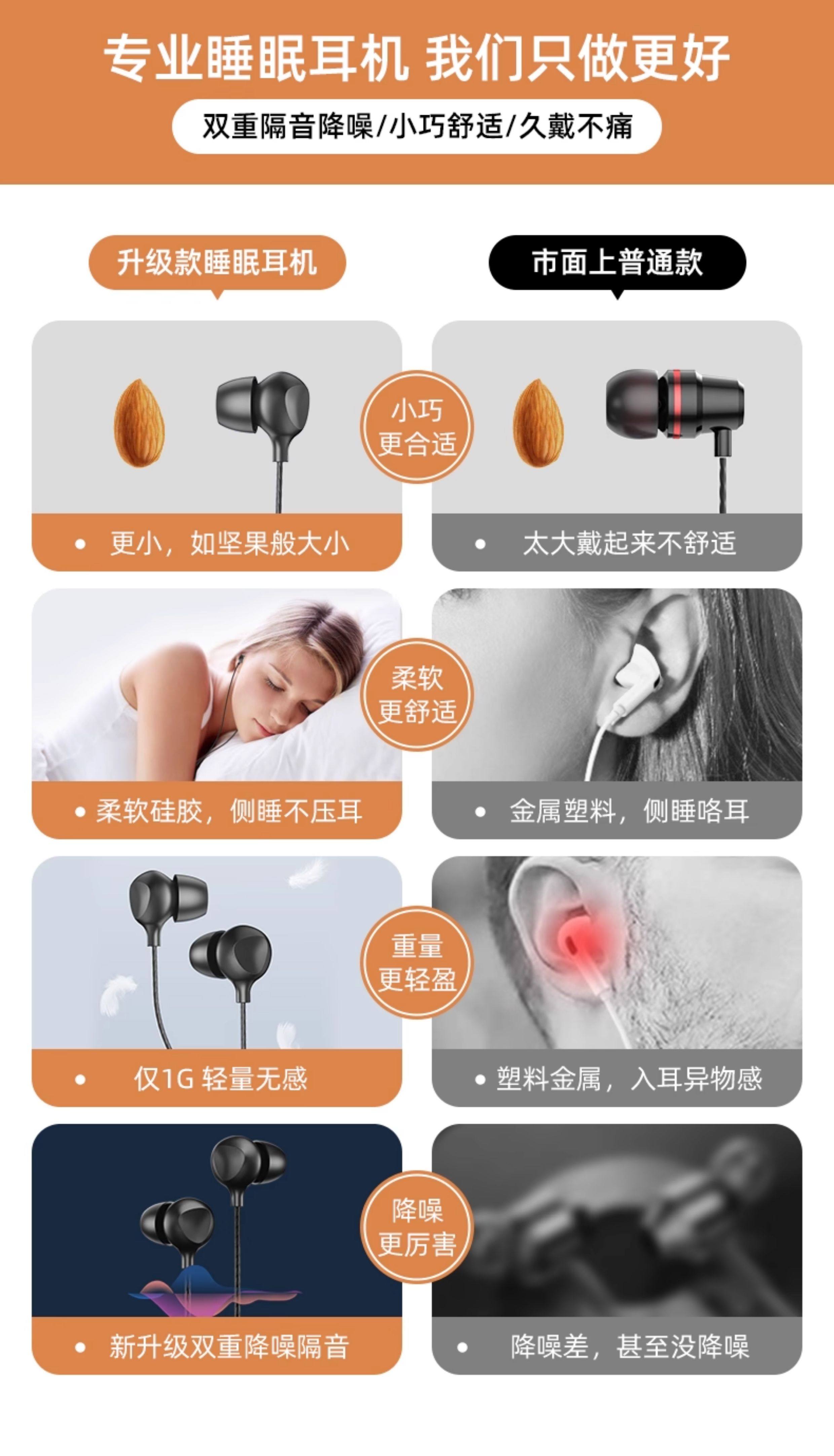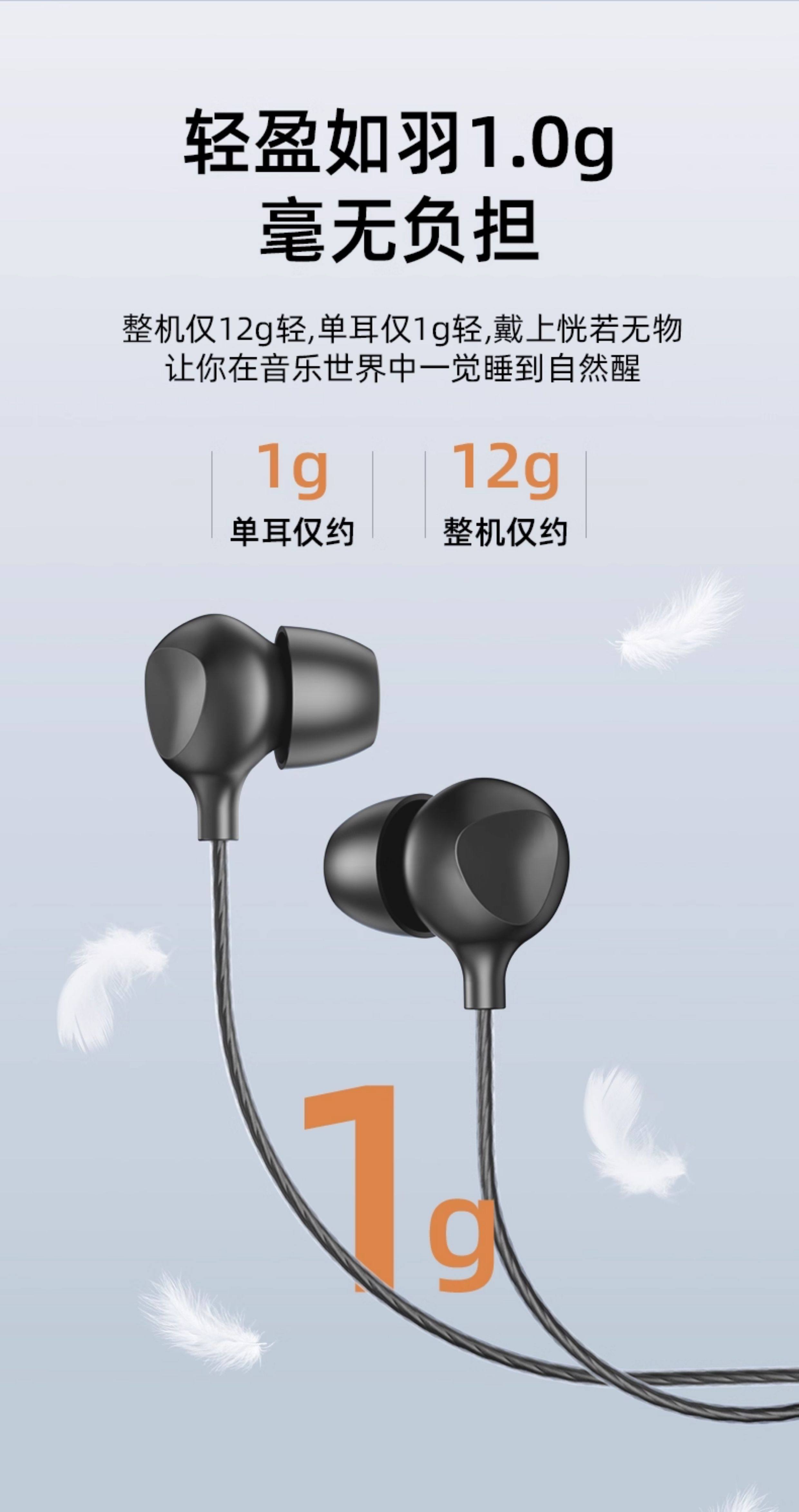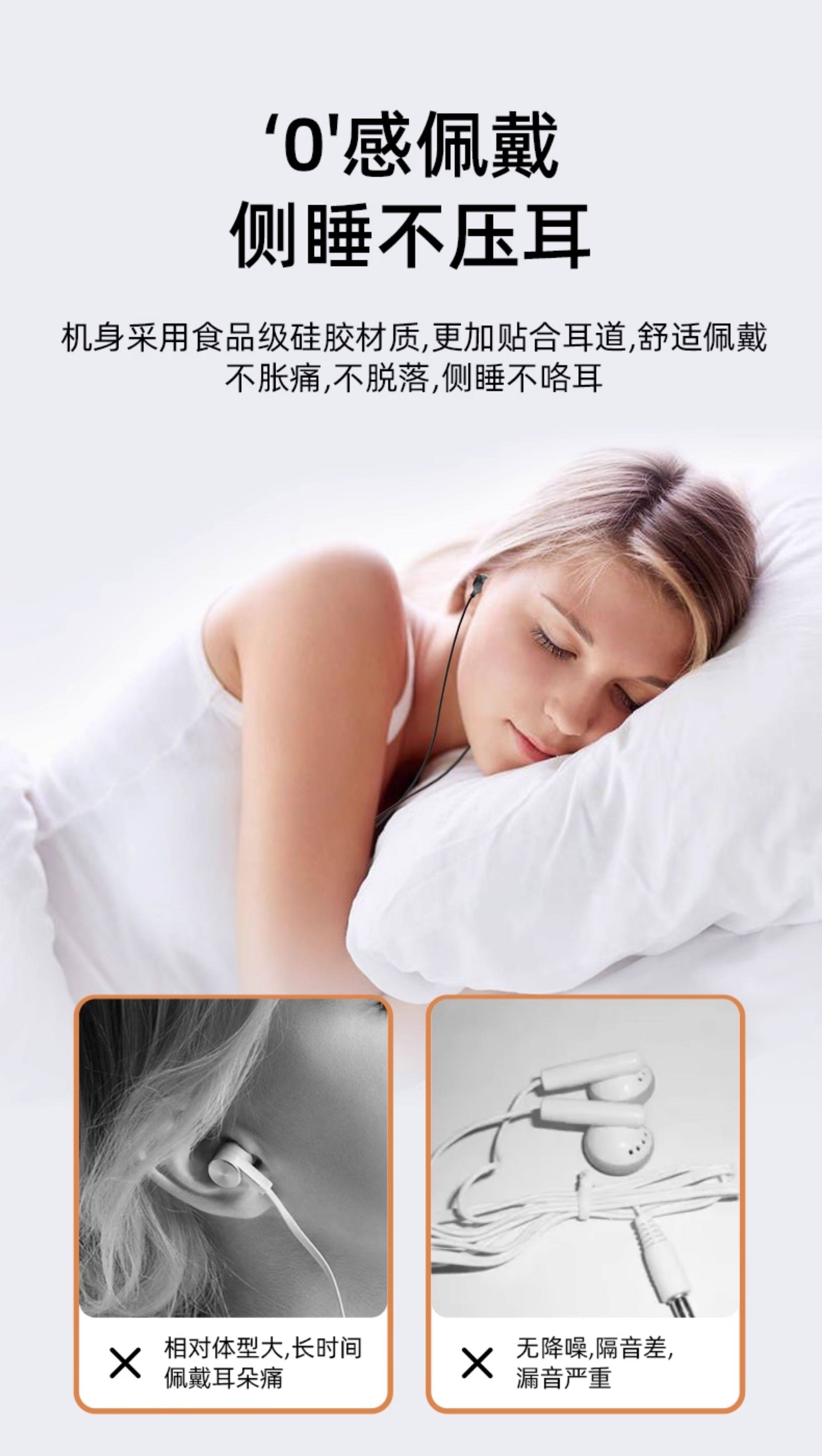 Asmr Sleep Headphones Are Wired, Specifically for Sleeping, In-Ear, Noise-Isolating, Non-Pressurizing, with a Type-C Interface for Mobile Phones