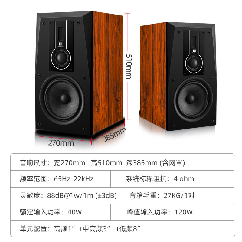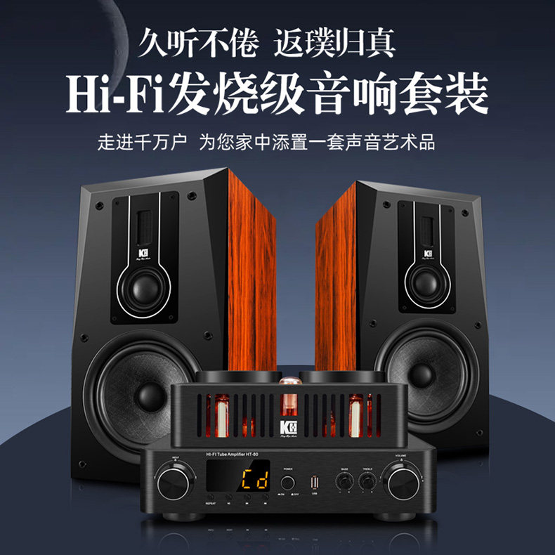 Kinghopea-8 Tube Amplifier Combo Audio System 8inch Three-Way Amplifier Audiophile-Grade Hifi Bookshelf Speaker Set