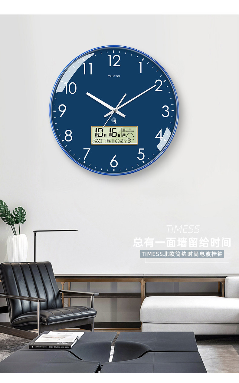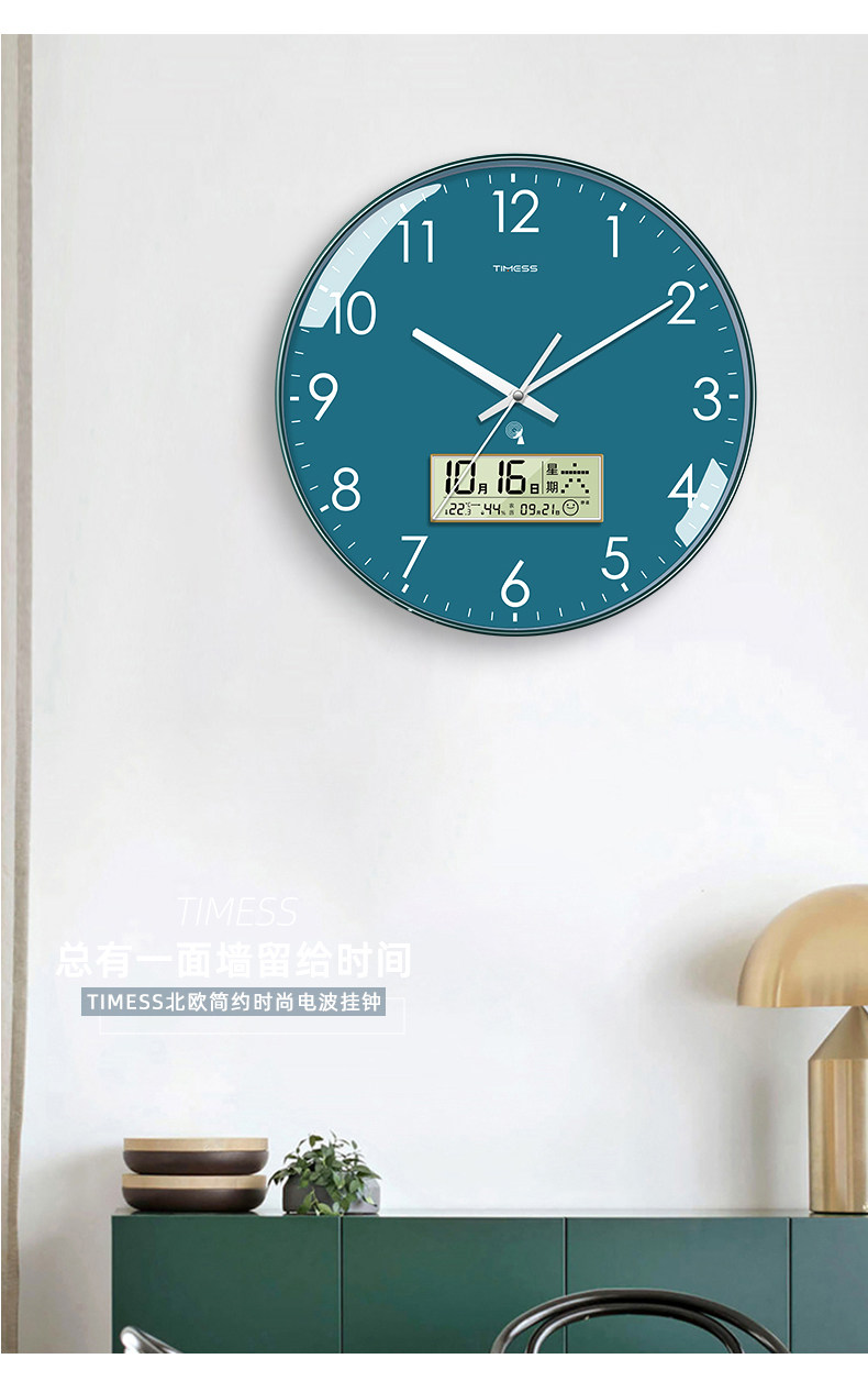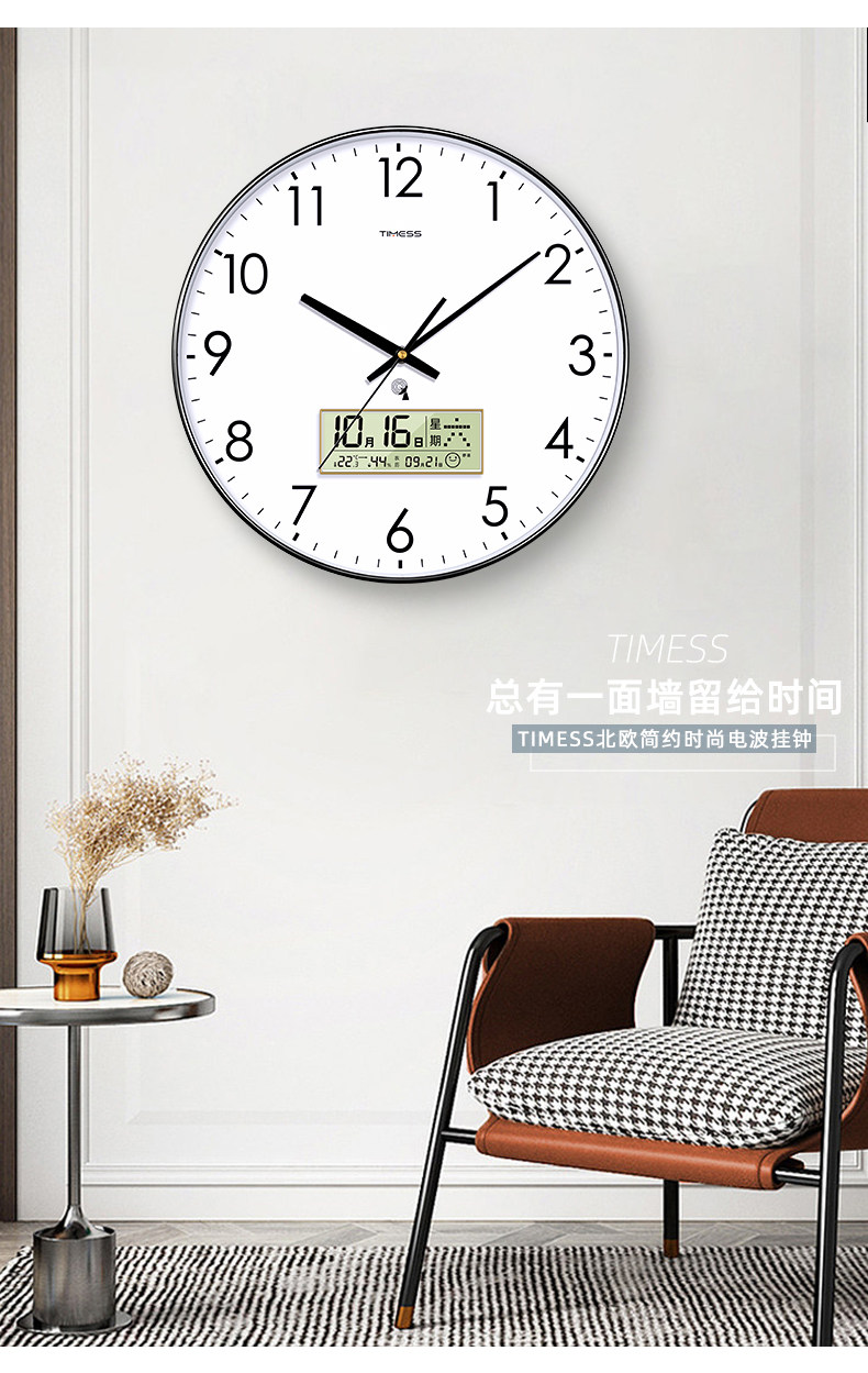Timess Automatic Time Setting Wall Clock Living Room Home Fashion 2025 New Model Silent Clock Calendar Radio-Controlled Clock