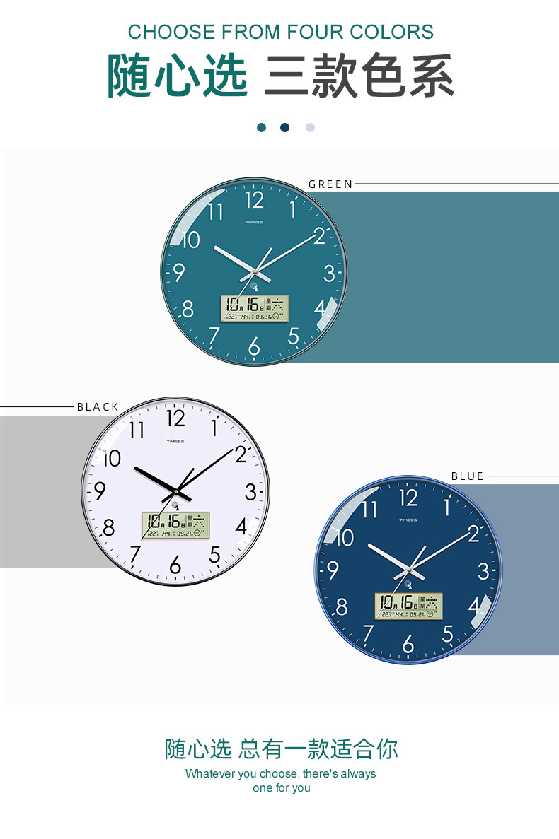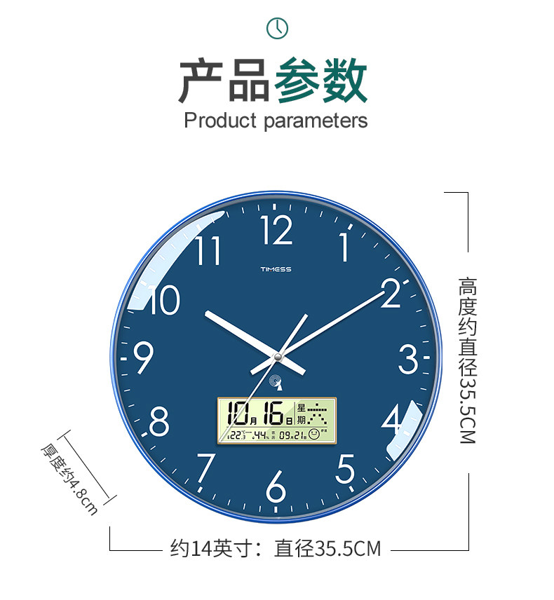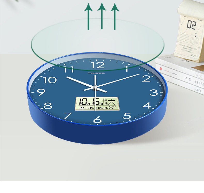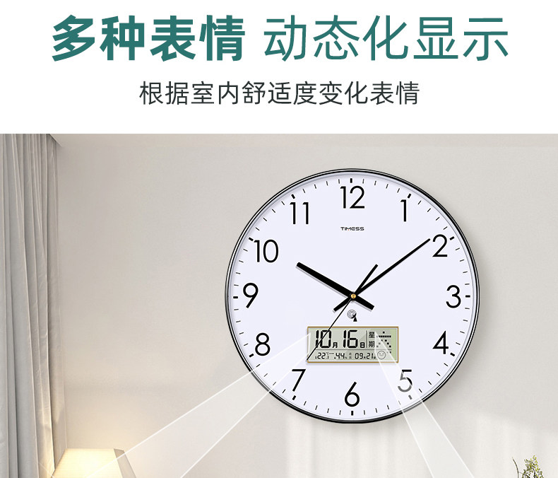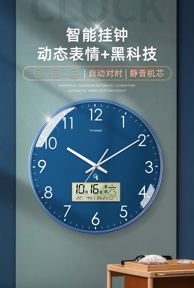Timess Automatic Time Setting Wall Clock Living Room Home Fashion 2025 New Model Silent Clock Calendar Radio-Controlled Clock
