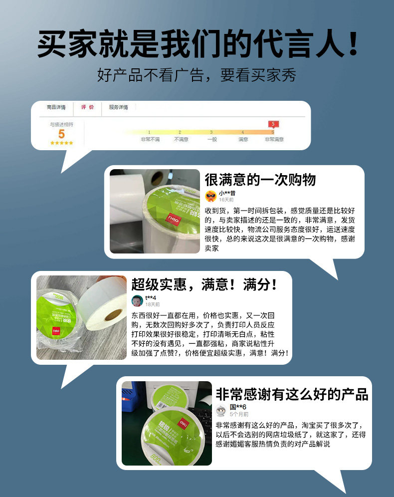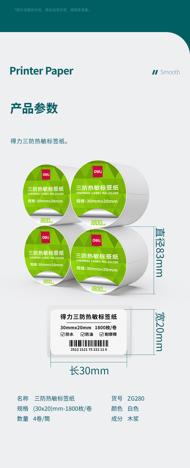 | Color Classification | ✅Deli Brand Direct Sales[Choose a Brand When Buying Three-Proof Products].,✅Selected to the List · Quality Assurance[Free Special Ticket].,Click Here to See the Label Paper Size|Specification Differences❗.,30*20mm (4 Rolls/Tube, 7200 Sheets in Total).,40*30mm (5 Rolls/Tube, 4000 Sheets in Total).,Vertical Version 40*60mm* (2 Rolls/Tube, 1280 Sheets in Total).,Vertical Version 40*80mm (2 Rolls/Tube, 960 Sheets in Total).,50*30mm (2 Rolls/Tube, 2500 Sheets in Total).,50*40mm (2 Rolls/Tube, 1900 Sheets in Total).,60*40mm (2 Rolls/Tube, 1600 Sheets in Total).,70*40mm (2 Rolls/Tube, 1900 Sheets in Total).,70*50mm.(2 Rolls/Tube, 1500 Sheets in Total).,80*40mm (1 Roll/Tube, 1180 Sheets in Total).,80*50mm (1 Roll/Tube, 960 Sheets in Total).,80*60mm (1 Roll/Tube, 800 Sheets in Total),80*80mm (1 Roll/Tube, 600 Sheets in Total),100*50mm (1 Roll/Tube, 960 Sheets in Total).,100*60mm (1 Roll/Tube, 800 Sheets in Total),100*70mm (1 Roll/Tube, 690 Sheets in Total).,100*80mm (1 Roll/Tube, 600 Sheets in Total),100*100mm (1 Roll/Tube, 500 Sheets in Total).,100*150mm (1 Roll/Tube, 325 Sheets in Total),100*100mm Not Easy to Fade[Aliexpress/E-Mail/Amazon/Shopee/Temu Shipping Label](1 Roll/Tube, 500 Sheets in Total).,100*150mm Not Easy to Fade[Aliexpress/Epacket/Amazon/ ]Worry-Free Logistics Recommendation (1 Roll/Tube, 325 Sheets in Total).,50*30mm Not Easy to Fade[Amazon Product Regular Barcode Label](2 Rolls/Tube, 2500 Sheets in Total).,70*20mm Not Easy to Fade[Aliexpress/E-Mail/Amazon/Shopee/Temu Shipping Label](1 Roll/Tube, 1800 Sheets in Total).,Buy a Full Case for Even Better Savings!.,[Full Box of 96 Rolls]30*20mm*1800 Sheets.,[Full Box of 72 Rolls]40*60mm*640 Sheets.,[Full Box of 72 Rolls]40*80mm*480 Sheets.,[Full Box of 48 Rolls]50*30mm*1250 Sheets.,[Full Box of 48 Rolls]50*40mm*950 Sheets.,[Full Box of 48 Rolls]60*40mm*800 Sheets.,[Full Box of 36 Rolls]70*40mm*950 Sheets.,[Full Box of 36 Rolls]70*50mm*750 Sheets.,[Full Box of 36 Rolls]80*40mm*1180 Sheets.,[Full Box of 36 Rolls]80*50mm*960 Sheets.,[Full Box of 36 Rolls]80*60mm*800 Sheets.,[Full Box of 36 Rolls]80*80mm*600 Sheets.,[Full Box of 24 Rolls]100*50mm*960 Sheets.,[Full Box of 24 Rolls]100*60mm*800 Sheets.,[Full Box of 24 Rolls]100*70mm*690 Sheets.,[Full Box of 24 Rolls]100*80mm*600 Sheets.,[Full Box of 24 Rolls]100*100mm*500 Sheets.,[Full Box of 24 Rolls]100*150mm*325 Sheets.,[100 Rolls in a Box]40*30mm*800 Sheets.,[Full Box of 48 Rolls]70*20mm*1800 Sheets.,Can Be Customized.,Priority Delivery.,Free Invoicing,⬇⬇⬇⬇⬇The Following Models Are Five-Proof Label Paper Waterproof, Oil-Proof, Tear-Proof, Scratch-Resistant and Low-Temperature Resistant⬇⬇⬇⬇⬇,Five Defenses[30*20mm]2 Rolls of 3600 Pieces Zg600,Five Defenses[40*30mm]1 Roll of 800 Pieces Zg601,Five Defenses[40*60mm]1 Roll of 640 Pieces Zg602,Five Defenses[50*30mm]1 Roll of 1250 Pieces Zg604,Five Defenses[60*40mm]1 Roll of 800 Pieces Zg606,Five Defenses[70*50mm]1 Roll of 750 Pieces Zg609,Five Defenses[80*50mm]1 Roll of 960 Pieces Zg611,Five Defenses[80*60mm]1 Roll of 800 Pieces Zg612,Five Defenses[80*80mm]1 Roll of 600 Pieces Zg613,Five Defenses[100*80mm]1 Roll of 600 Pieces Zg617,Five Defenses[100*100mm]1 Roll of 500 Pieces Zg618,Five Defenses[100*150mm]1 Roll of 325 Pieces Zg619,⬇⬇⬇⬇⬇The Following Models Are Five-Proof Full Box Specifications⬇⬇⬇⬇⬇,[Full Box]30*20mm[72 Rolls/Box] ZG600,[Full Box]40*30mm[72 Rolls/Box]ZG601,[Full Box]40*60mm[72 Rolls/Box]ZG602,[Full Box]50*30mm[48 Rolls/Box]ZG604,[Full Box]60*40mm[48 Rolls/Box] ZG606,[Full Box]70*50mm[36 Rolls/Box]ZG609,[Full Box]80*50mm[36 Rolls/Box]ZG611,[Full Box]80*60mm[36 Rolls/Box]ZG612,[Full Box]80*80mm[36 Rolls/Box]ZG613,[Full Box]100*80mm[24 Rolls/Box]ZG617,[Full Box]100*100mm[24 Rolls/Box]ZG618,[Full Box]100*150mm[24 Rolls/Box]ZG619,⬇⬇⬇⬇⬇The Following Is a Colorful Three-Proof Label Paper⬇⬇⬇⬇⬇,Pink[40*30mm] 2 Rolls of 1600 Pieces Zg500,Vertical Version Pink[40*60mm]1 Roll of 640 Sheets Zg501,Pink[50*30mm]1 Roll 1250 Pieces Zg502,Horizontal Version Pink[60*40mm]1 Roll of 800 Pieces Zg503,Pink[70*50mm]1 Roll of 750 Pieces Zg504,Yellow[40*30mm]2 Rolls of 1600 Pieces Zg500,Vertical Version Yellow[40*60mm]1 Roll of 640 Pieces Zg501,Yellow[50*30mm]1 Roll of 1250 Pieces Zg502,Horizontal Version Yellow[60*40mm]1 Roll of 800 Pieces Zg503,Yellow[70*50mm]1 Roll of 750 Pieces Zg504,Blue[40*30mm]2 Rolls of 1600 Pieces Zg500,Vertical Version Blue[40*60mm]1 Roll of 640 Pieces Zg501,Blue[50*30mm]1 Roll of 1250 Pieces Zg502,Horizontal Version Blue[60*40mm]1 Roll of 800 Pieces Zg503,Blue[70*50mm]1 Roll of 750 Pieces Zg504,Green[40*30mm]2 Rolls of 1600 Pieces Zg500..,Vertical Version Green[40*60mm]1 Roll of 640 Pieces Zg501..,Green[50*30mm]1 Roll 1250 Pieces Zg502..,Horizontal Version Green[60*40mm]1 Roll of 800 Pieces Zg503..,Green[70*50mm]1 Roll of 750 Pieces Zg504..,↓↓↓The Following Are the Three-Proof Colorful Full Box Grids, Suitable for Multiple Industries, with Clear Printing and No Damage to the Machine↓↓↓...,[Pink Full Box of 48 Rolls]40*30mm|zg500,[Pink Full Box of 48 Rolls]40*60mm|zg501,[Pink Full Box of 48 Rolls]50*30mm|zg502,[Pink Full Box of 36 Rolls]60*40mm|zg503,[Pink Full Box of 36 Rolls]70*50mm|zg504,[Yellow Full Box of 48 Rolls]40*30mm|zg500,[Yellow Full Box of 48 Rolls]40*60mm|zg501,[Yellow Full Box of 48 Rolls]50*30mm|zg502,[Yellow Full Box of 36 Rolls]60*40mm|zg503,[Yellow Full Box of 36 Rolls]70*50mm|zg504,[Blue Full Box of 48 Rolls]40*30mm|zg500,[Blue Full Box of 48 Rolls]40*60mm|zg501,[Blue Full Box of 48 Rolls]50*30mm|zg502,[Blue Full Box of 36 Rolls]60*40mm|zg503,[Blue Full Box of 36 Rolls]70*50mm|zg504,[Green Full Box of 48 Rolls]40*30mm|zg500,[Green Full Box of 48 Rolls]40*60mm|zg501,[Green Full Box of 48 Rolls]50*30mm|zg502,[Green Full Box of 36 Rolls]60*40mm|zg503,[Green Full Box of 36 Rolls]70*50mm|zg504 |