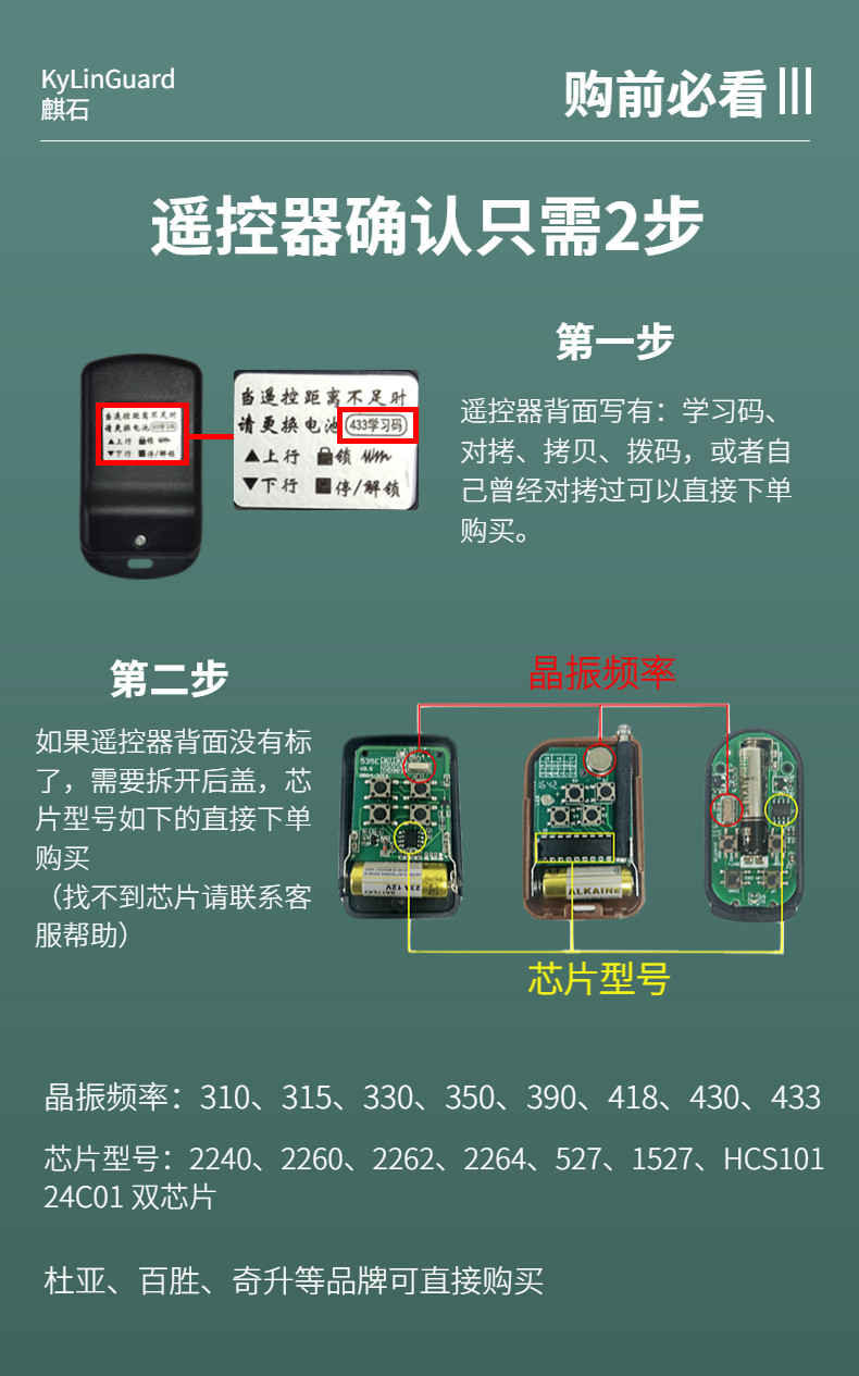 All-In-One Multi-Frequency Copy Remote Control for Electric Rolling Shutter Doors, Retractable Doors, Rolling Gates, Electric Garage Doors, 433Mhz Cloning