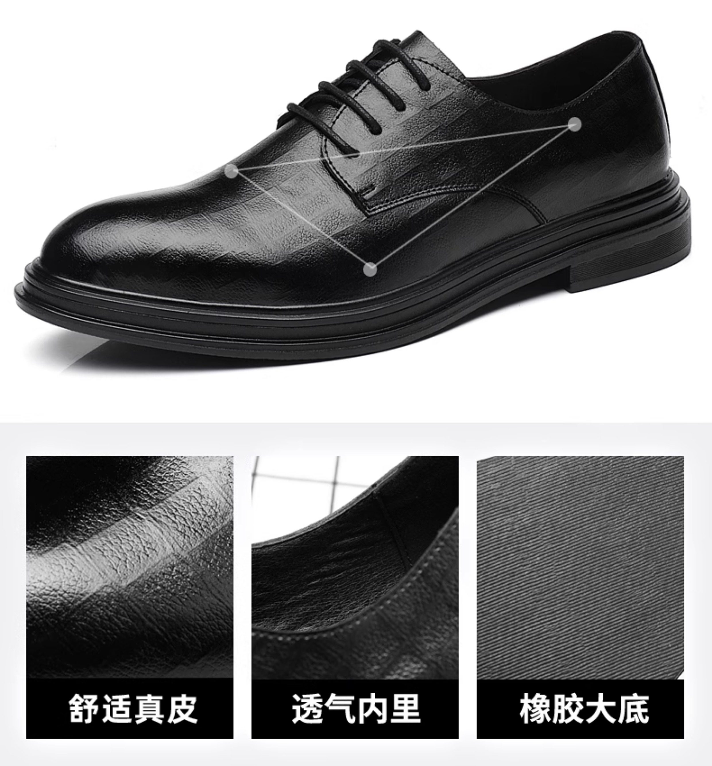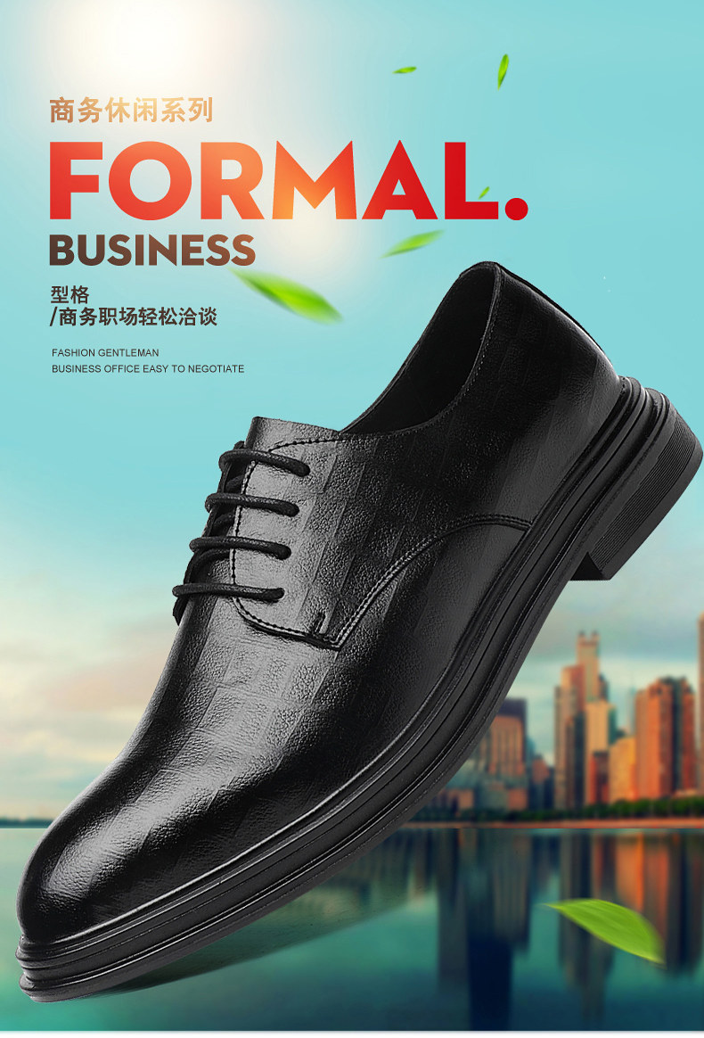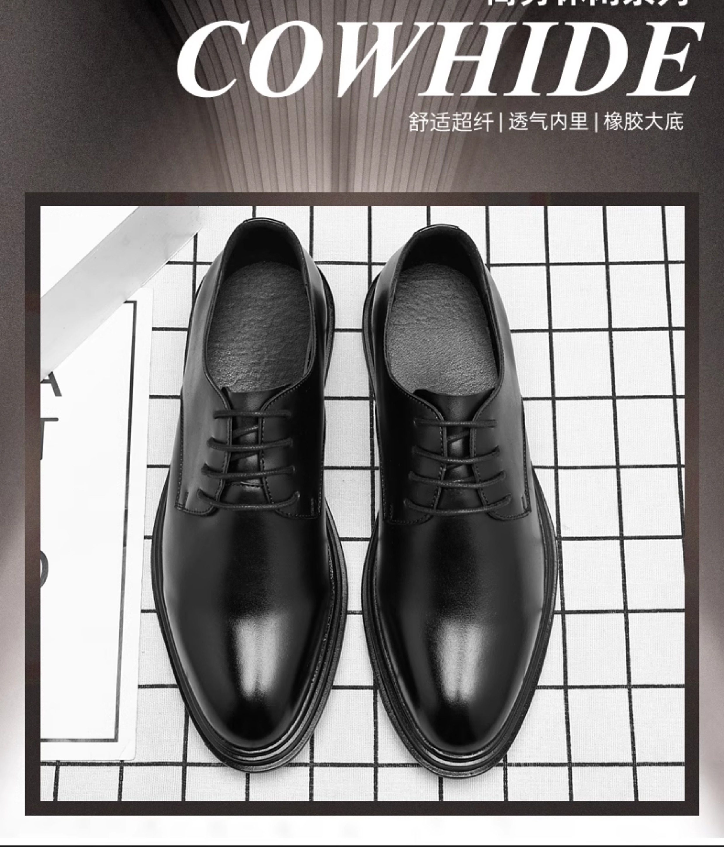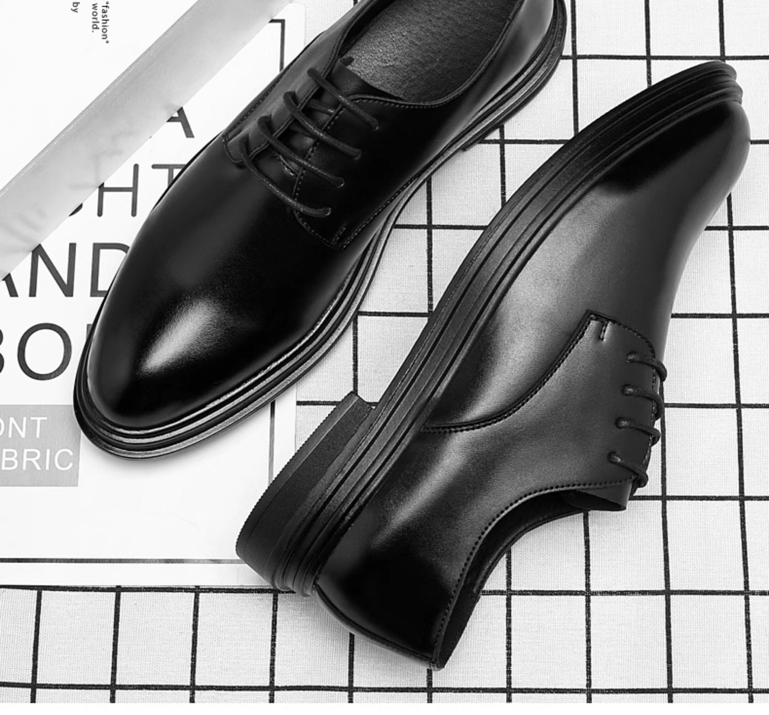 Autumn High-End Black Leather Shoes for Men, Genuine Leather Business Formal Wear, Soft-Soled British Thick-Soled Groomsmen Casual Suit Men's Shoes