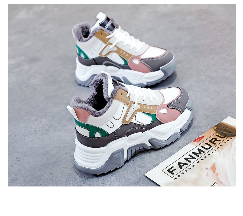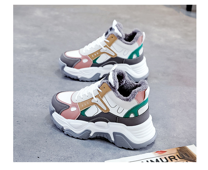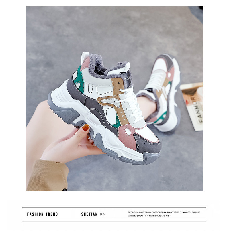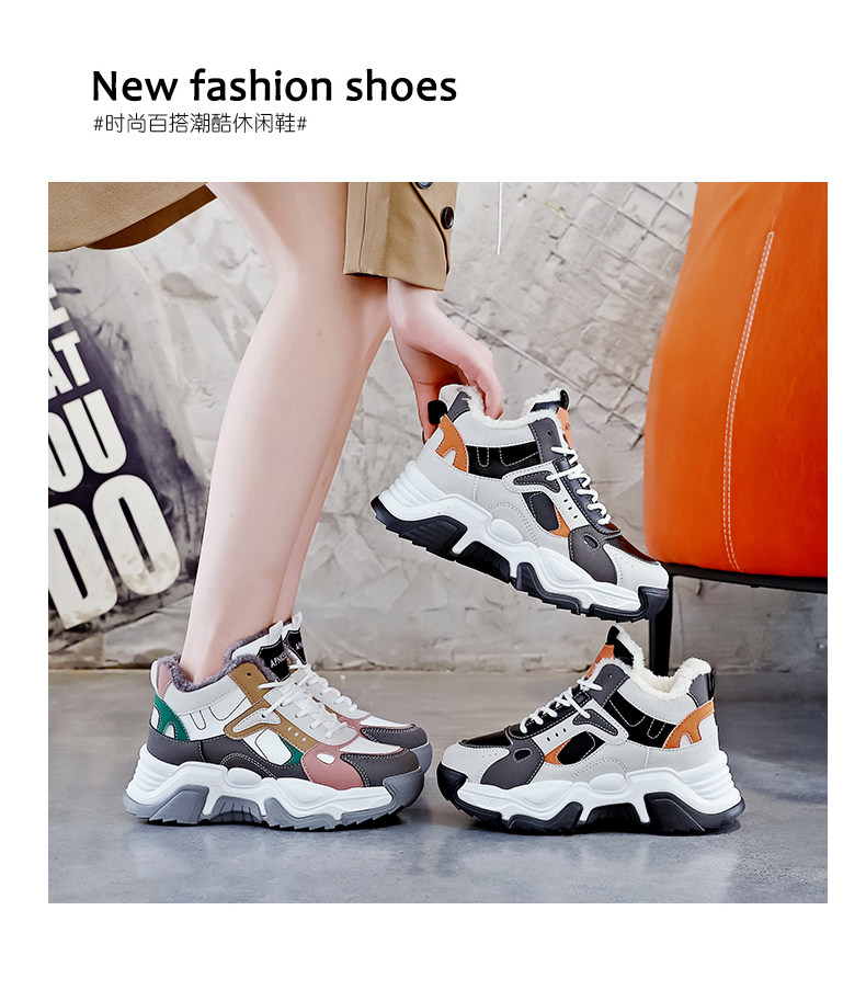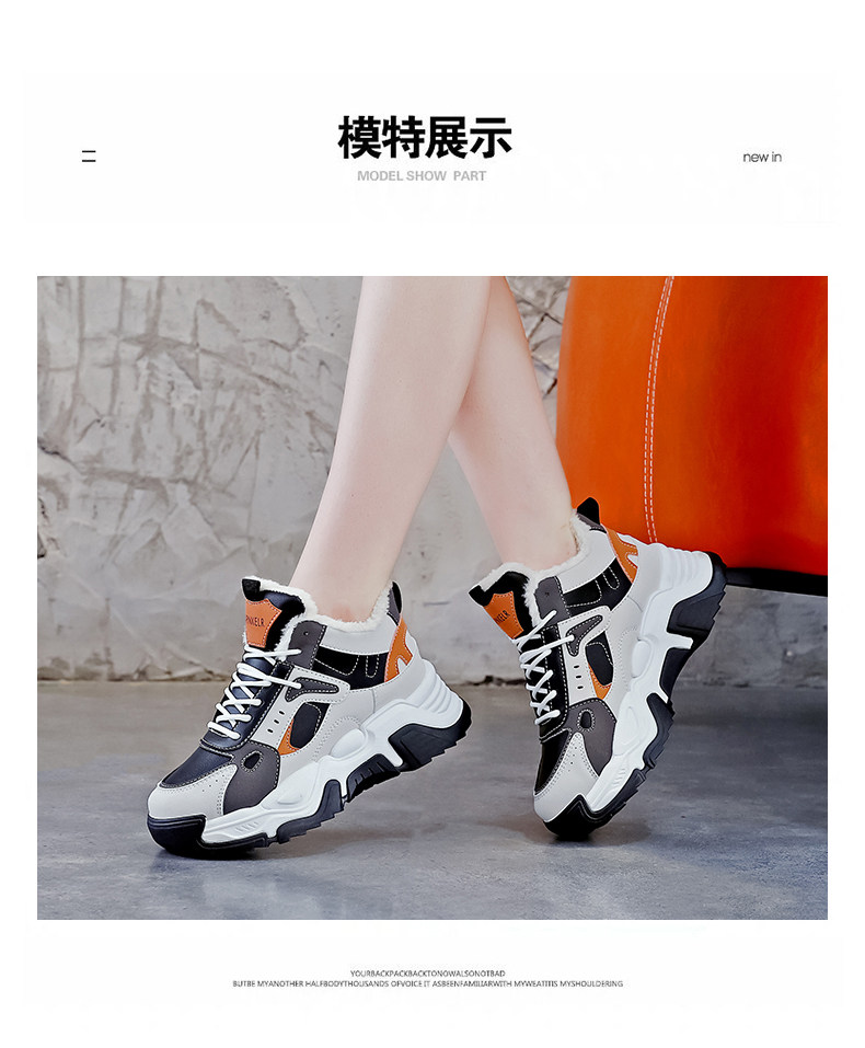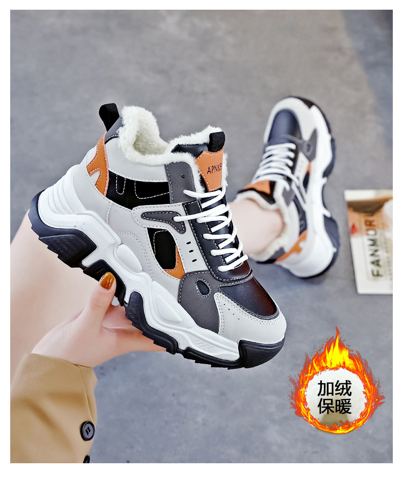 2025 New Winter ins Hot-Selling Versatile Fleece-Lined Dad Shoes High-Top Cotton Shoes Warm Women's Shoes Casual Sneakers