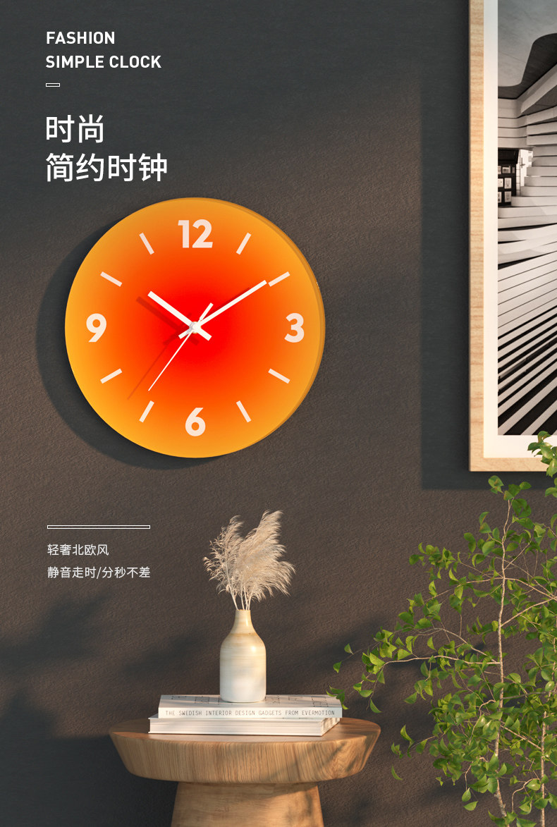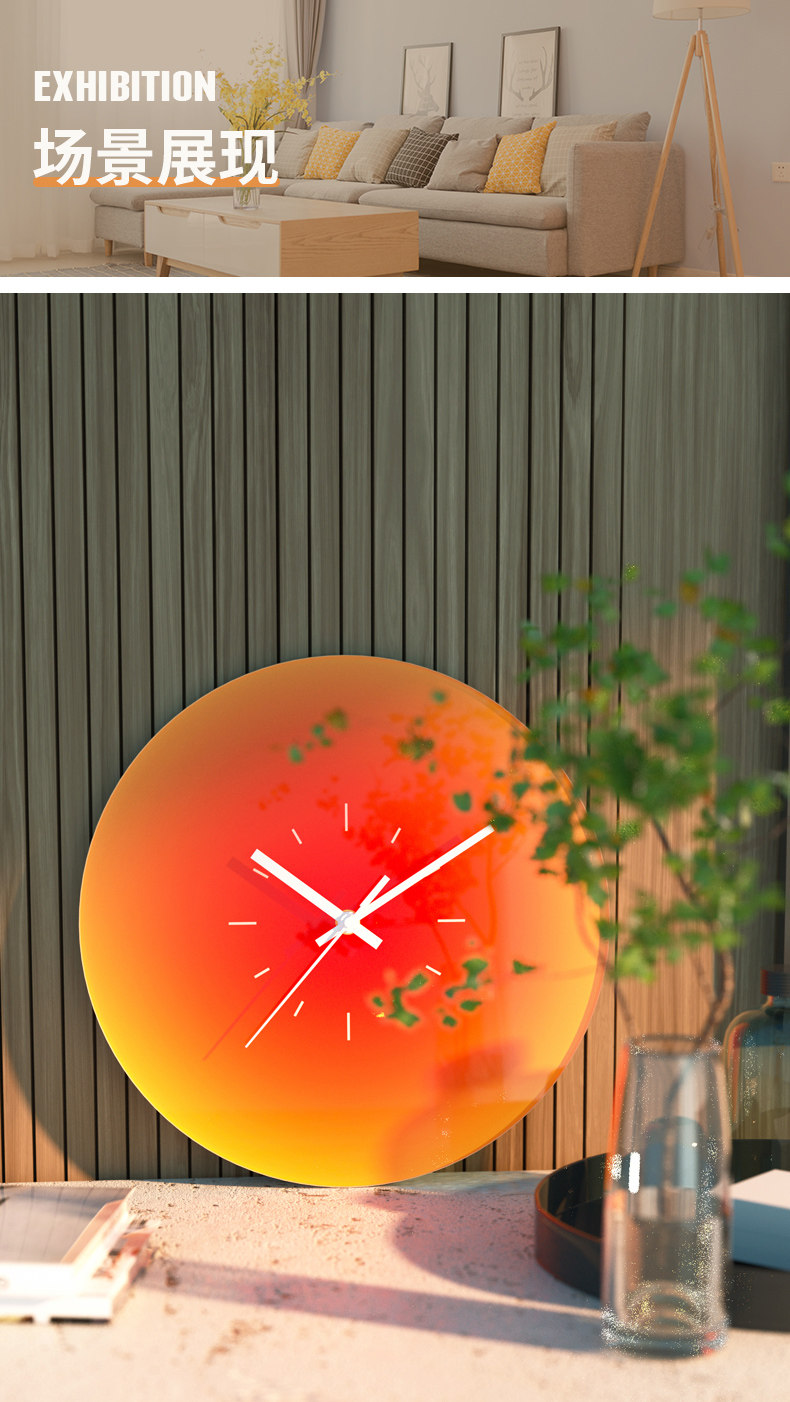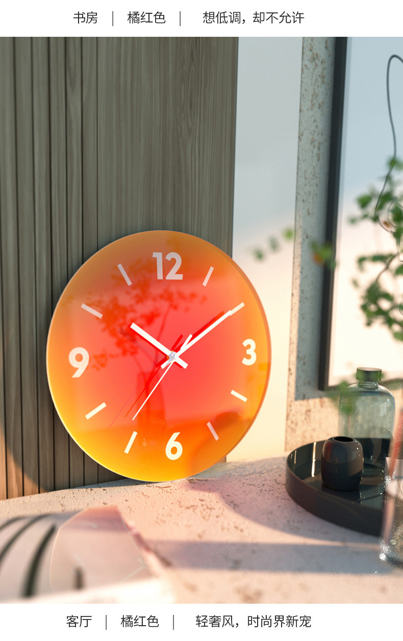 Internet-Famous Wall Clock, Living Room Clock, Creative and Stylish Clock, Home Art Silent Glass Clock, Sunset Simple Quartz Clock