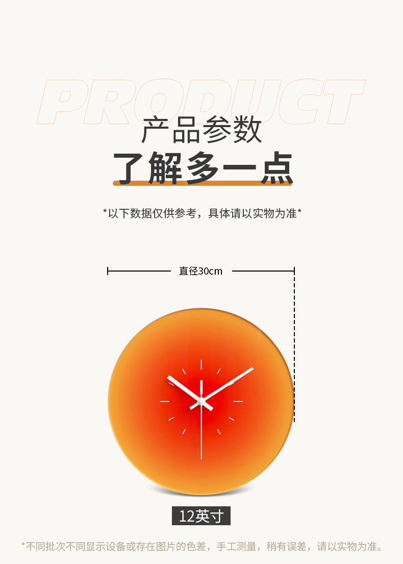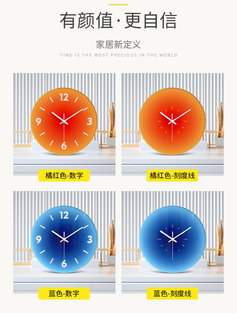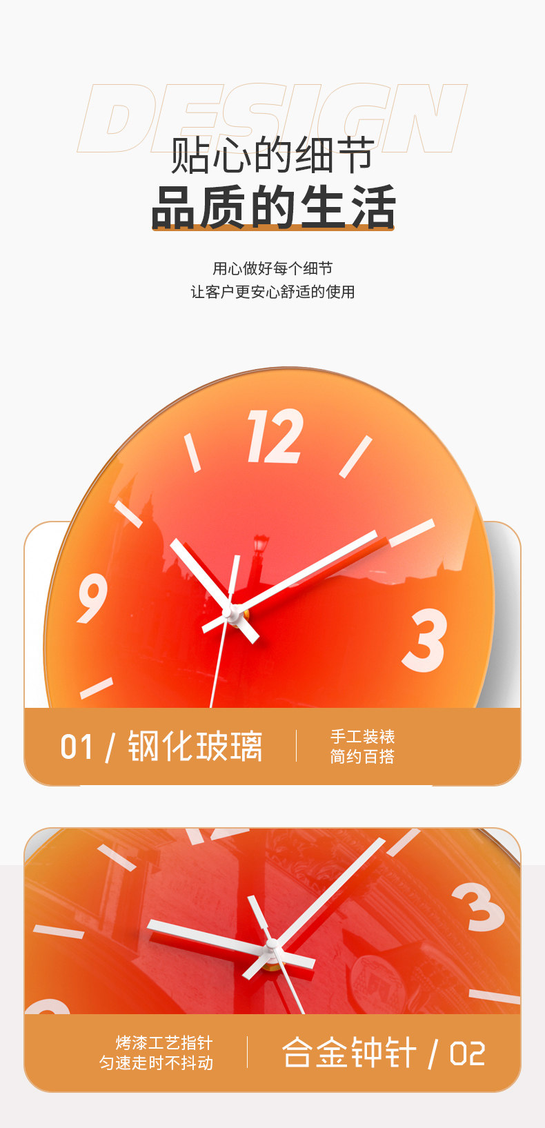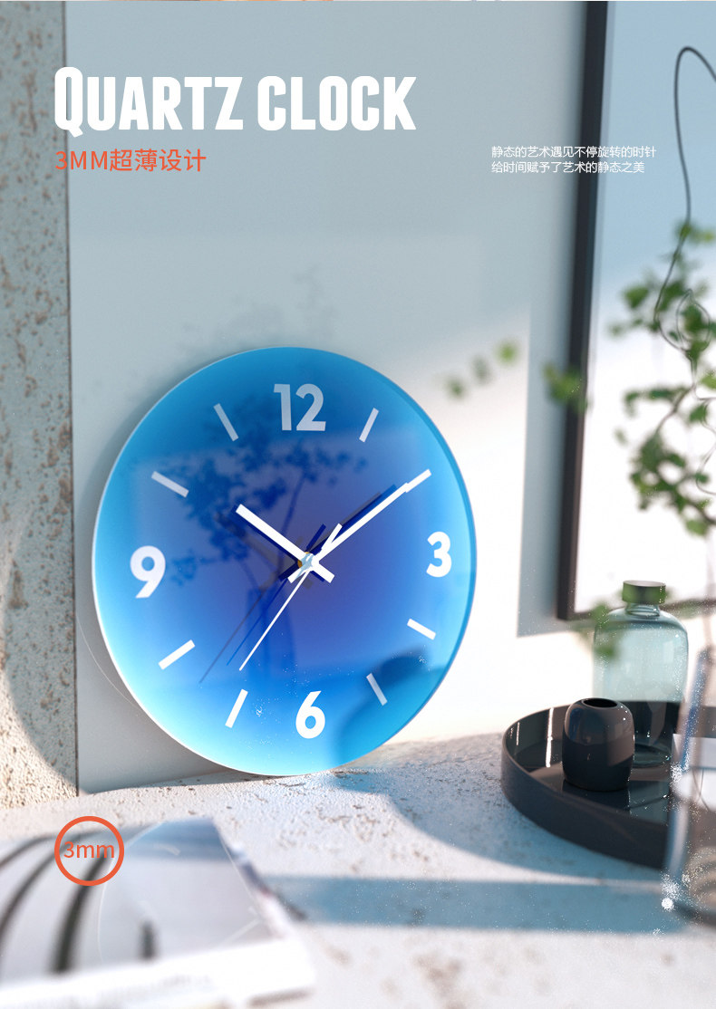 Internet-Famous Wall Clock, Living Room Clock, Creative and Stylish Clock, Home Art Silent Glass Clock, Sunset Simple Quartz Clock