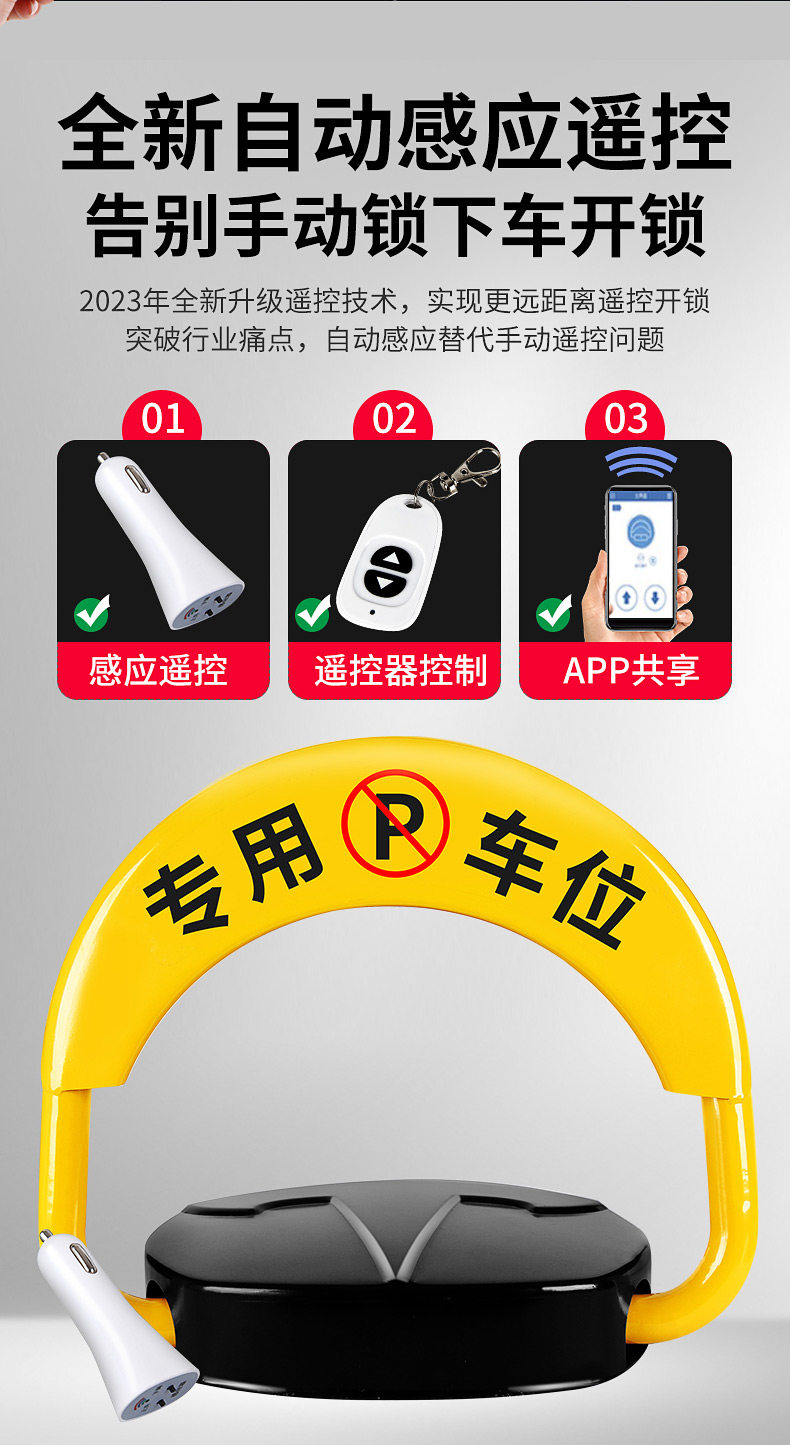 Smart Induction Remote Control Thickened Parking Space Lock, Parking Space Garage Ground Stake, Car No-Drill Occupation Lock