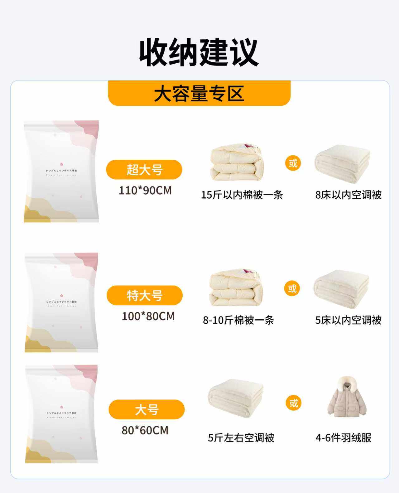 | Number of Quilts and Pounds That Can Be Packed | Extra Large Size Can Hold 4-6kg Quilt |