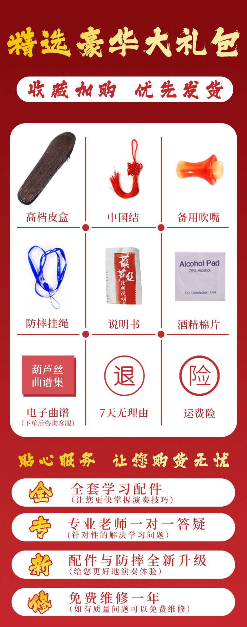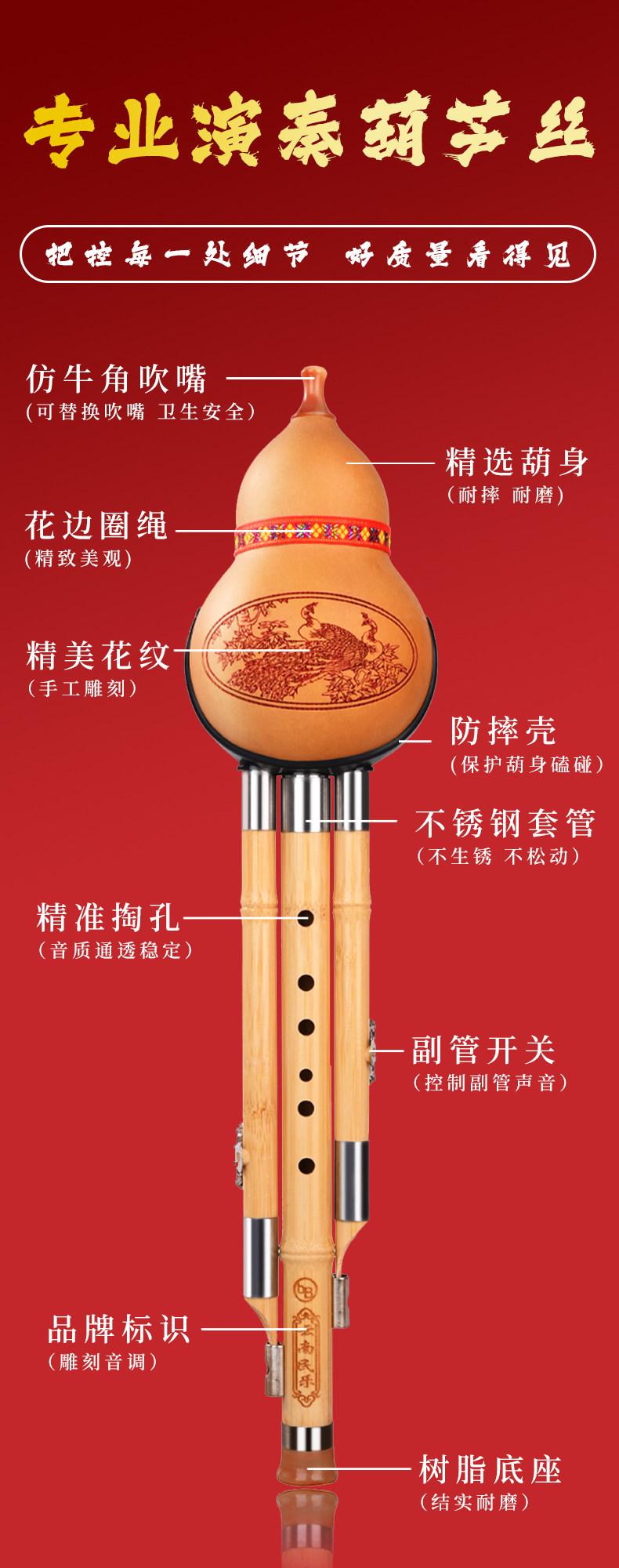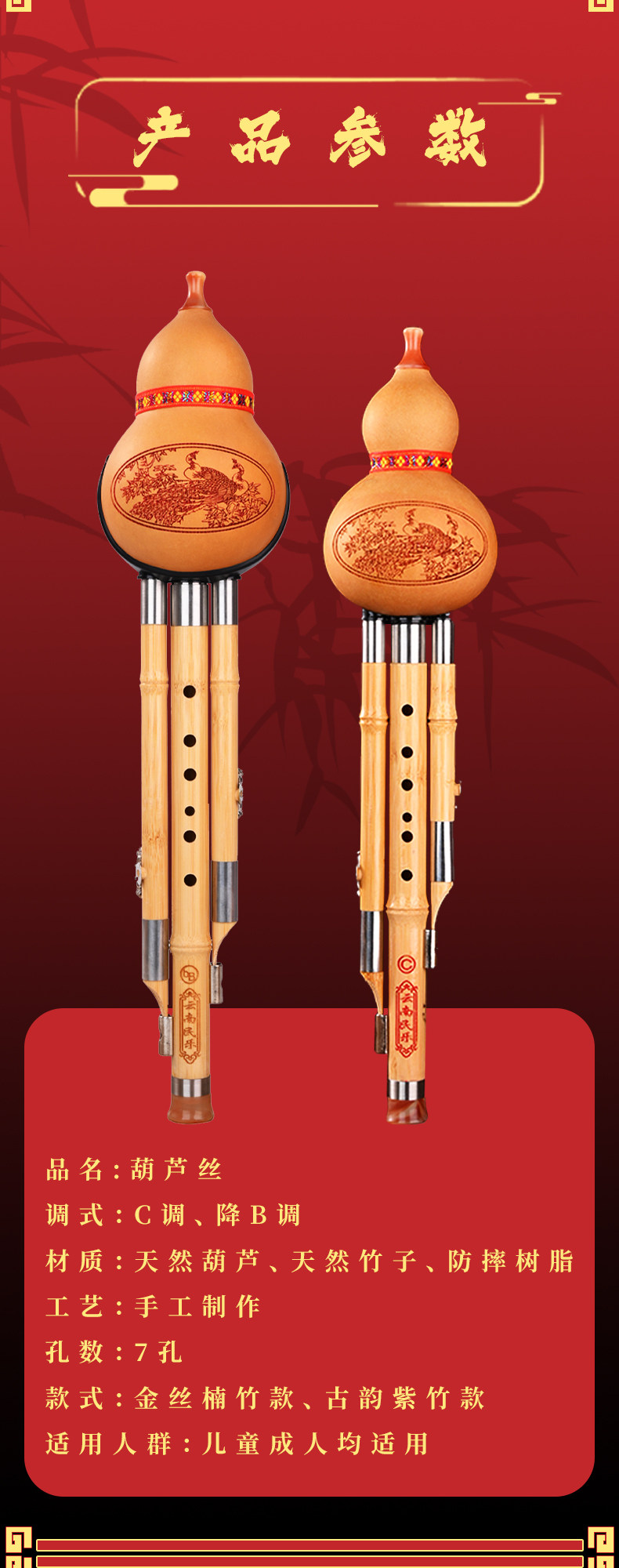 Hulusi Musical Instruments Official Flagship Store Seven-Hole Purple Bamboo Hulusi C Key Primary School Students Special Adult Beginner B Adjustment