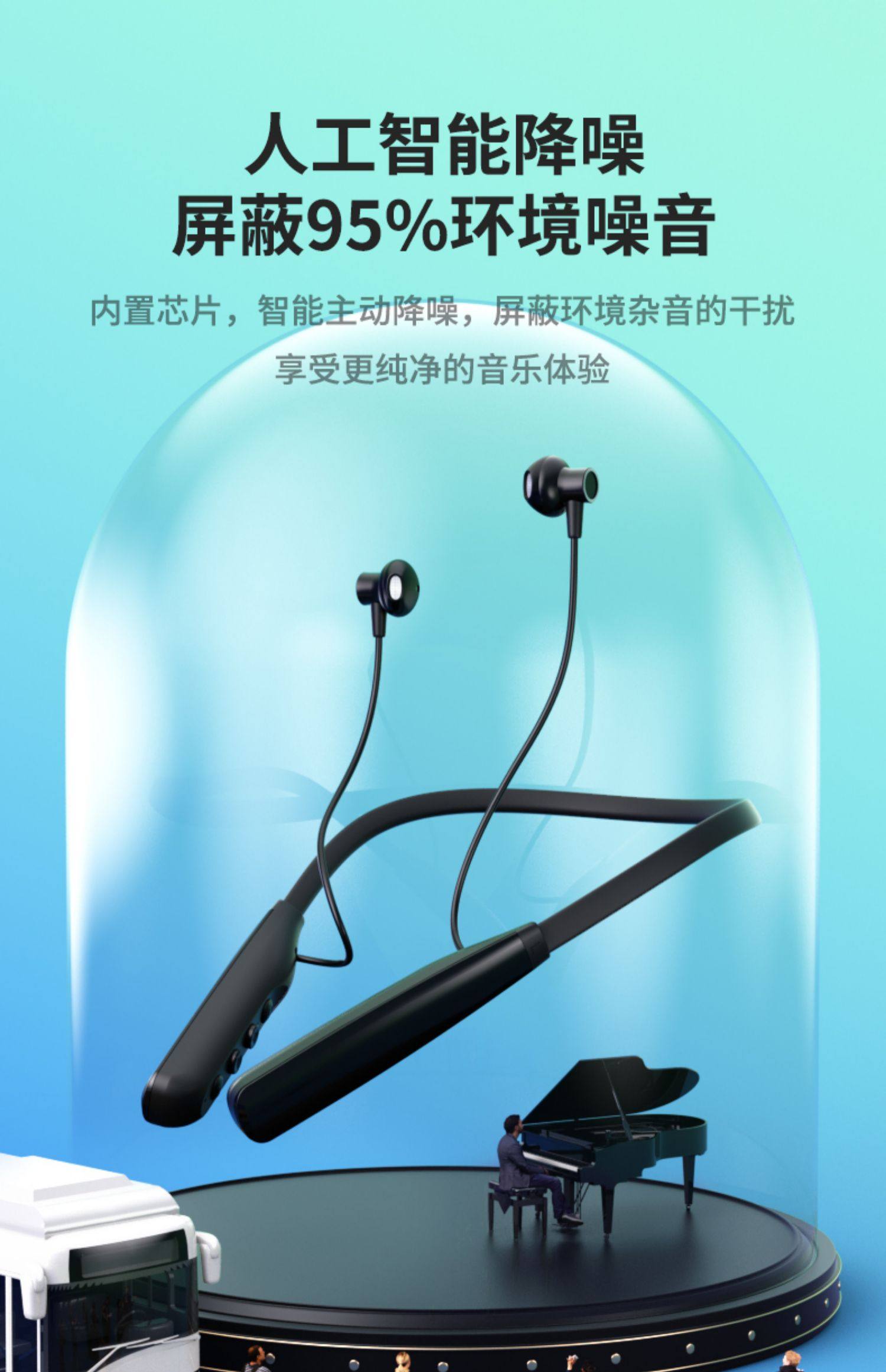 Bluetooth Headset, Wireless In-Ear, Neck-Hanging, Noise-Cancelling, Running, Sports, Ultra-Long Battery Life, Standby, 2026 New Model