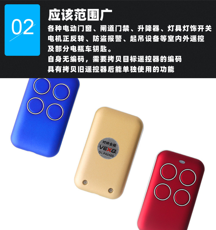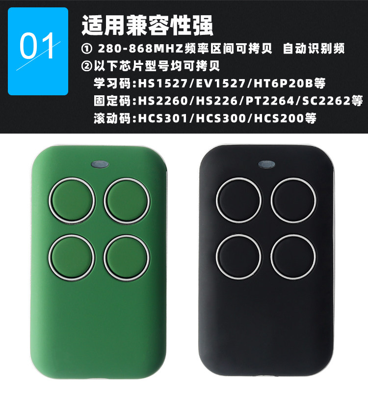 Multi-Frequency Waterproof Copy Remote Control for Electric Gates, Garage Gates, and Access Control, Compatible with Rolling Code