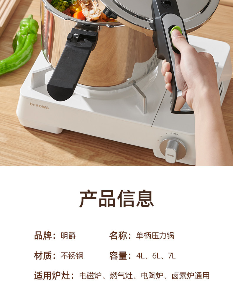 British Mingjue 304 Stainless Steel Pressure Cooker for Home Use, Compatible with Gas and Induction Cookers, Large Capacity, Explosion-Proof