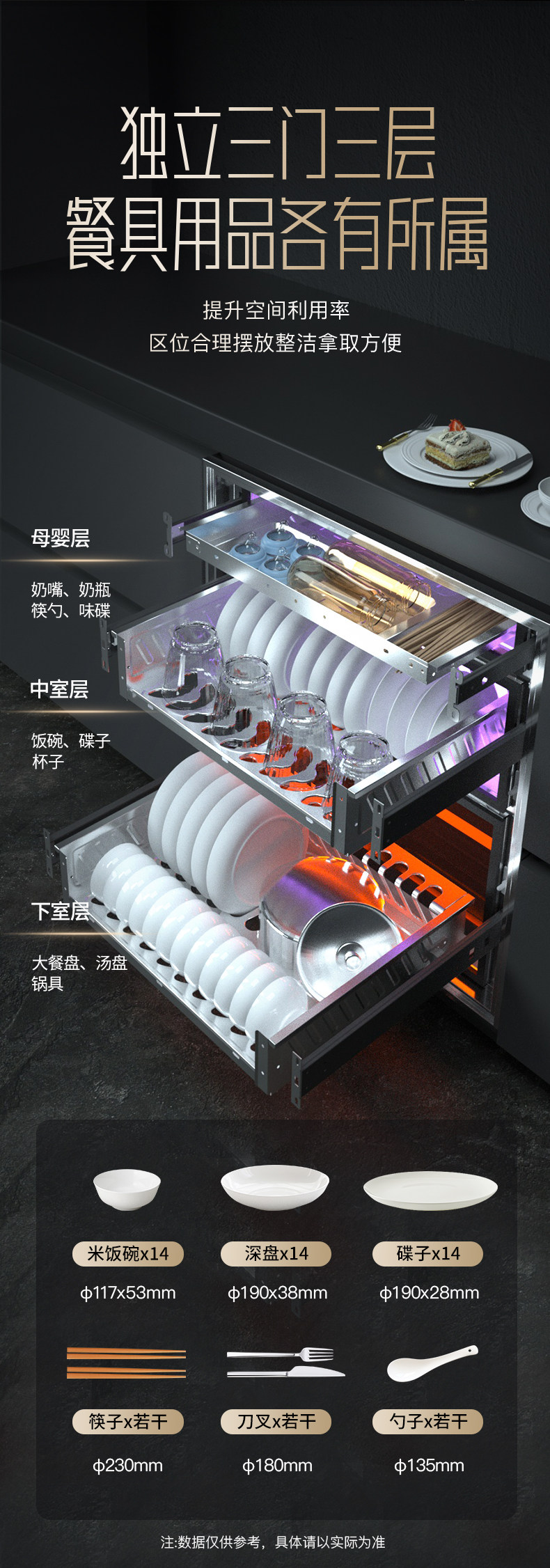 [Upgraded 304-Layer Rack] Rongsheng Disinfection Cabinet Built-In Household Large Capacity Kitchen Disinfection Cupboard Rx06A