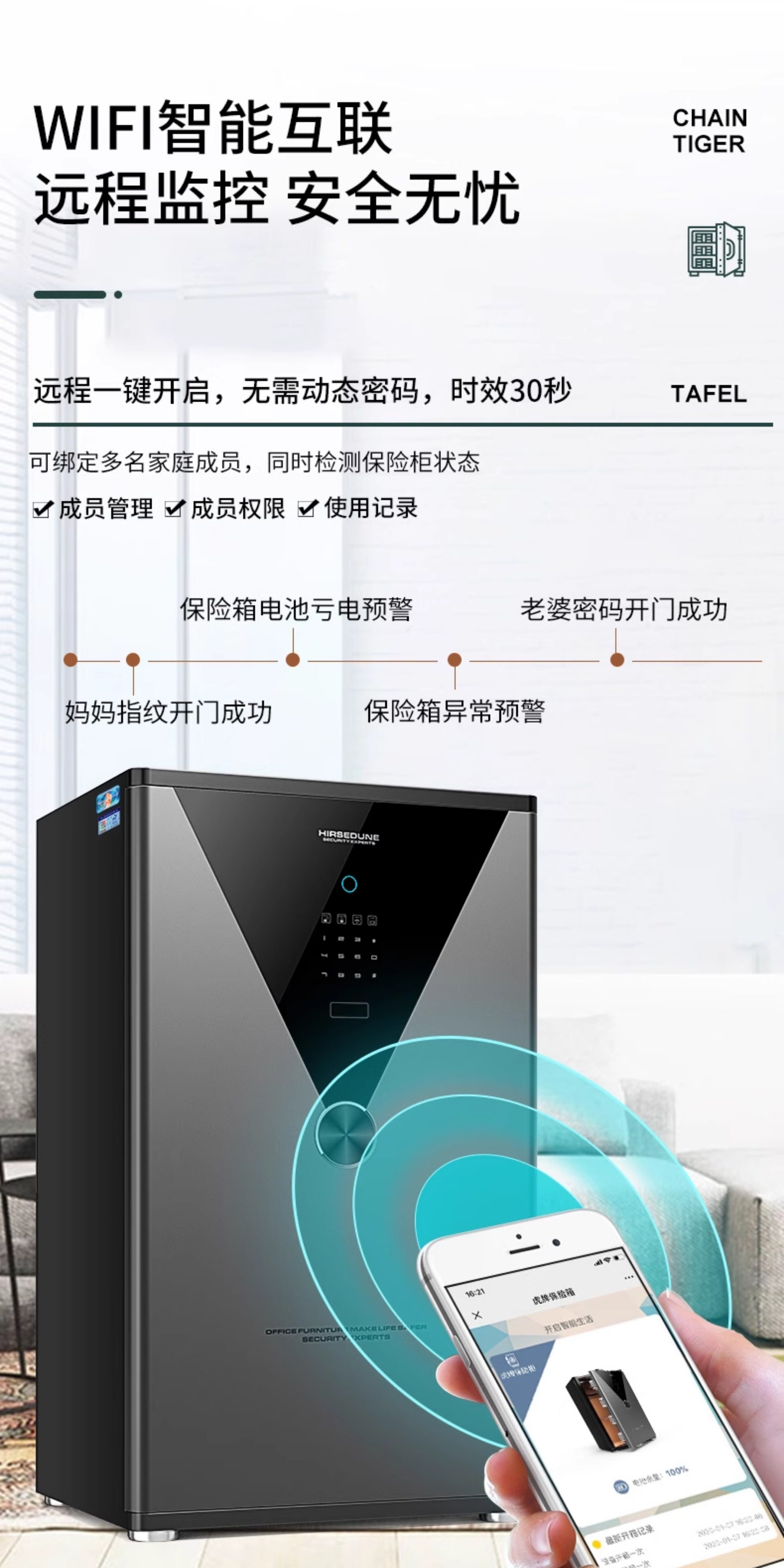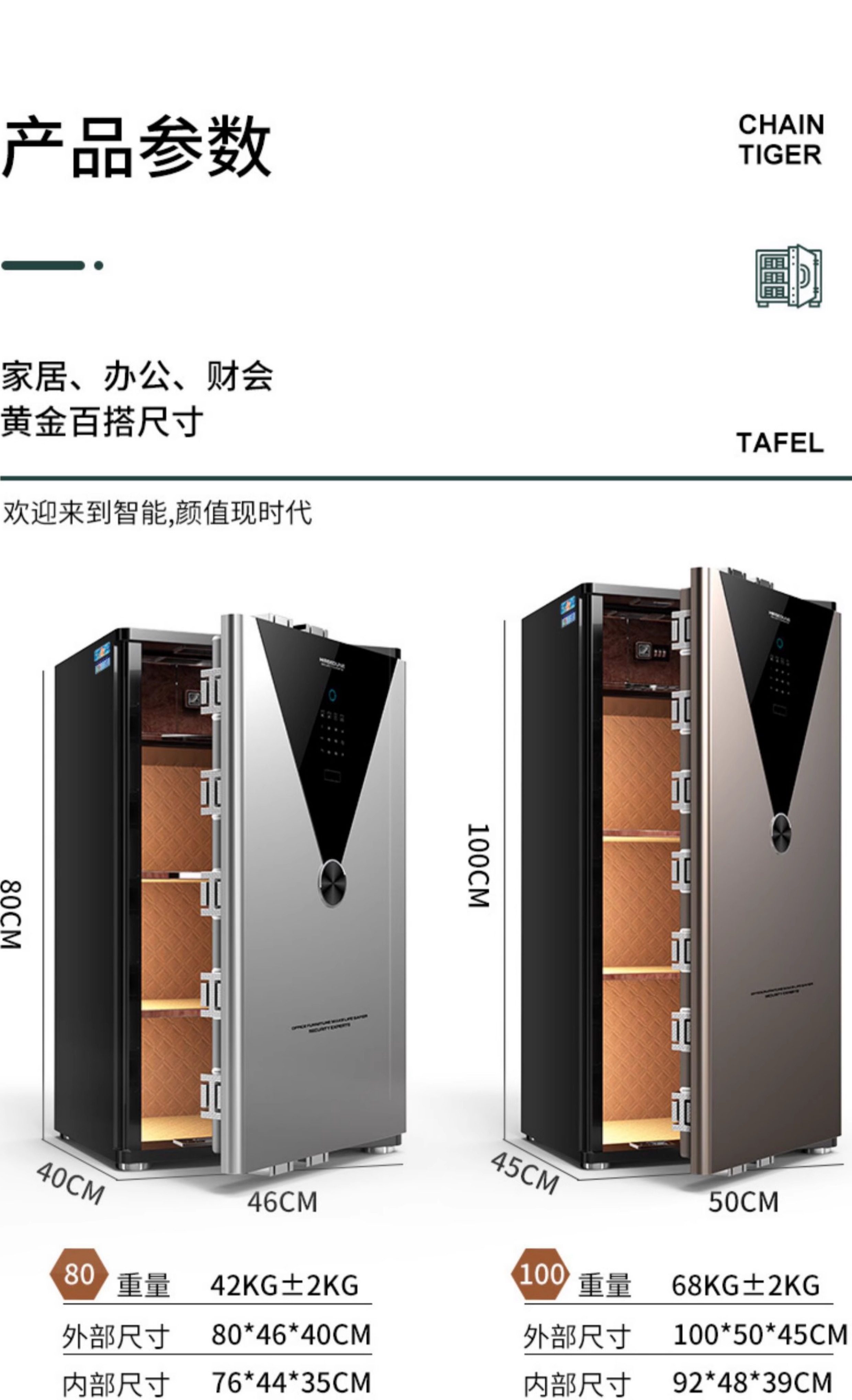 Tiger Brand Safe for Home Use, Small Size 45/60/70/80/100cm, Mini Large Capacity Fingerprint Password Smart Multifunctional Invisible Bedside Cabinet Password 2025 New Model Safe That Cannot Be Moved