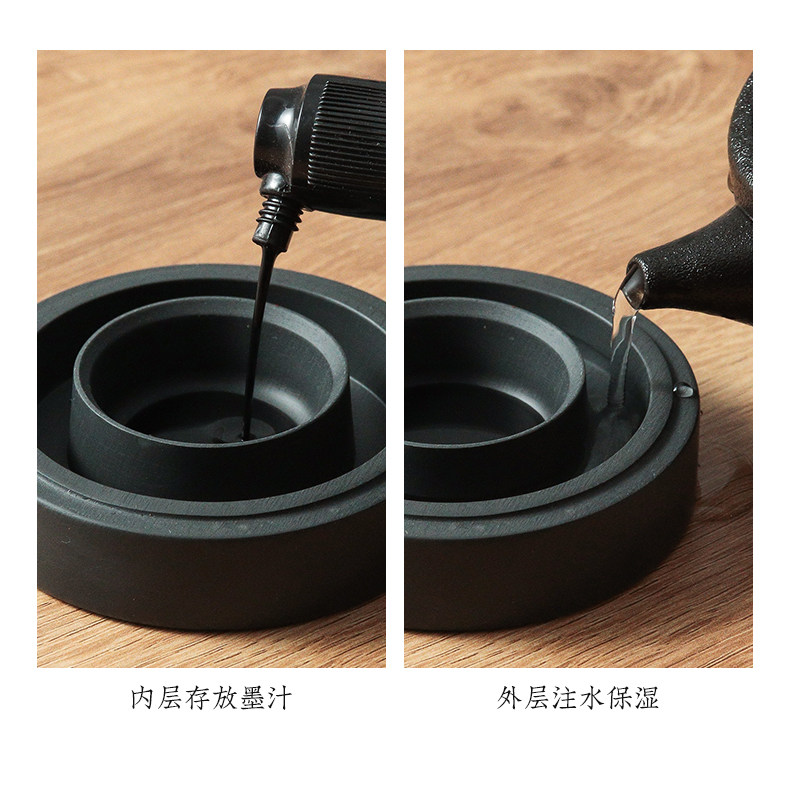 Zifangzhai's New Hot-Selling Multifunctional Inkstone with Lid for Calligraphy, Prevents Evaporation and Keeps Ink Moist, Suitable for Beginners to Practice Calligraphy, Can Grind Ink, Ink Strip, Ink Pool for Students, Ink Juice, Moisturizing Ink Box