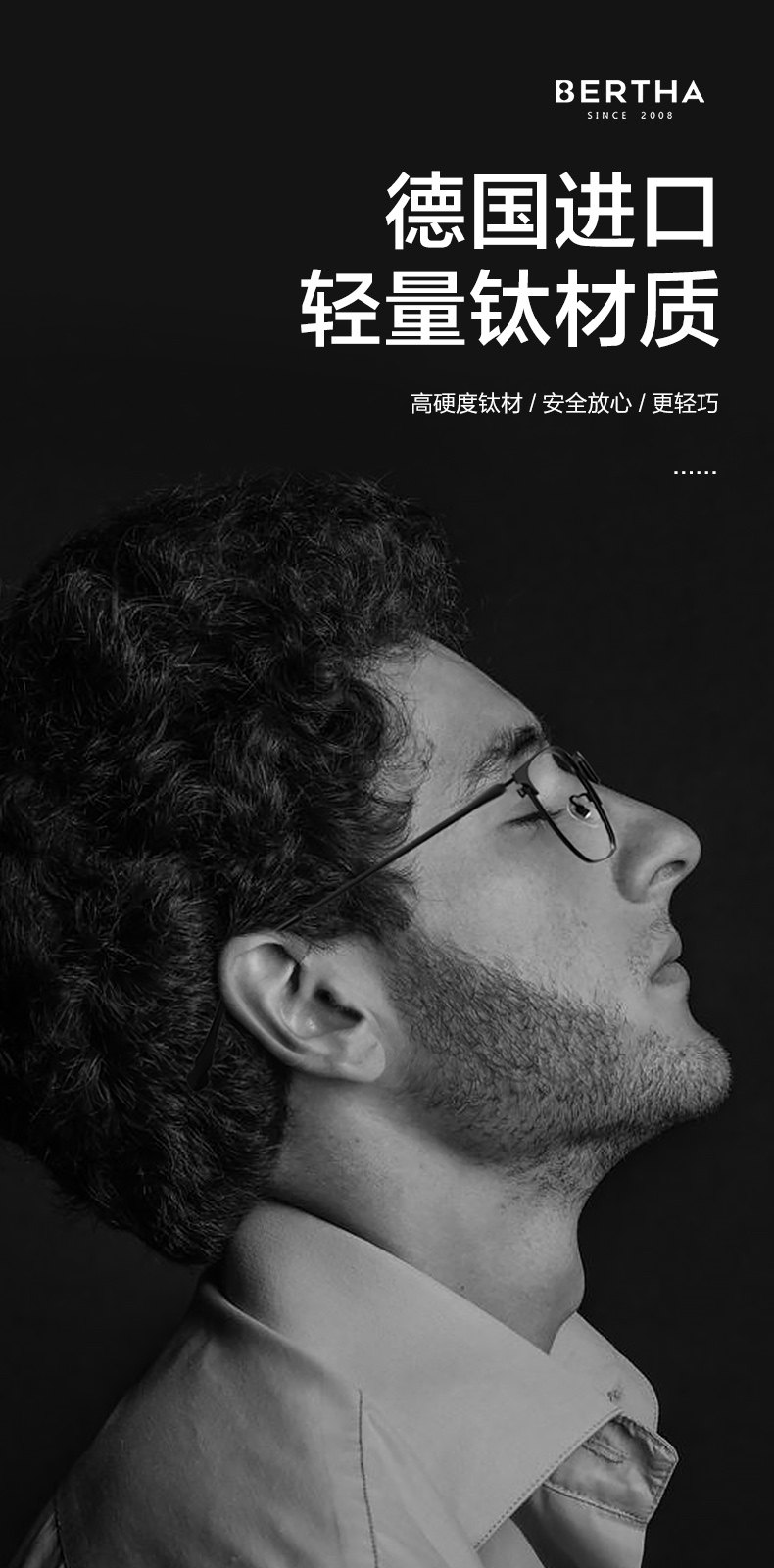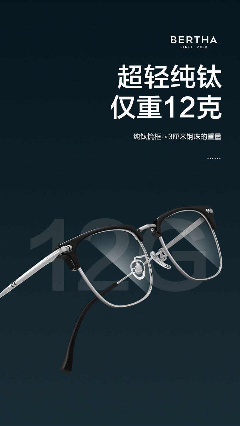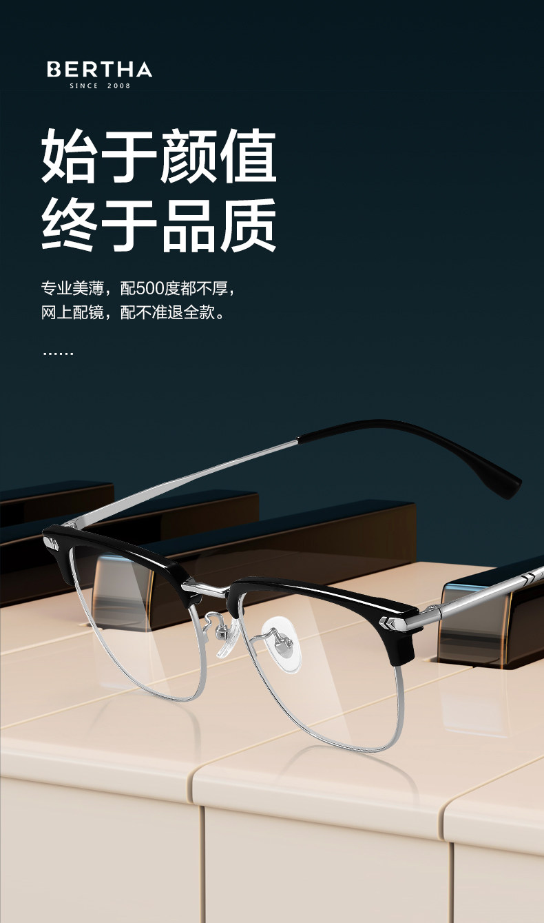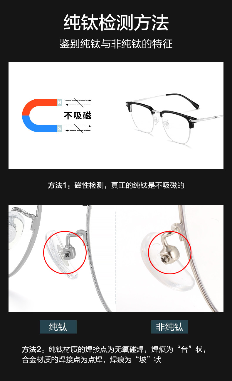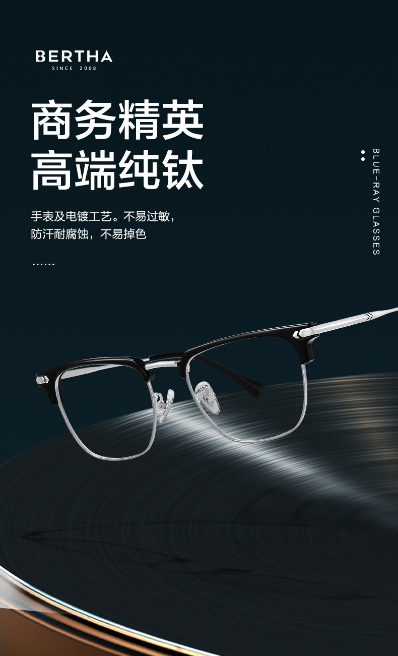 Ultra-Light Pure Titanium Business Half-Frame Men's Eyeglass Frames for Large Faces, Professional Prescription-Compatible Myopia Eyeglass Frames
