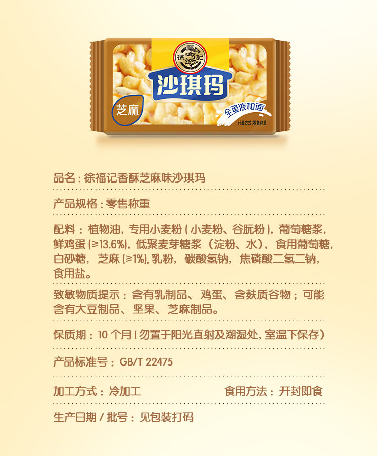Xu Fu Ji Shaqima Whole Box Egg Sesame Pastry Snack Breakfast Meal Replacement Food for Middle-Aged and Elderly People to Satisfy Hunger