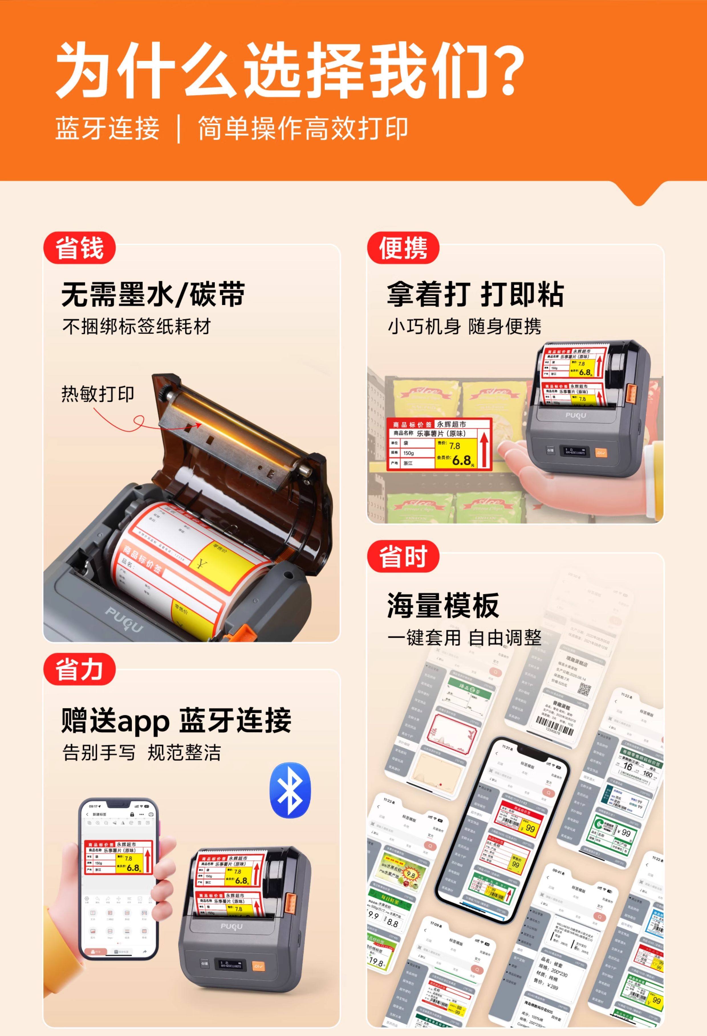 Puku Price Tag Printer Is a Commercial Portable Small Thermal Adhesive Label Printer for Product Barcodes, Qr Codes, Certificates, Stickers, Supermarket, Pharmaceutical, Food, and Tobacco Pricing