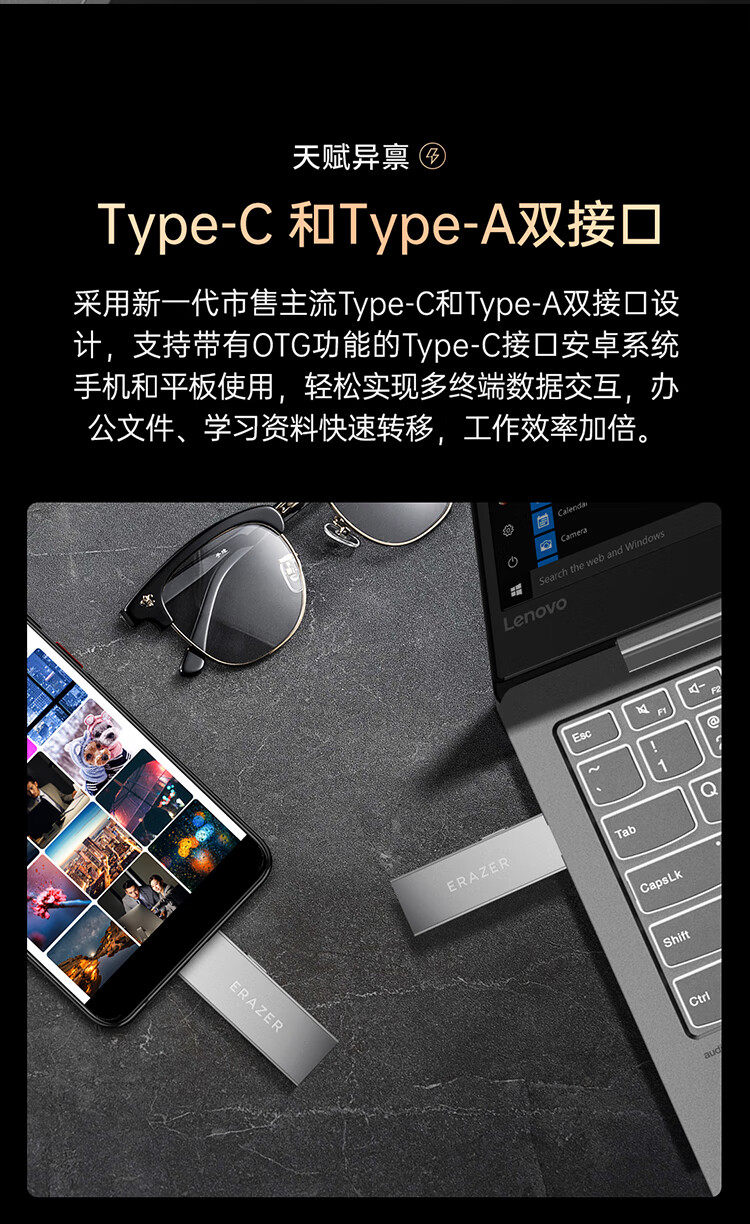 Lenovo Eco Brand Superpower Type-C Dual Interface USB Flash Drive High-Speed 32/64/128 Computer and Mobile Phone USB Drive