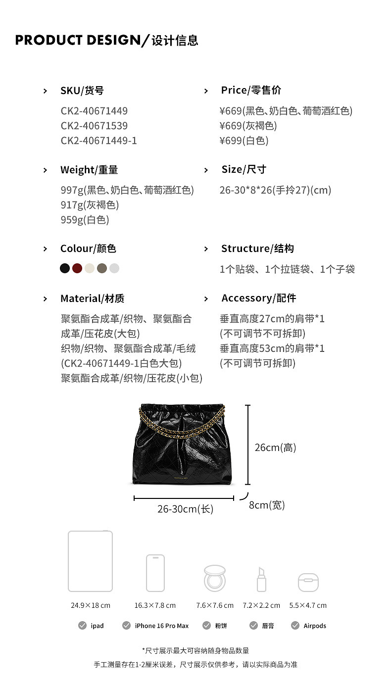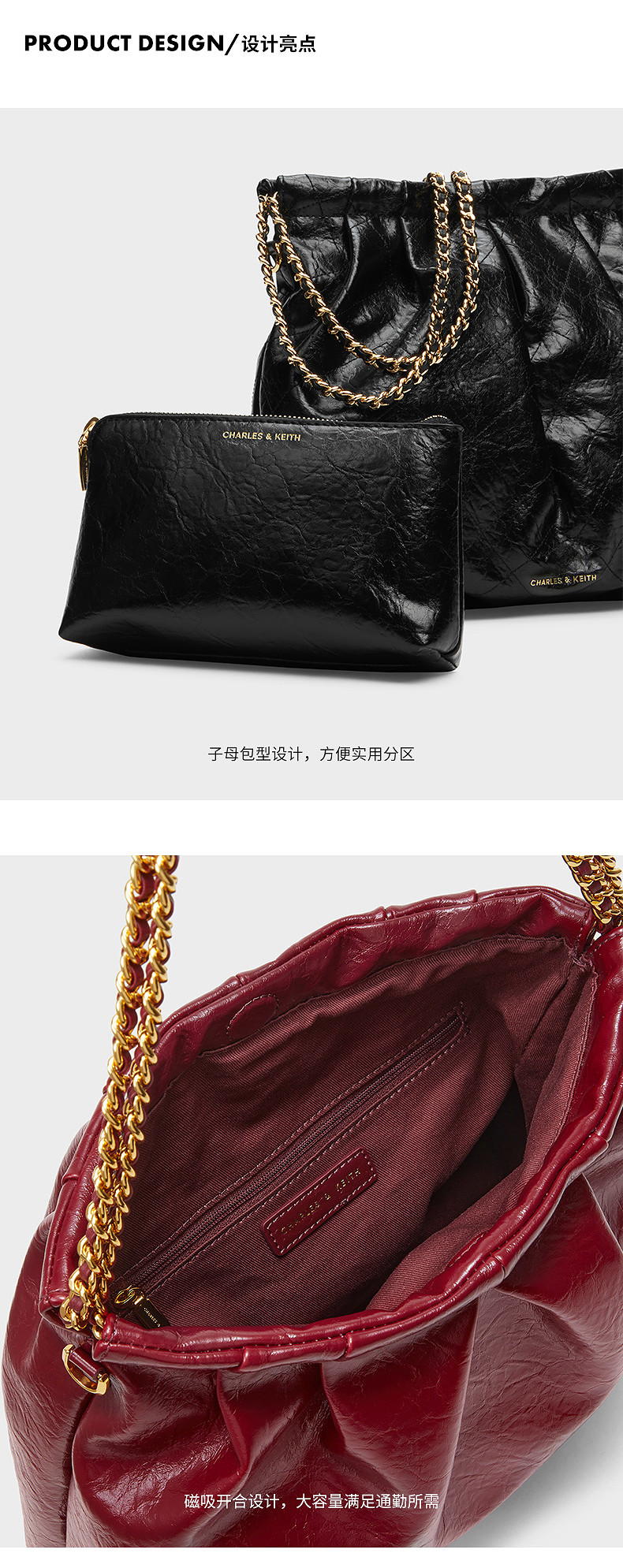 Charles & Keith Autumn Women's Bag Ck2-40671449 Large Capacity Shoulder Tote Bag Hobo Bag Wedding Bag for Women