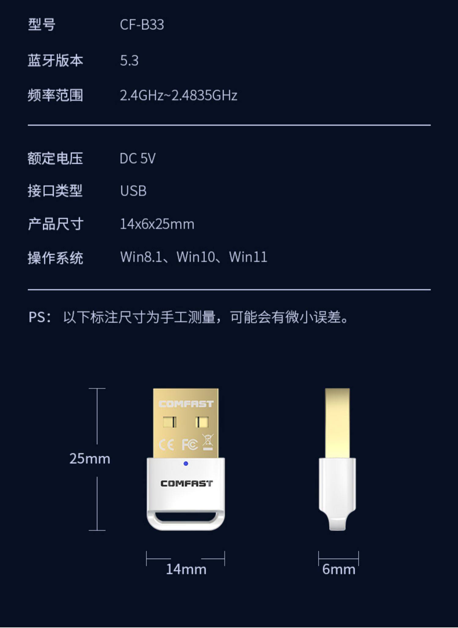 | Color Classification | [Driver-Free Bluetooth 5.3]Only Supports Win8/8.1/10/11 |