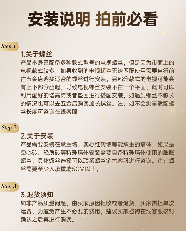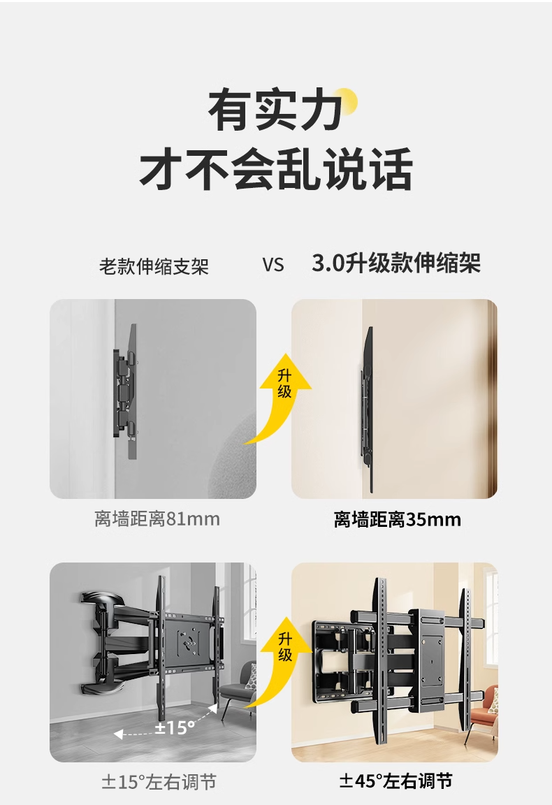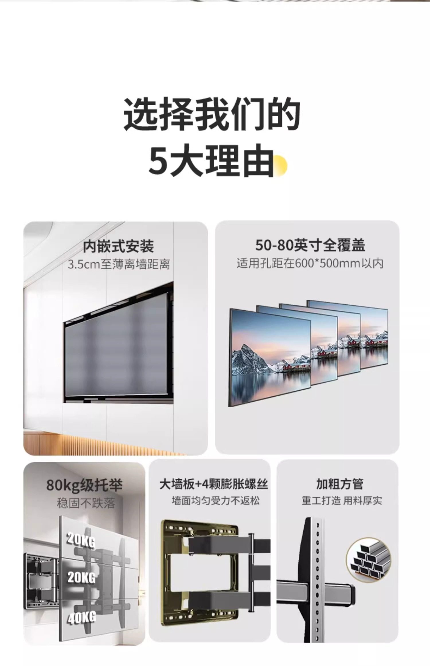 | Color Classification | [Strengthen the New Structure!Shop Around for the Best Deal,Unstable Returns and Exchanges!],[32-65inch]Universal for All Brands/Super Six-Arm Upgrade,[32-75inch]Universal for All Brands/Super Six-Arm Upgrade,[32-80inch]Universal for All Brands/Super Six-Arm Upgrade,[40-80inch]Universal for All Brands/Super Six-Arm Upgrade, Only about 3cm from the Wall,[40-86inch]All Brands, Dedicated for Large Screens, Guaranteed to Be Stable and Returnable!,[40– 90inch]Eight-Arm Linkage Model|Precision Rotating Shaft,[40– 85inch]Ultra-Thin Concealed Style ★ 2cm Wall Sticker,[40– 100inch]Eight-Arm Flagship Model|Full Size Adaptation,[55– 120inch]Heavy-Duty Reinforced | Top Choice for Large Screens,[65-130inch]Jumbo Screen Carrying Model|160Kg Load Capacity |