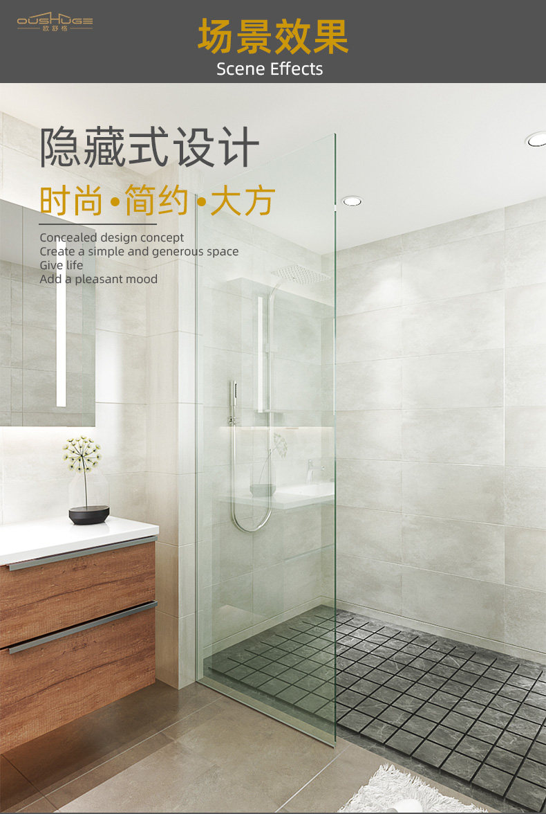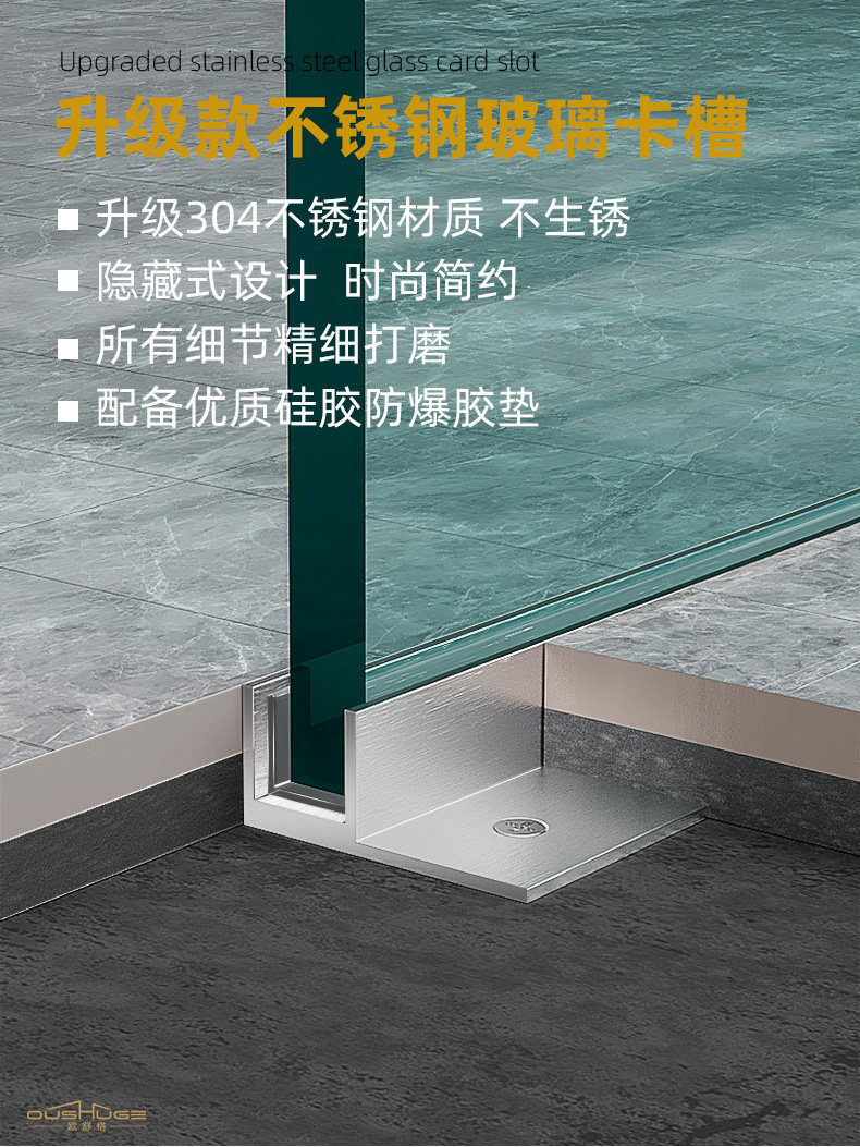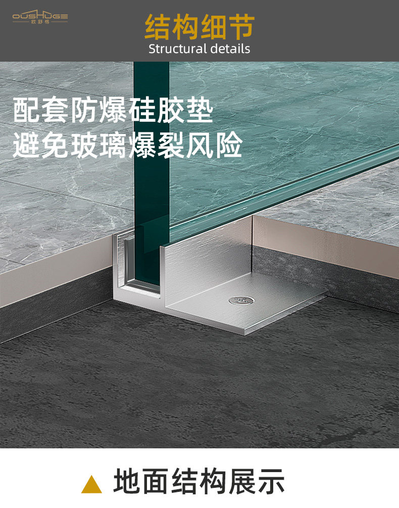 Stainless Steel F-Shaped Glass Slot Recessed Shower Room with Pre-Embedded U-Shaped Tile Finishing Strip for Hidden Bathroom Partition